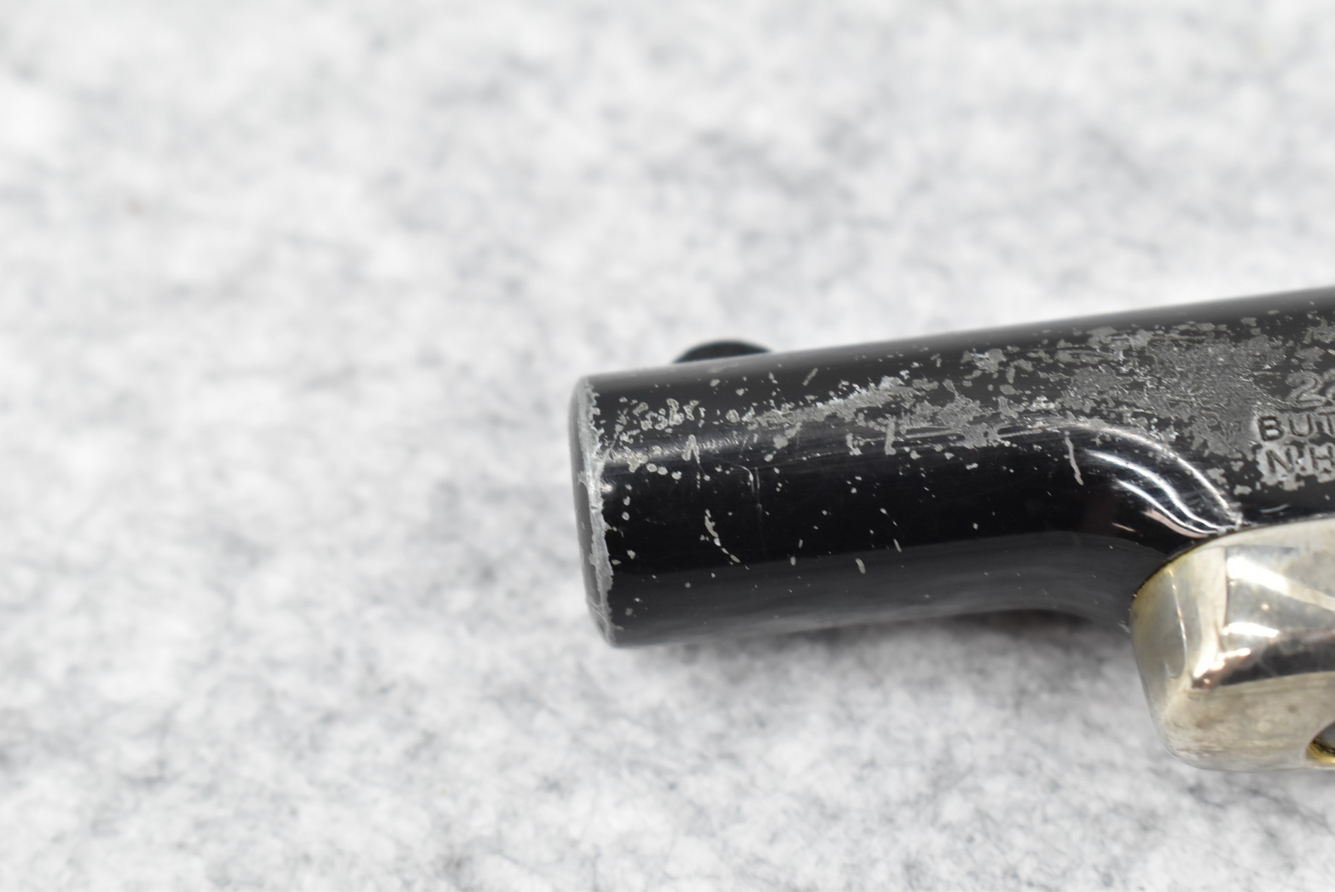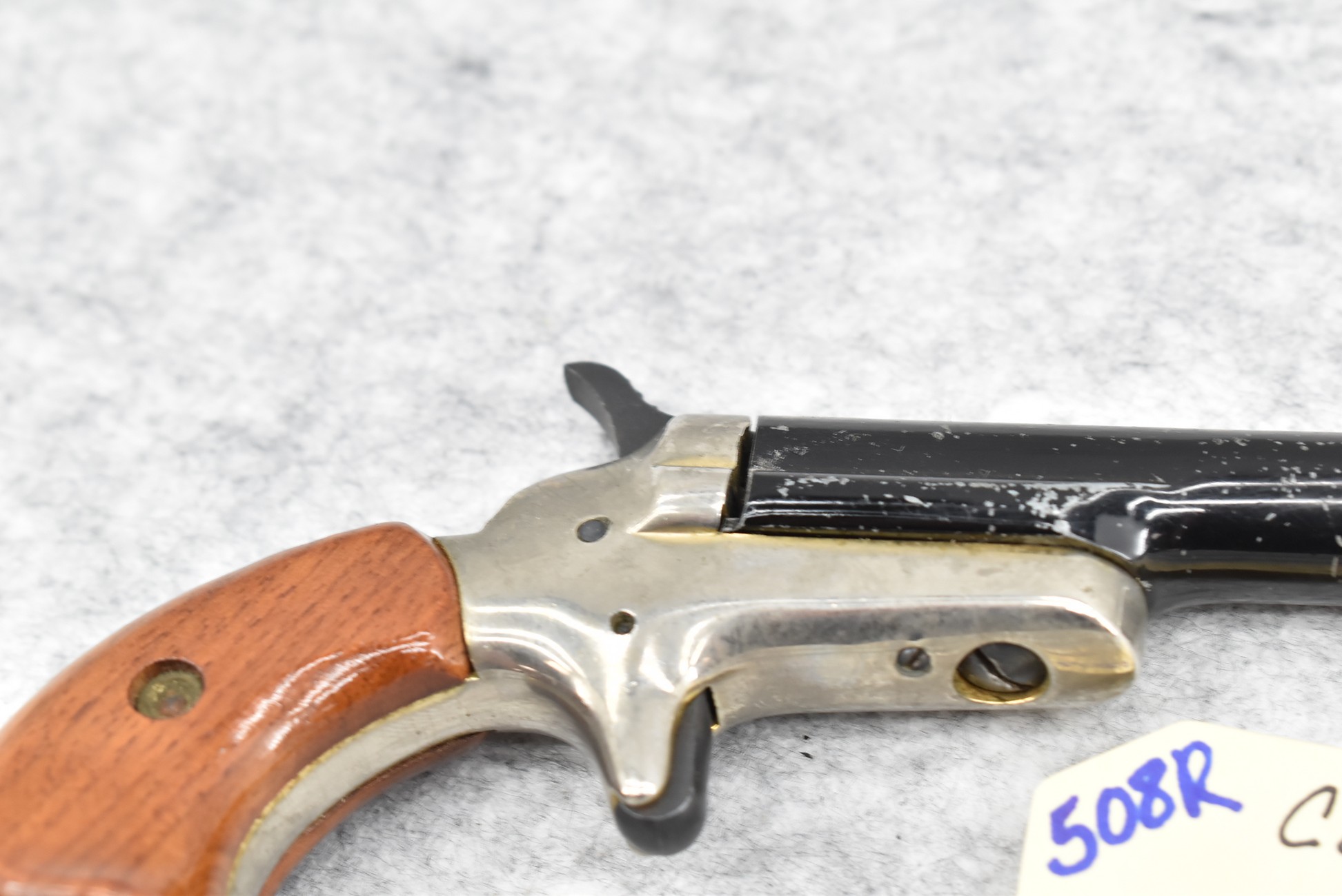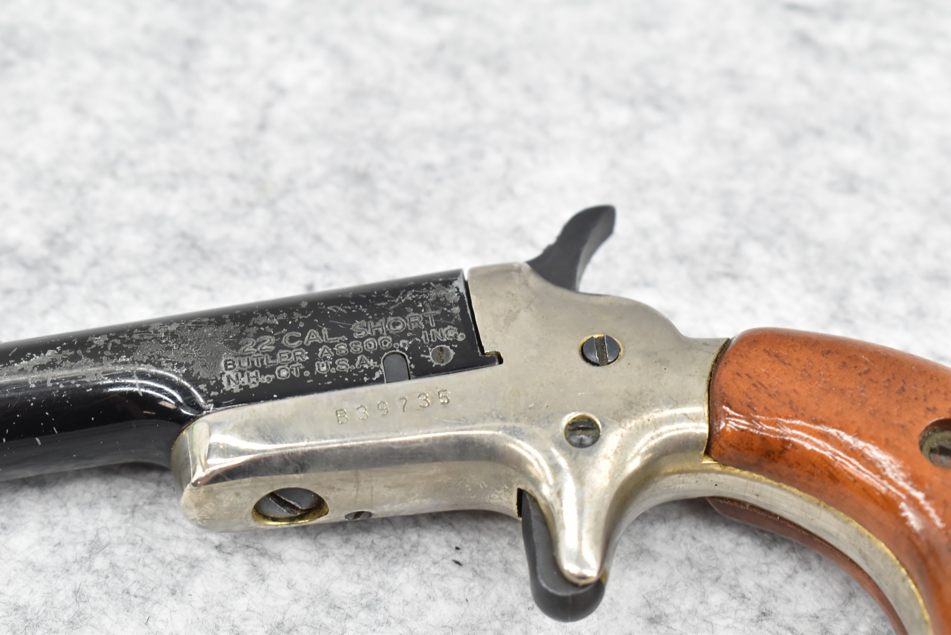508R. Colt – Mod. Butler – 22 Short Cal. Single Shot Pistol – w/2 3/8” Barrel w/Factory Sights – Black/Nickel Finish – w/Smooth Wood Birds Head Grips (CANNOT GO TO MARYLAND!)