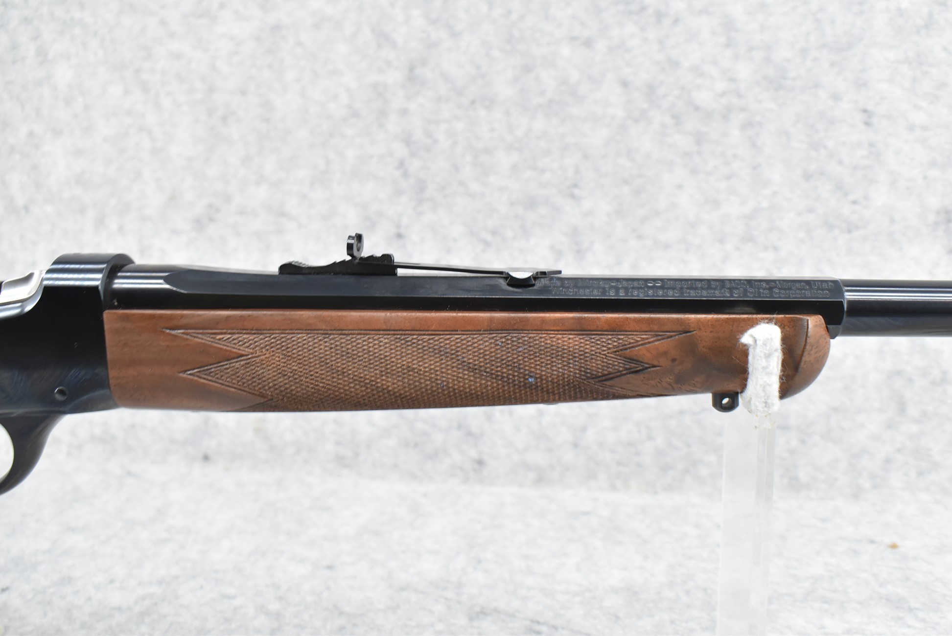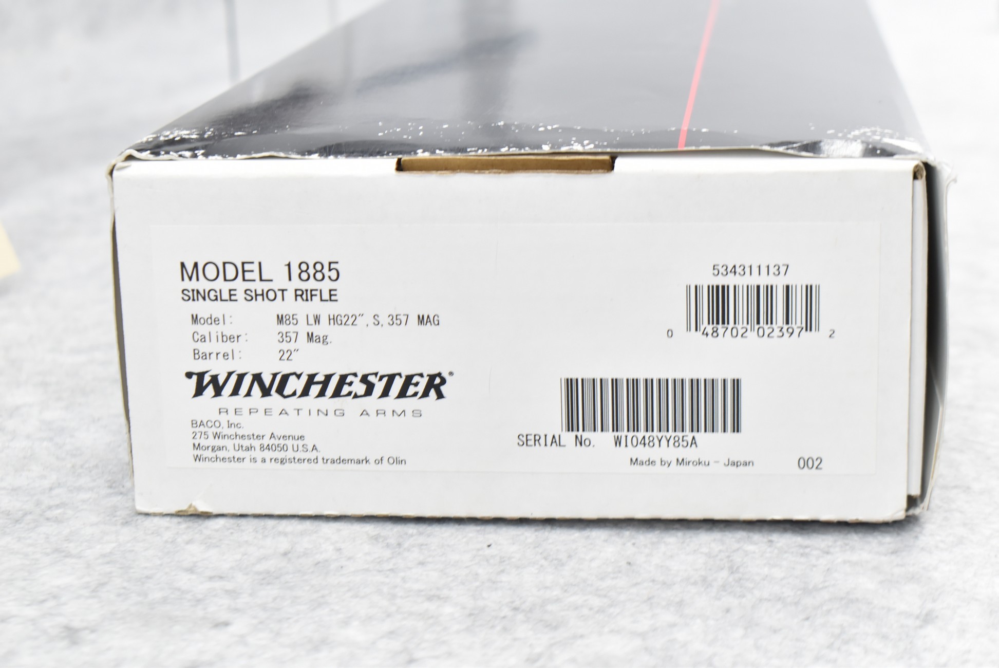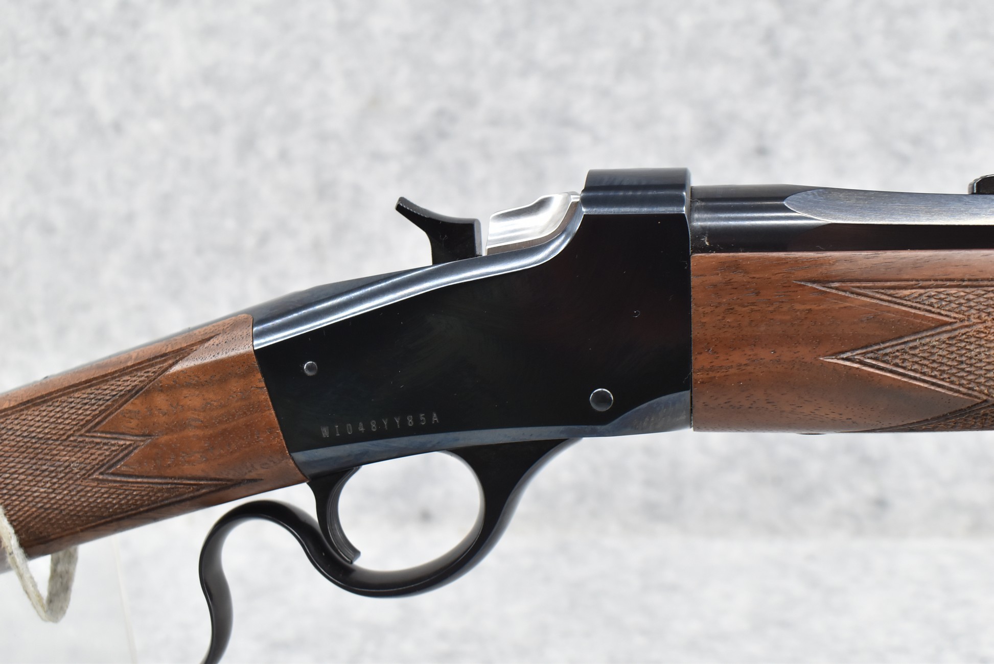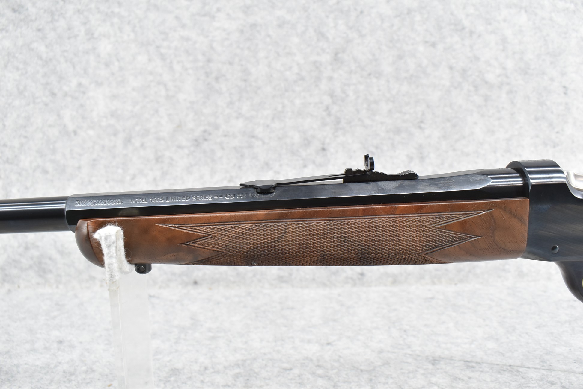 50R. Winchester – Mod. 1885 Low Wall (Limited Series-Davidson Dist. Exclusive) – 357 Mag. Cal. Falling Block Single Shot Rifle – w/22” Octagon to Round Barrel w/Blade Front and Adjustable Rear Sights – Blued Finish – w/Deluxe Checkered Straight Grip Wood Stock and Matching Wood Forearm w/Crescent Metal Butt Plate – New in Factory Box w/Manuals and Accessories
