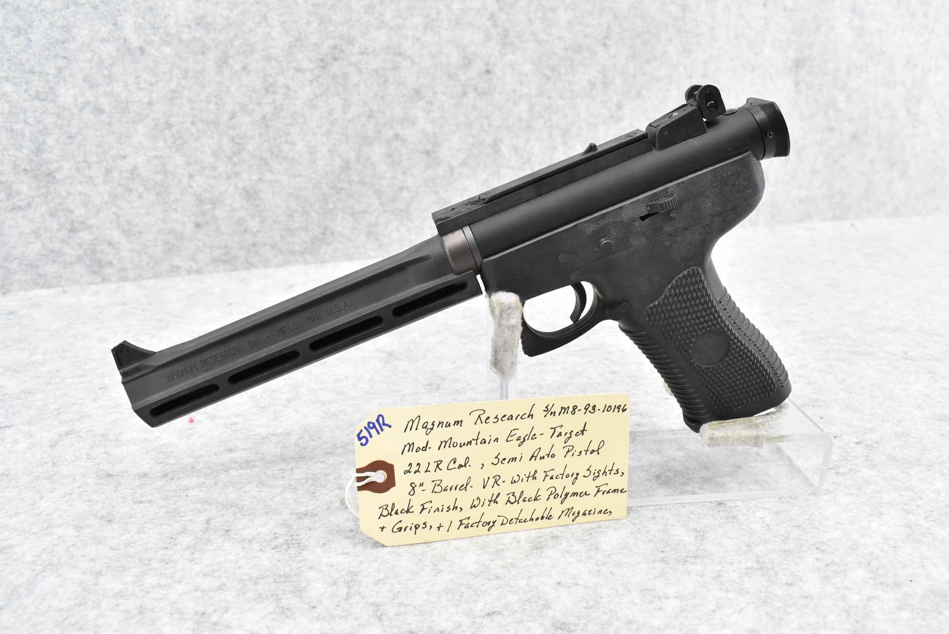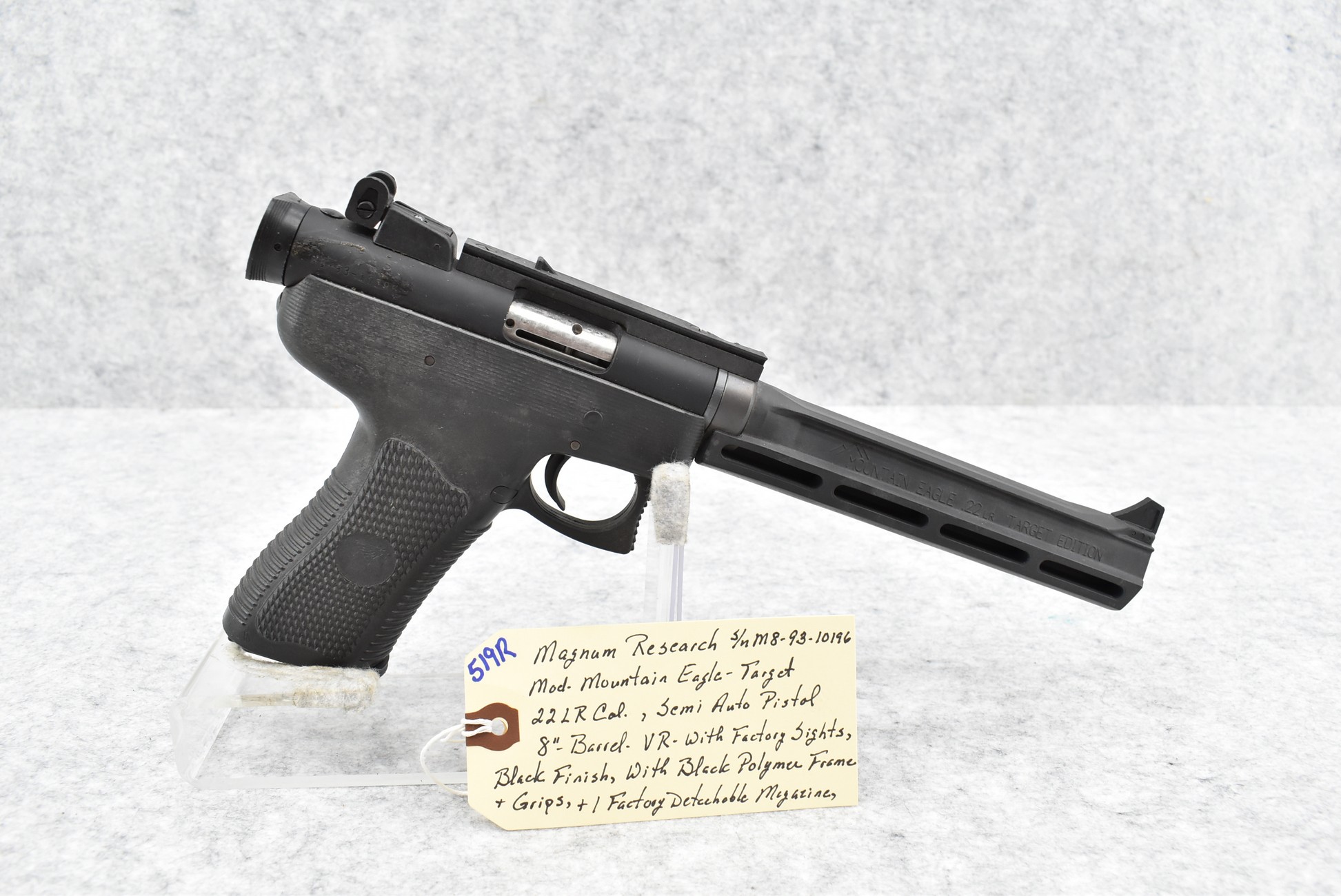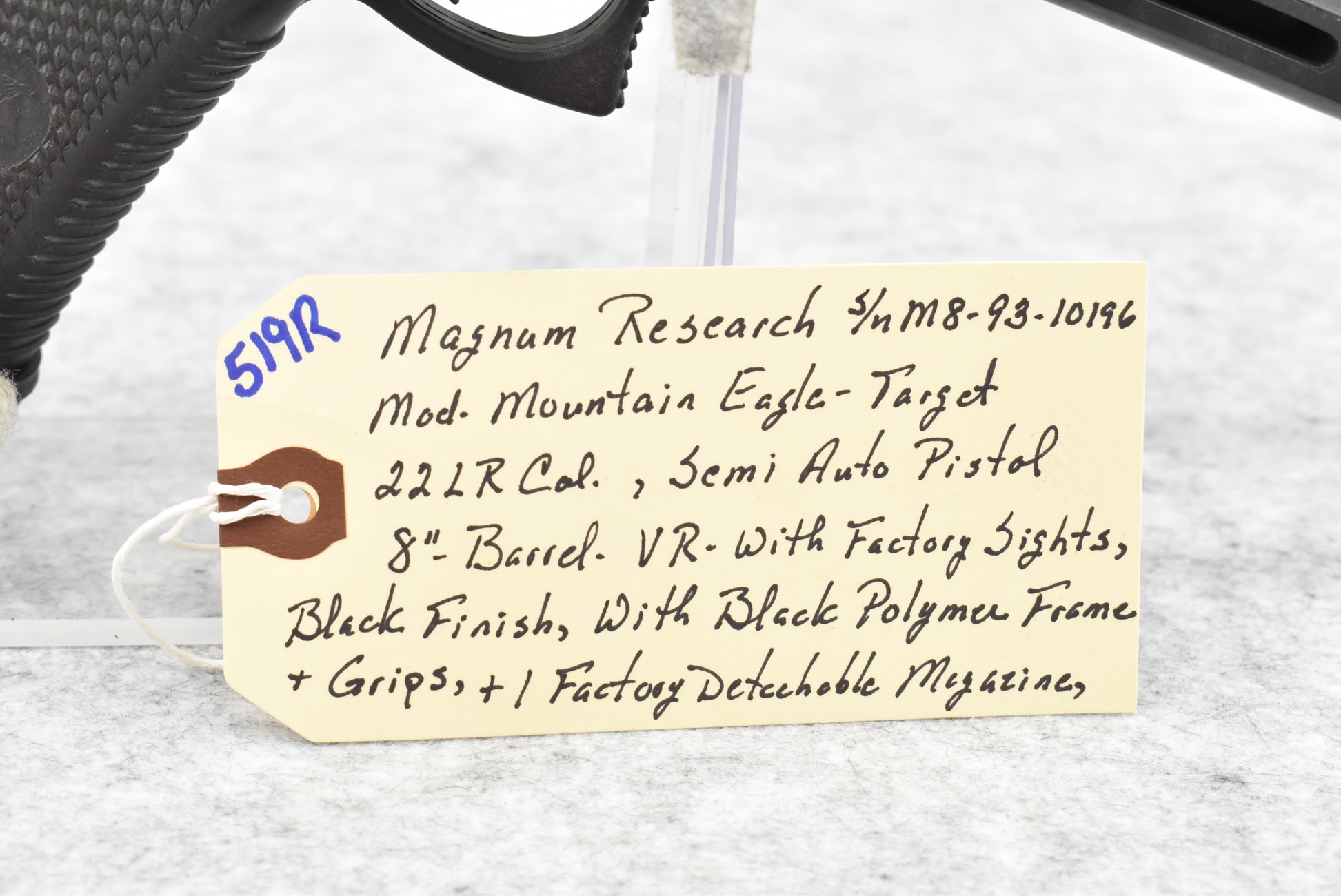 519R. Magnum Research – Mod. Mountain Eagle Target – 22LR Cal. Semi-Auto Pistol – w/8” Vent-Rib Barrel w/Factory Sights – Matte Black Finish – w/Black Polymer Frame & Grips – w/Factory Detachable Magazine