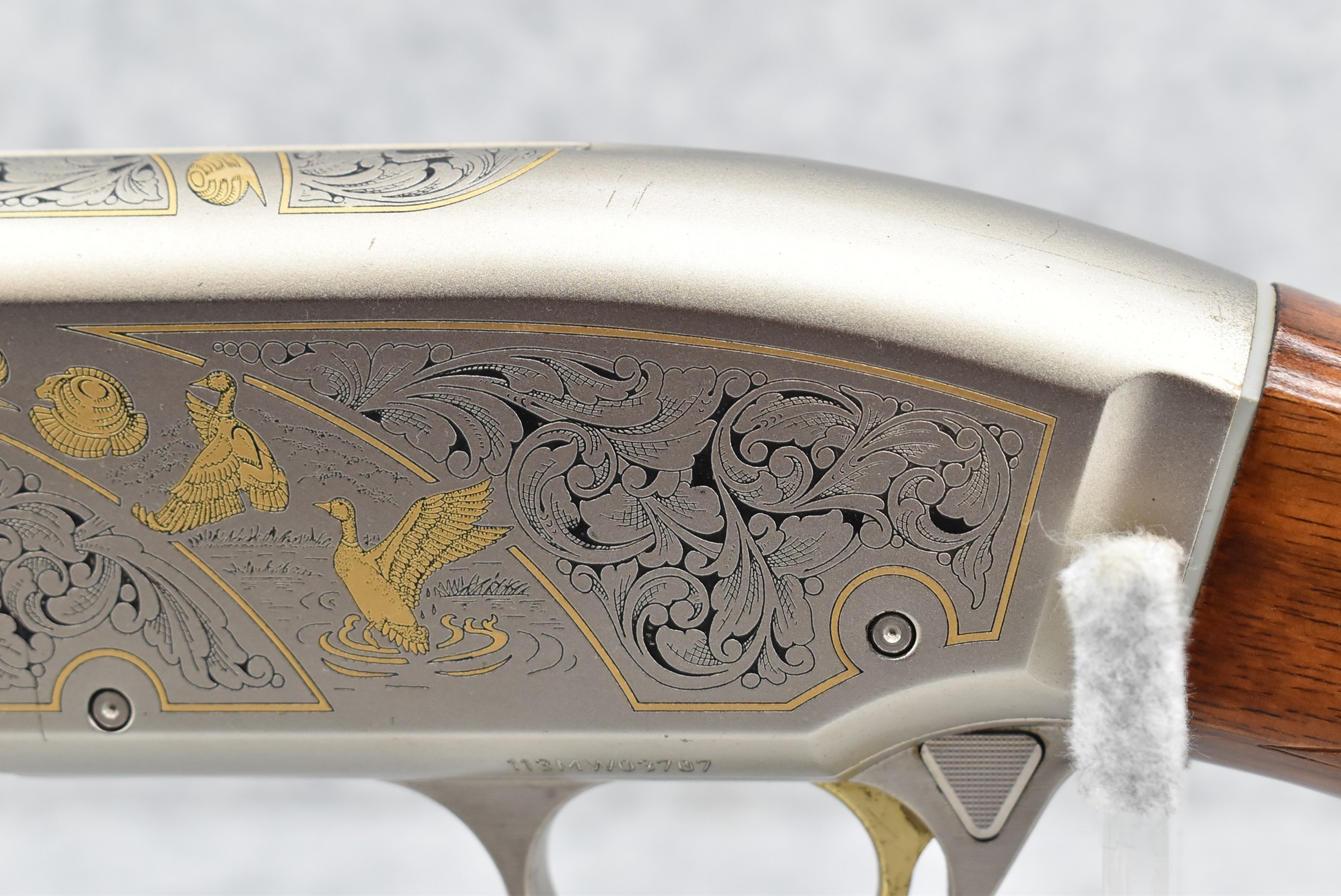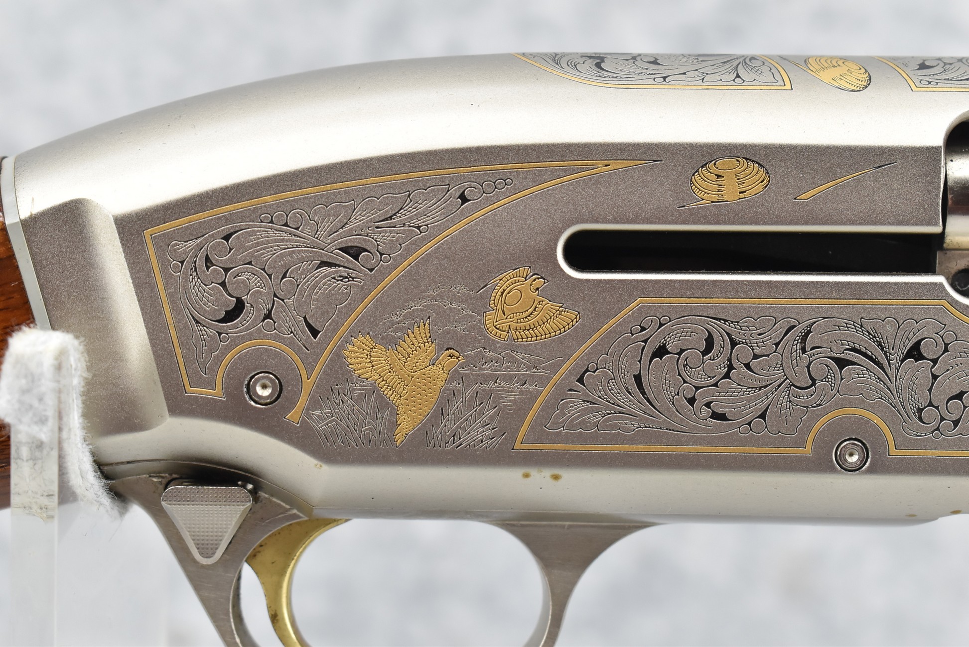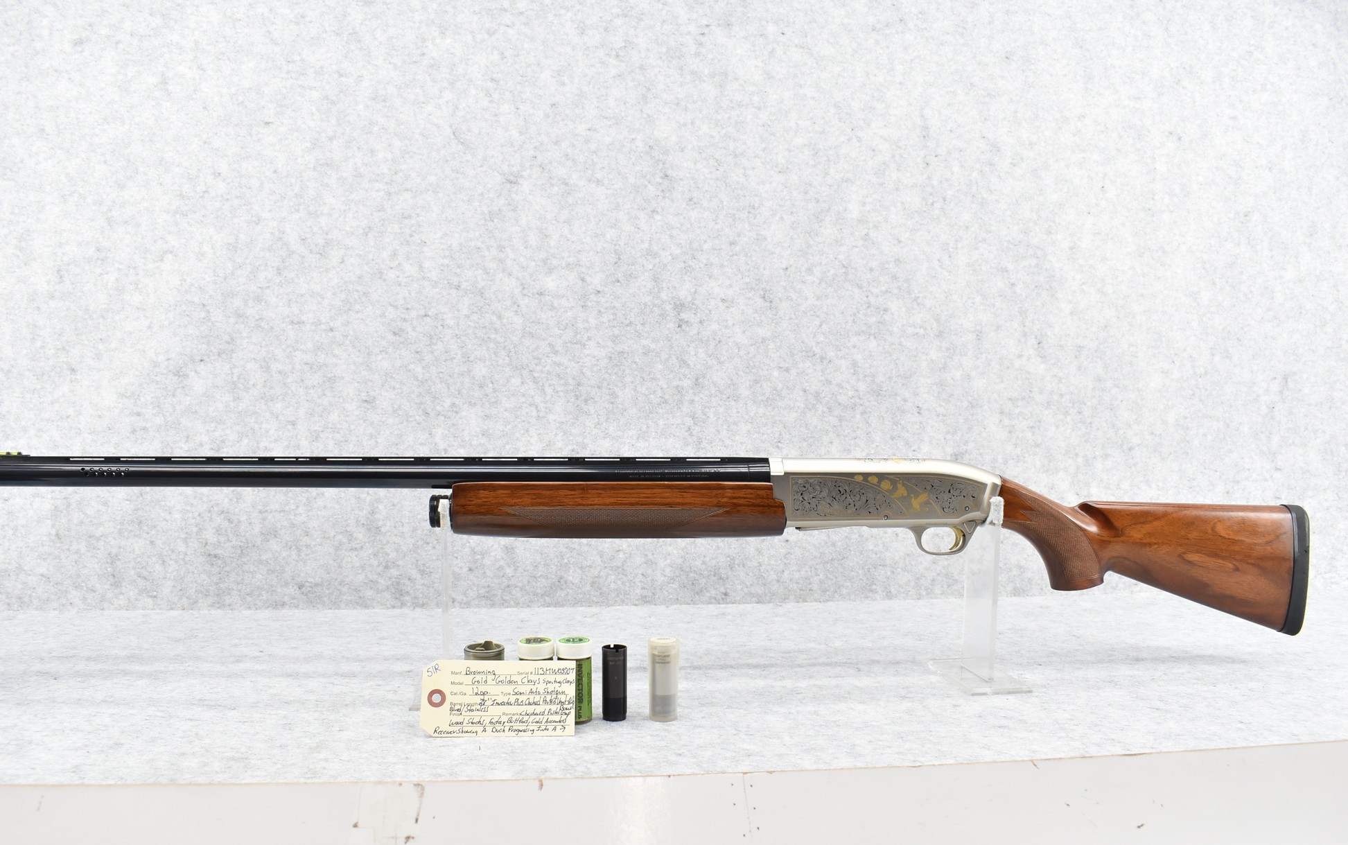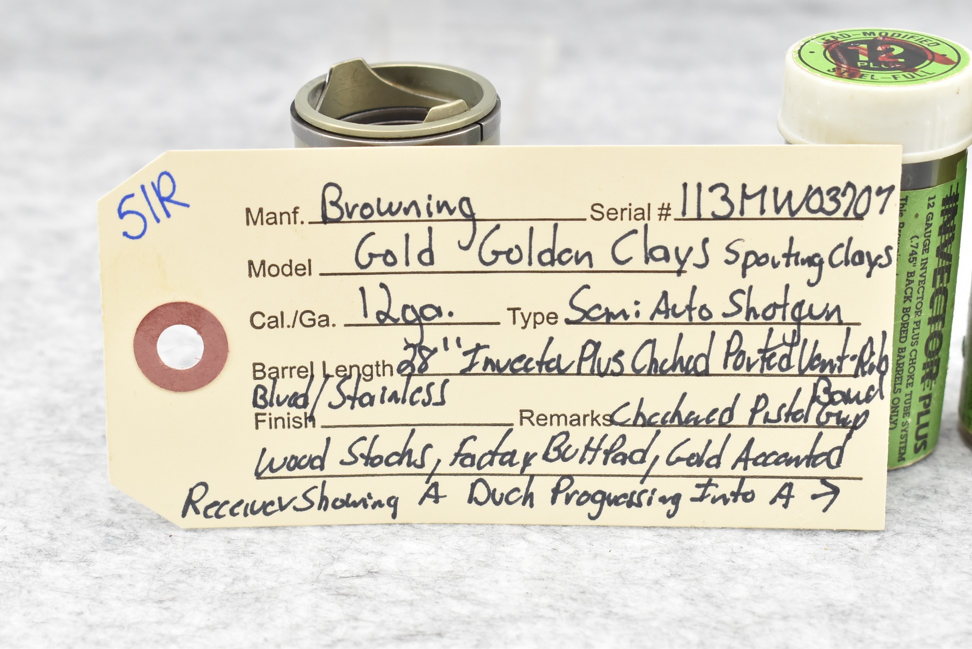 51R. Browning – Mod. Gold Golden Clays Sporting Clays – 12ga. Semi-Auto Shotgun – w/28” Invector Plus Choked Vent Ribbed Ported Barrel – Blued/Stainless Finish – w/Checkered Pistol Grip Wood Stocks w/Factory Butt Pad – w/Gold Accented Receiver Showing a Duck Progressing into a Clay Bird – w/5 Chokes Total