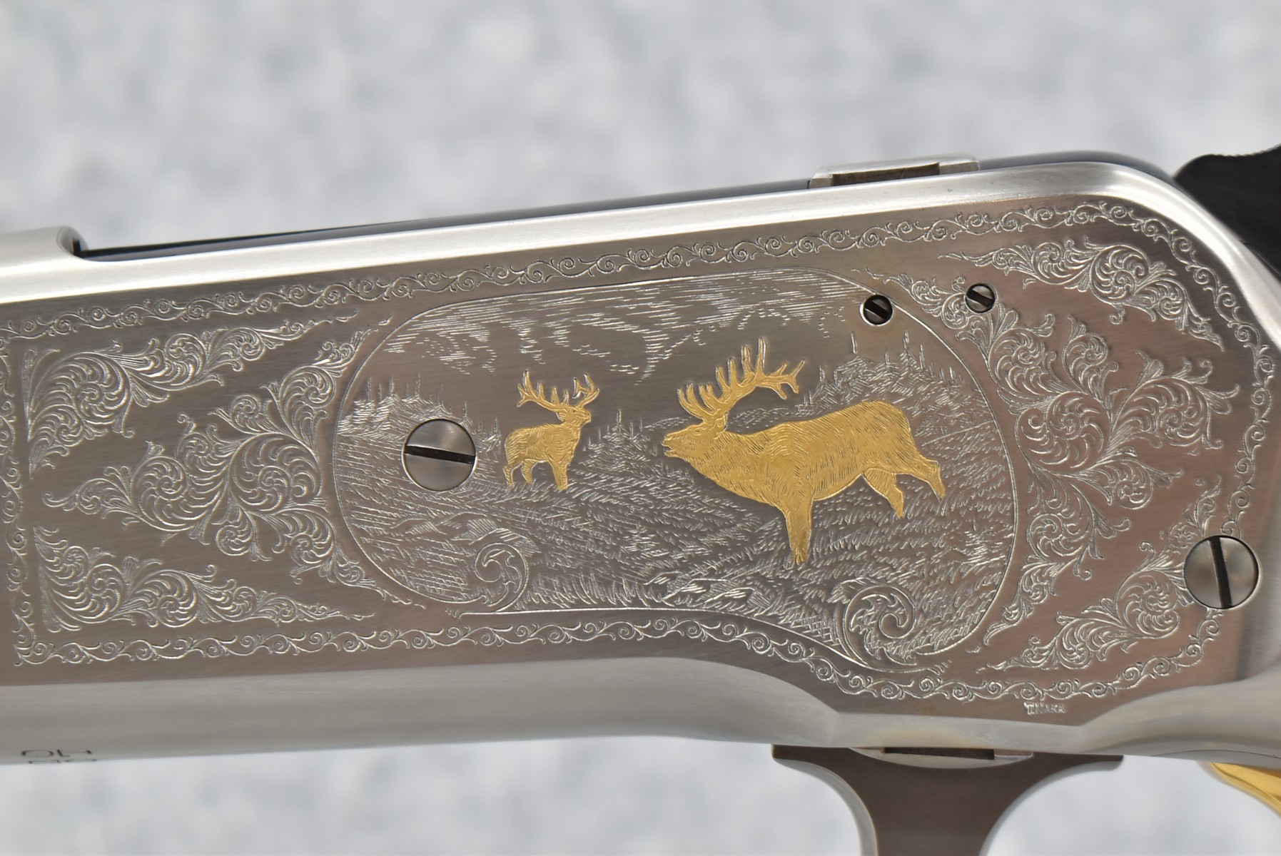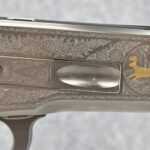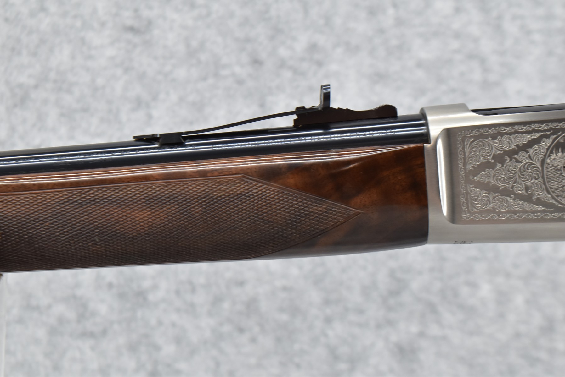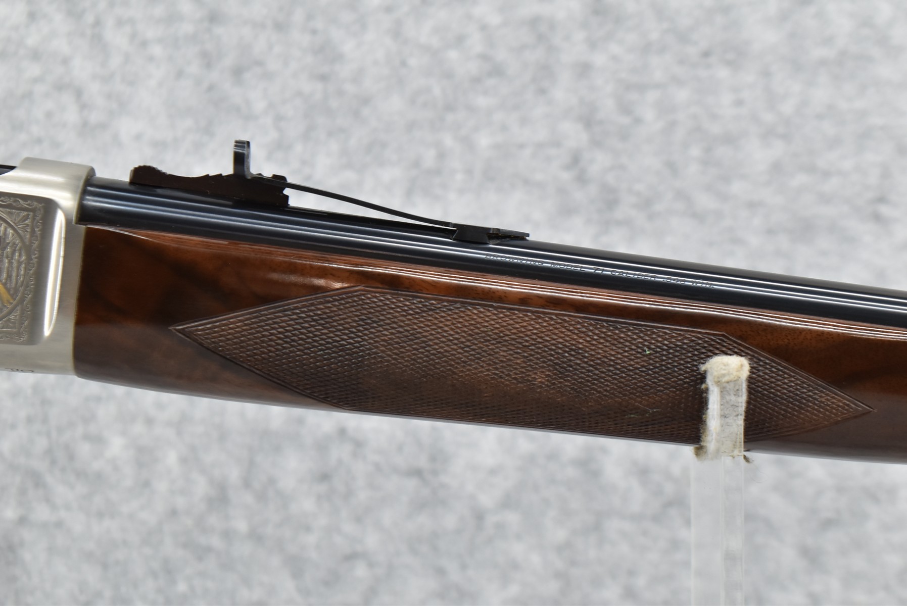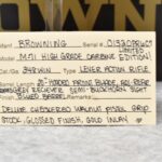 51R. Browning – Mod. M-71 High Grade Carbine Limited Edition – 348 Win. Cal. Lever Action Rifle – w/20” Barrel w/Hooded Front Blade and Adjustable Rear Semi-Buckhorn Sights – Blued Finish – w/Deluxe Checkered Walnut Gloss Finished Pistol Grip Wood Stocks w/Factory Butt Plate – w/Engraved Receiver, Gold Animal Inlay – Only 3,000 Manufactured in 1986 and 1987 – Unfired w/Factory Box and Manual