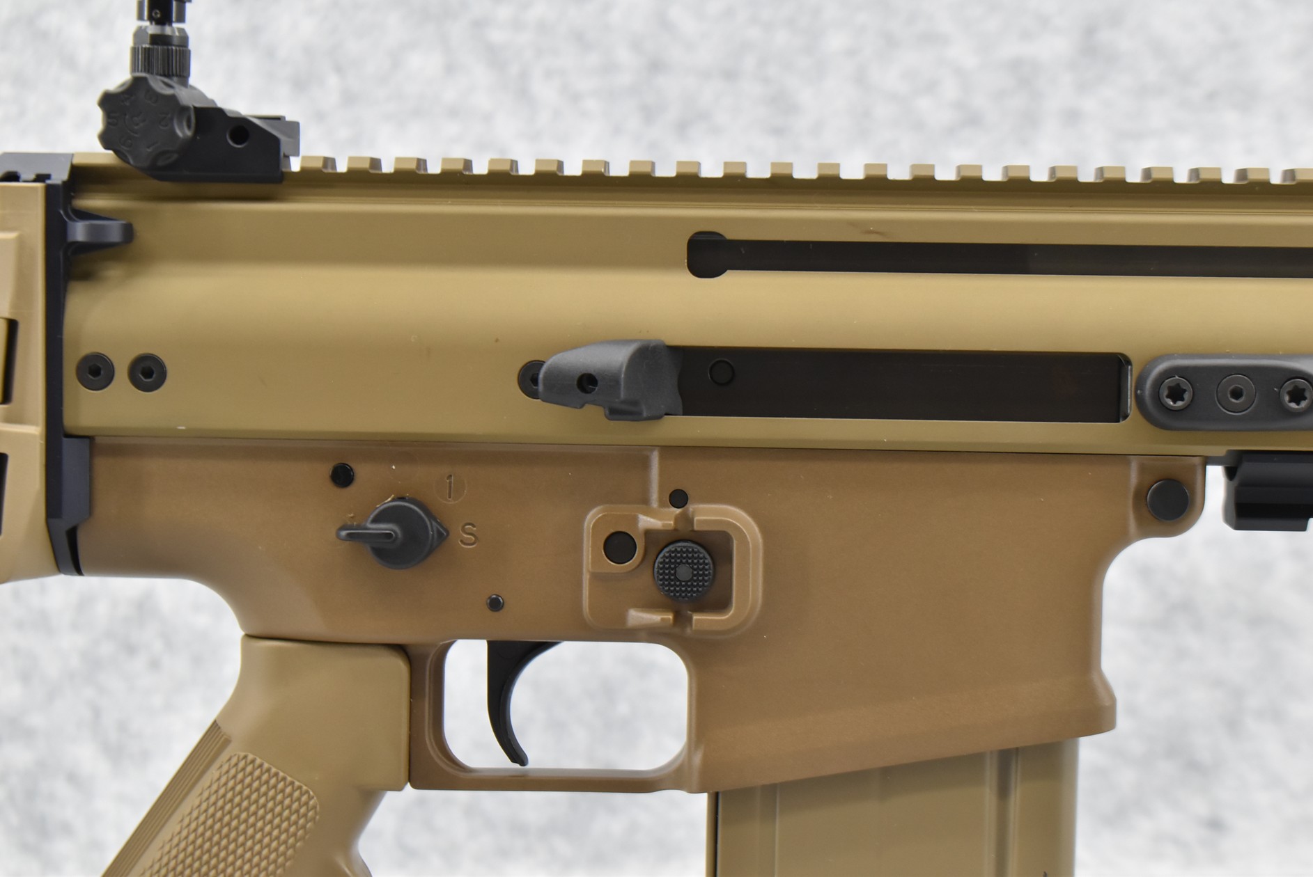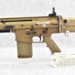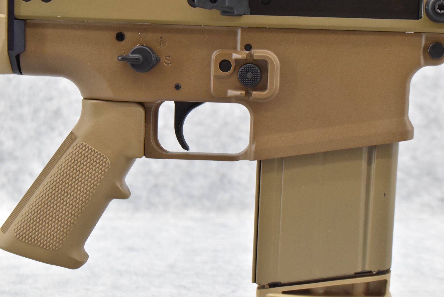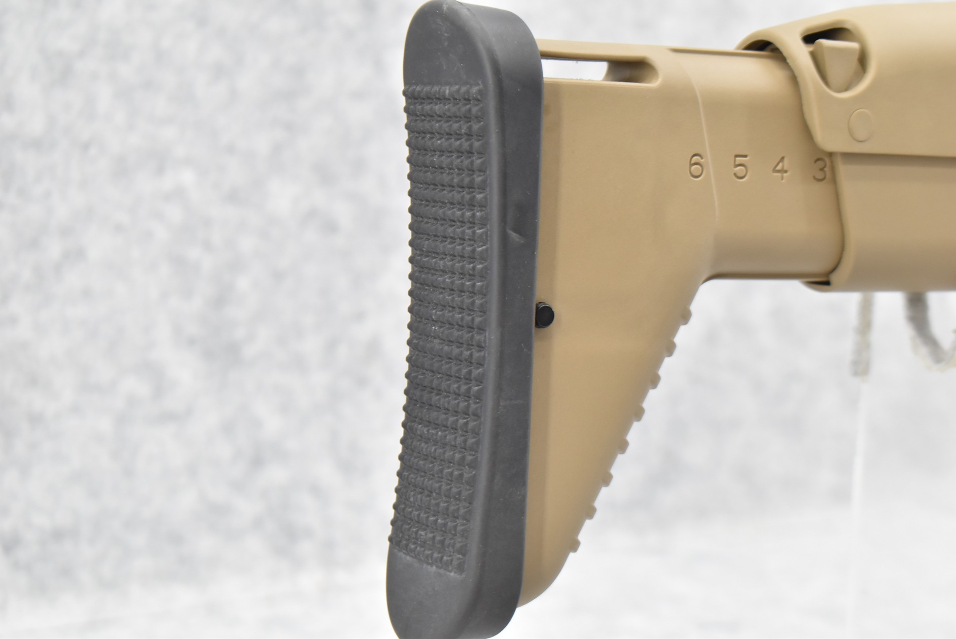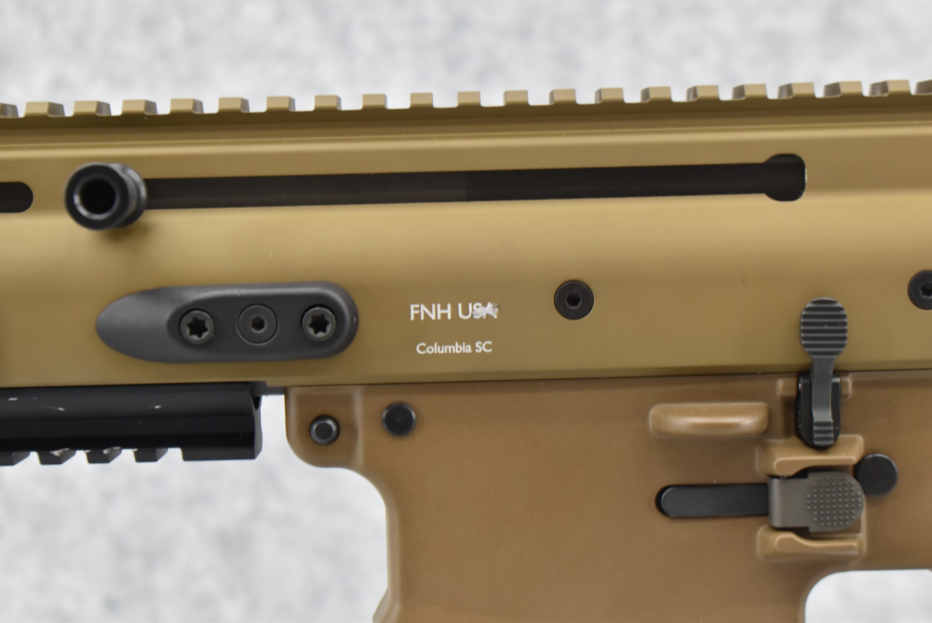 51R. FNH-USA – Mod. Scar-17-S – 7.62x51mm Cal. Semi-Auto Rifle – w/16.25” Barrel w/Pop Up Hooded Pin Front & Adj. Rear Peep Sights w/Flash Hider – Anodized Steel & Flat Dark Earth Finish Aluminum Frame – w/Telescoping & Folding Shoulder Butt Stock, Polymer Pistol Grip & Adj. Cheek Piece w/Butt Pad – w/2 Factory Detachable Magazines – w/Case Club Hard Travel Case (CANNOT GO TO MARYLAND!)