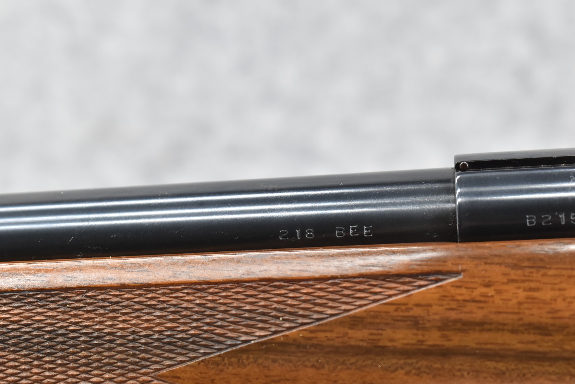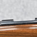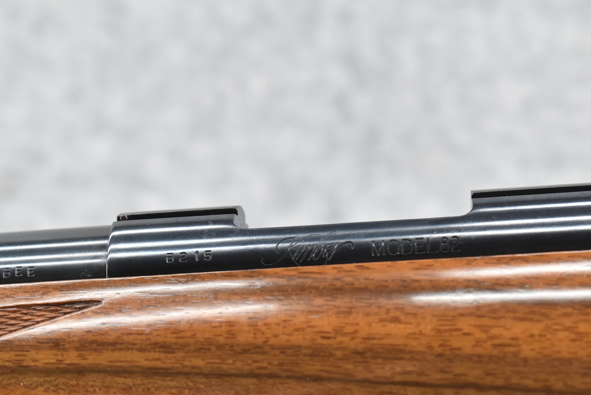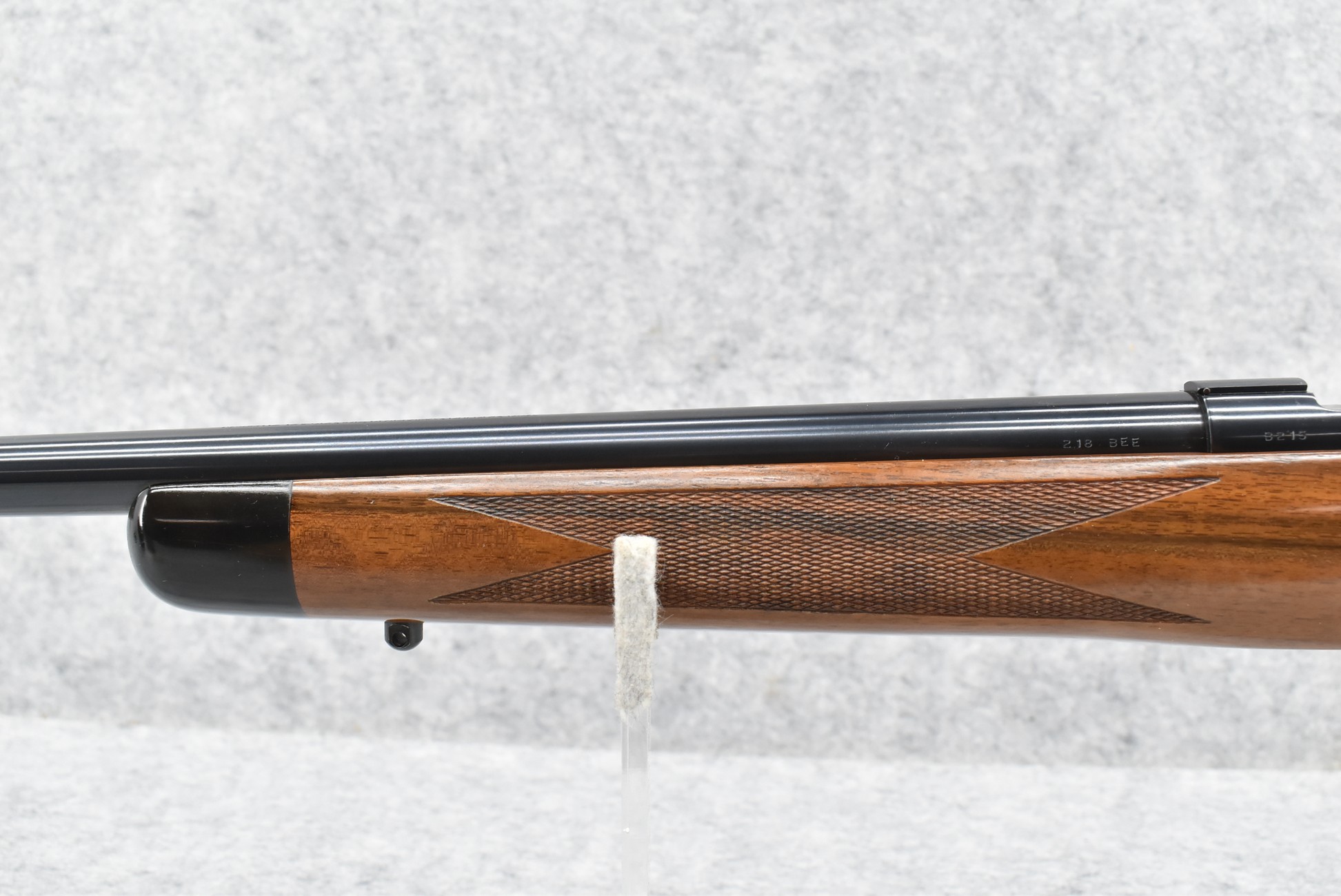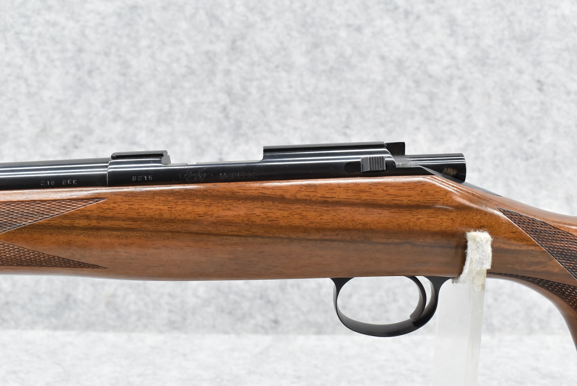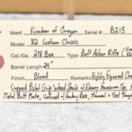 51R. Kimber of Oregon – Mod. 82 Custom Classic – 218 Bee Cal. Single Shot Bolt Action Rifle – w/24” Barrel – Blued Finish – w/Highly Figured Checkered Capped Pistol Grip Wood Stock w/Ebony Forearm Tip and Factory Metal Butt Plate – Unfired w/Factory Box, Manual, and Test Target – The 218 Bee Caliber was Mfg. in Very Limited Production Numbers Between 1985-1986 Only