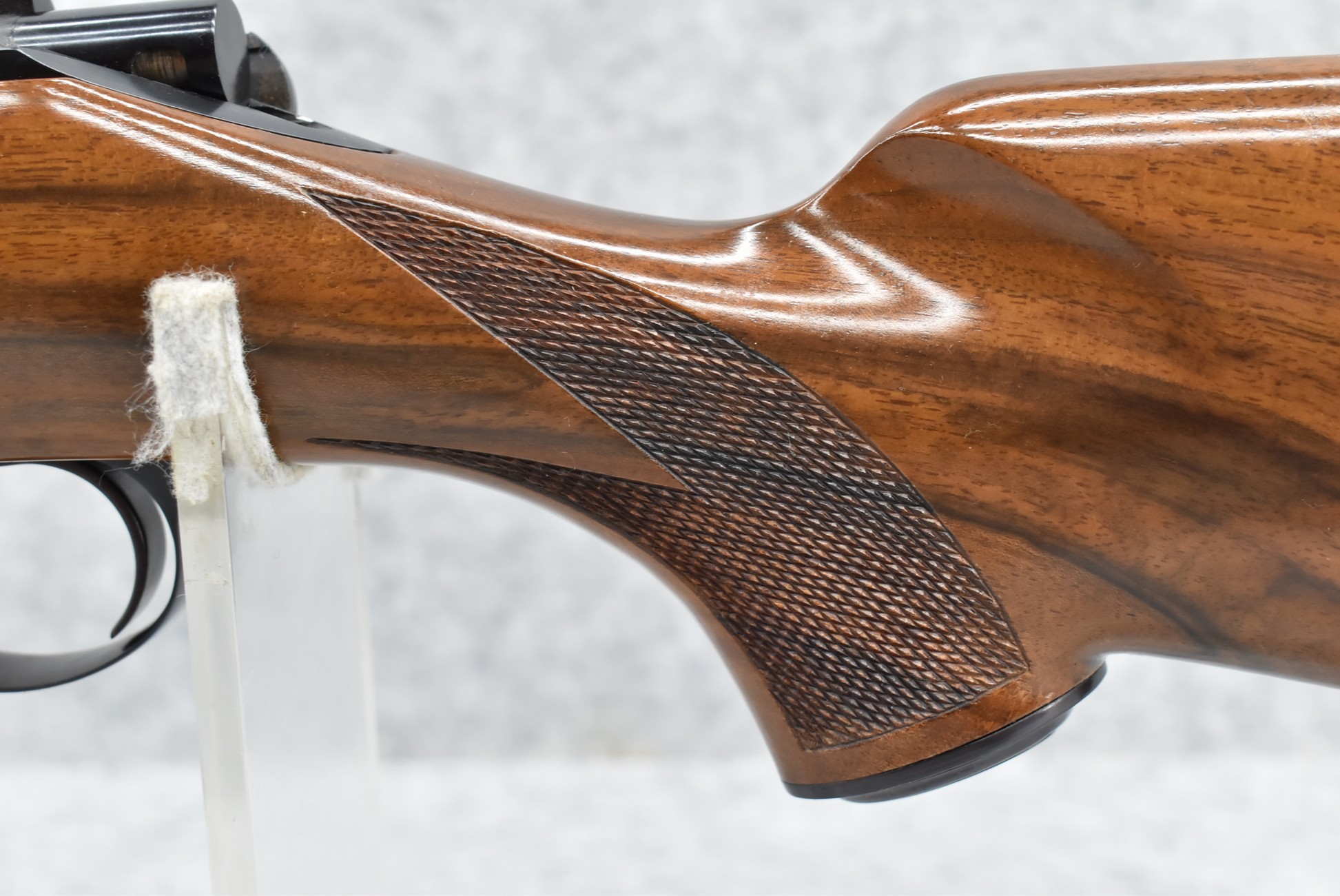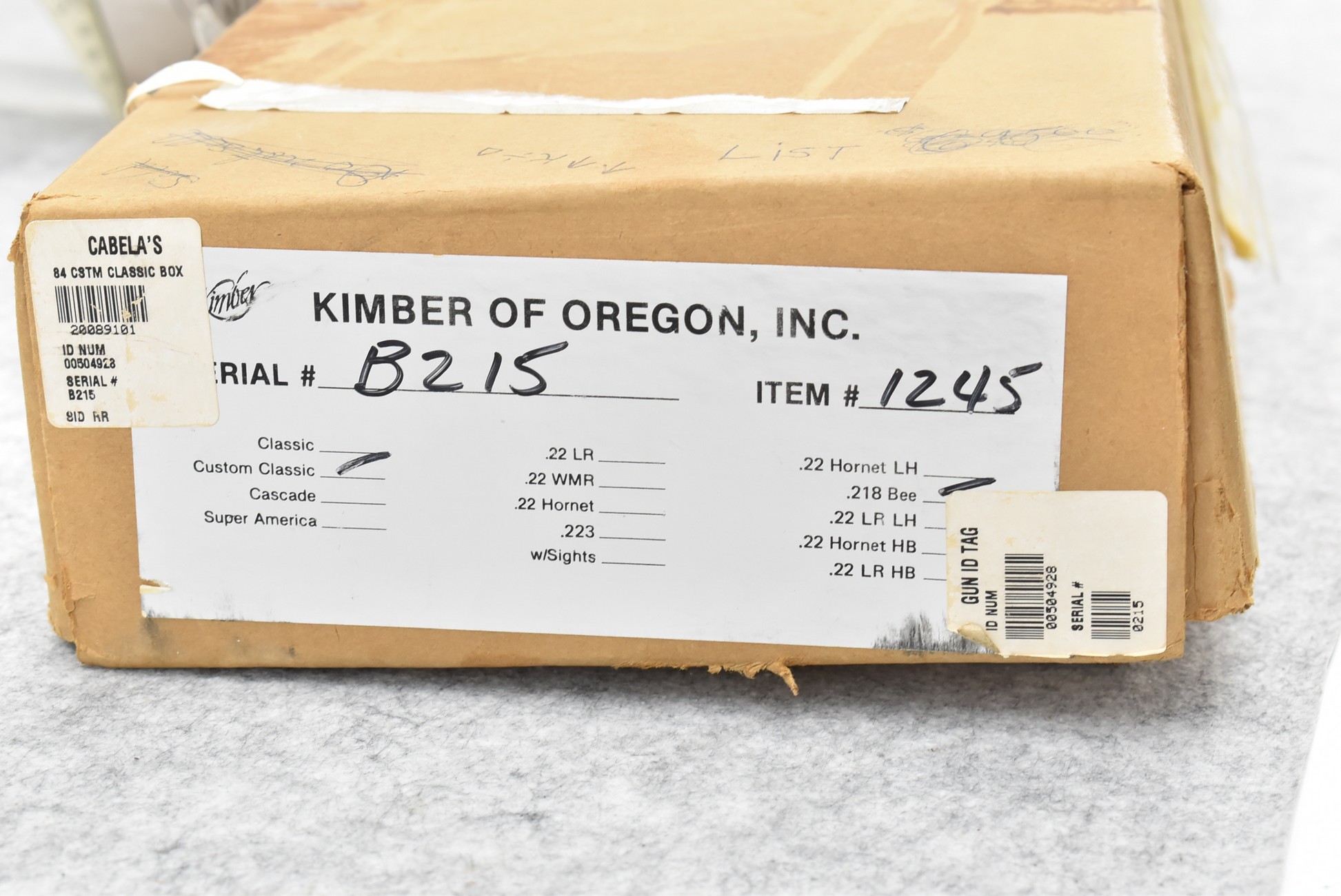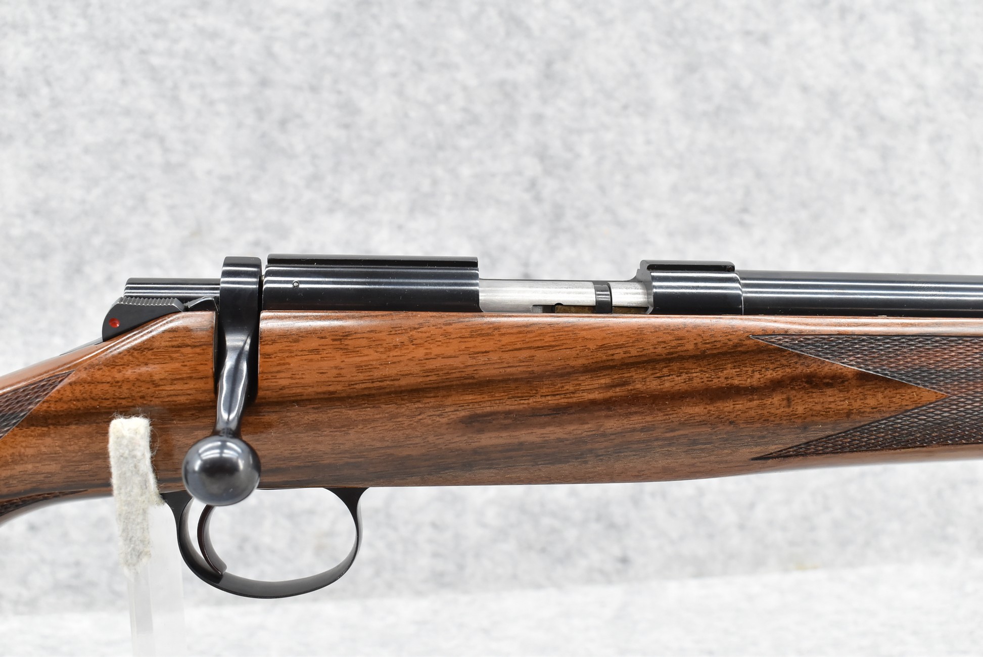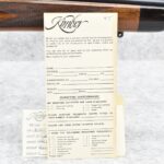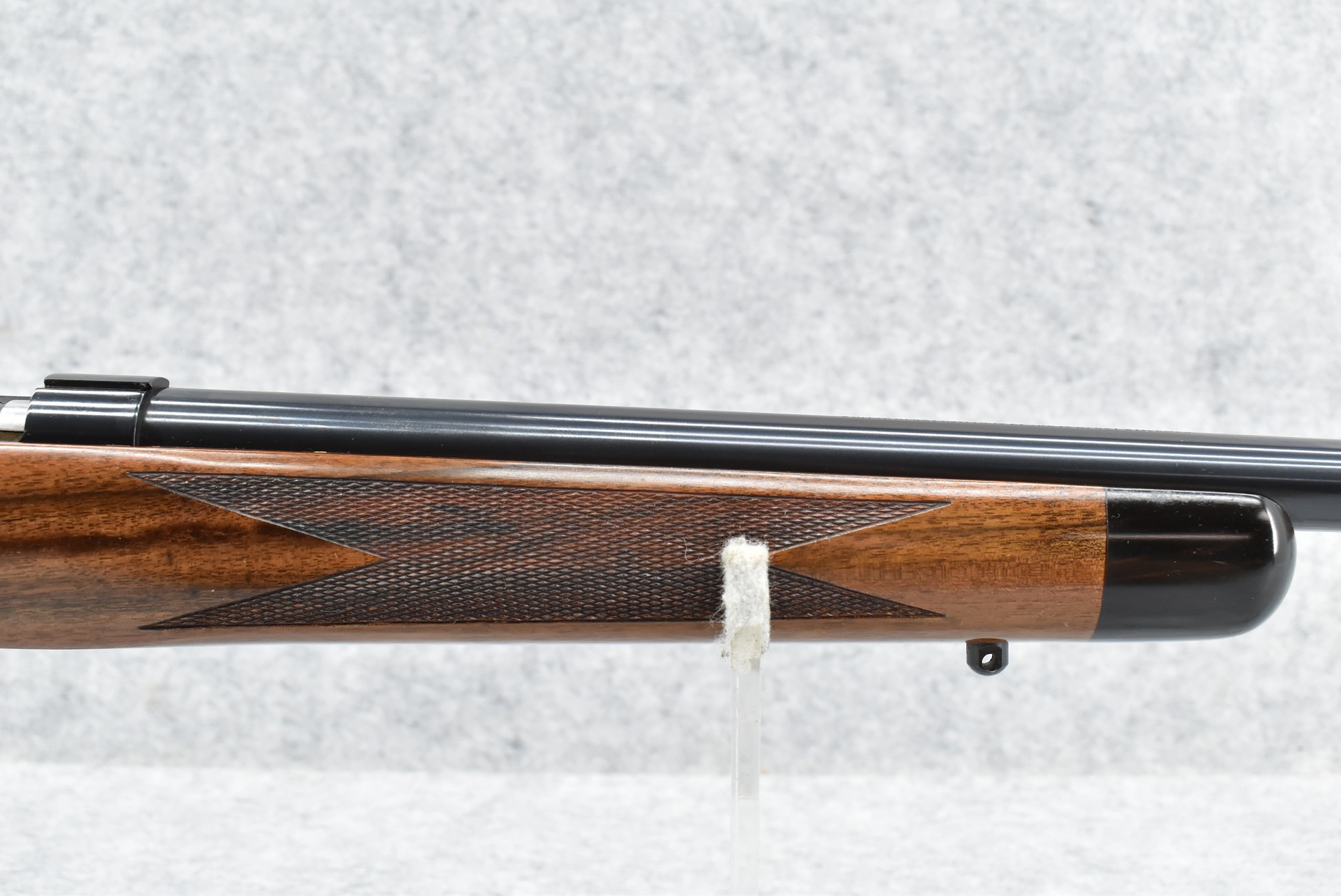 51R. Kimber of Oregon – Mod. 82 Custom Classic – 218 Bee Cal. Single Shot Bolt Action Rifle – w/24” Barrel – Blued Finish – w/Highly Figured Checkered Capped Pistol Grip Wood Stock w/Ebony Forearm Tip and Factory Metal Butt Plate – Unfired w/Factory Box, Manual, and Test Target – The 218 Bee Caliber was Mfg. in Very Limited Production Numbers Between 1985-1986 Only