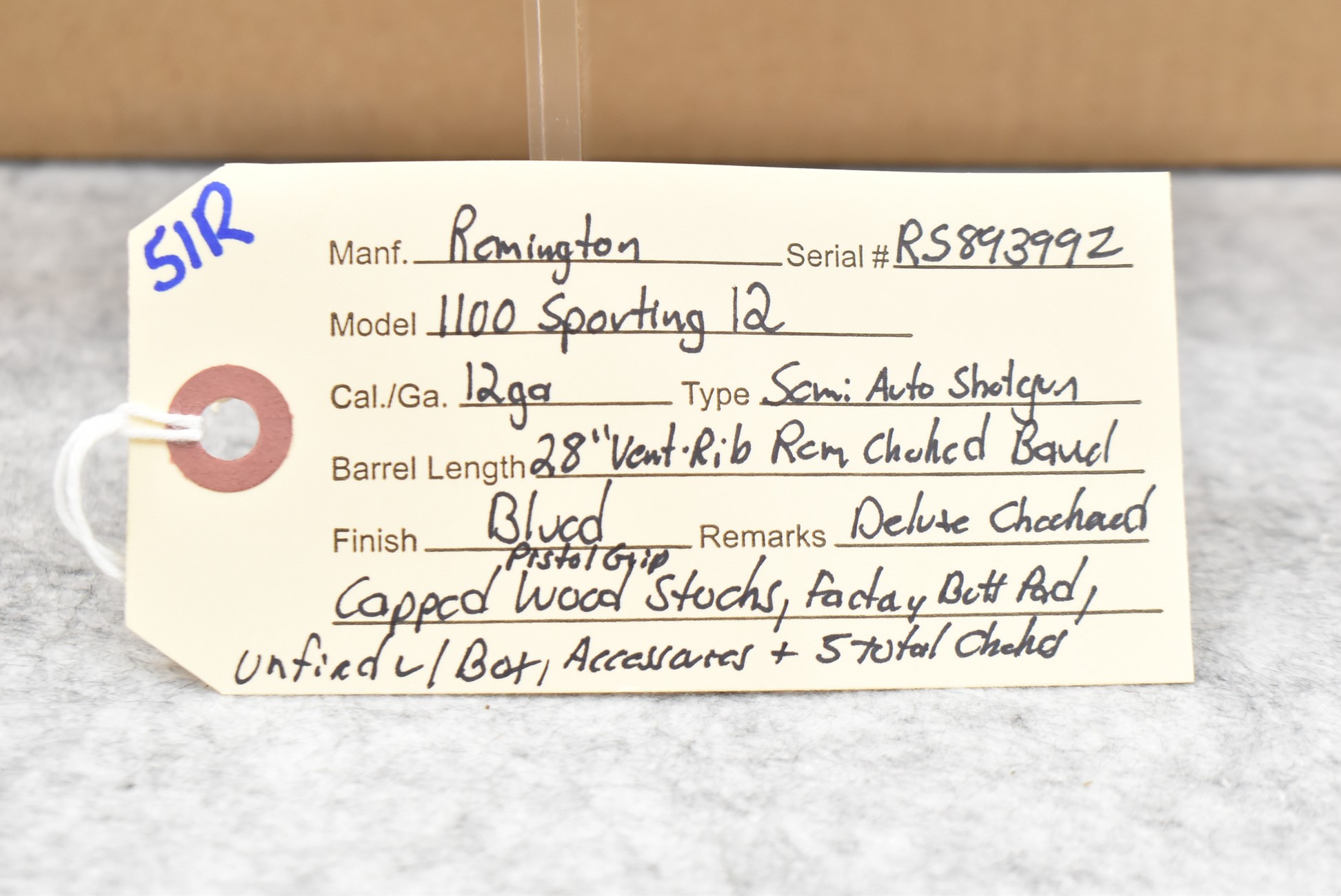 51R. Remington – Mod. 1100 Sporting 12 – 12ga. Semi-Auto Shotgun – w/28” Vent-Rib, Rem. Choked Barrel – Blued Finish – w/Deluxe Checkered Capped Pistol Grip Wood Stocks w/Factory Butt Pad – Unfired w/Box, Accessories & 5 Total Chokes