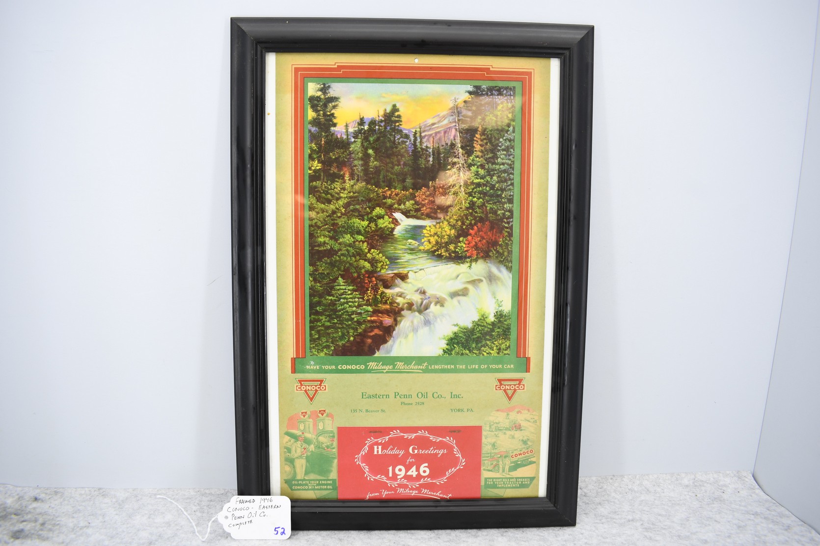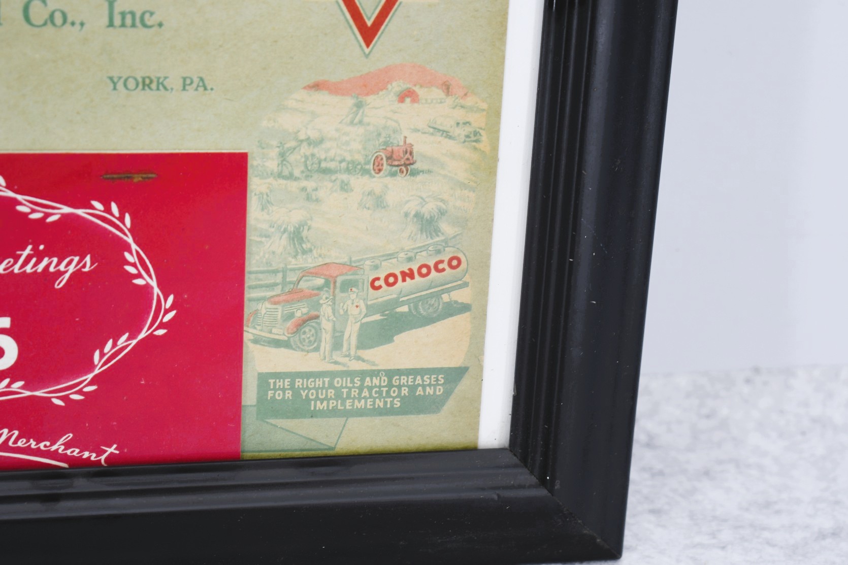 52. Framed 1946 Eastern Penn Oil Co. Inc. York PA Holiday Greeting Calendar– Conoco “Your Milage Merchant” – Calander Appears to be Complete – Measures 12” x 18”