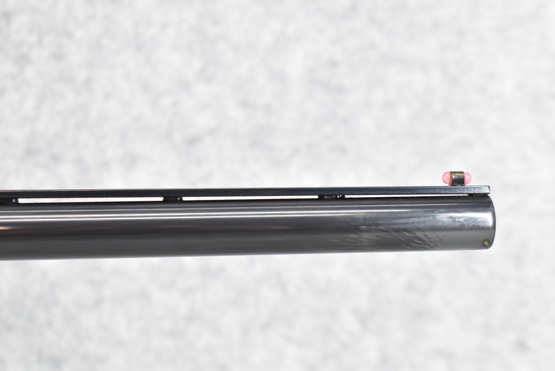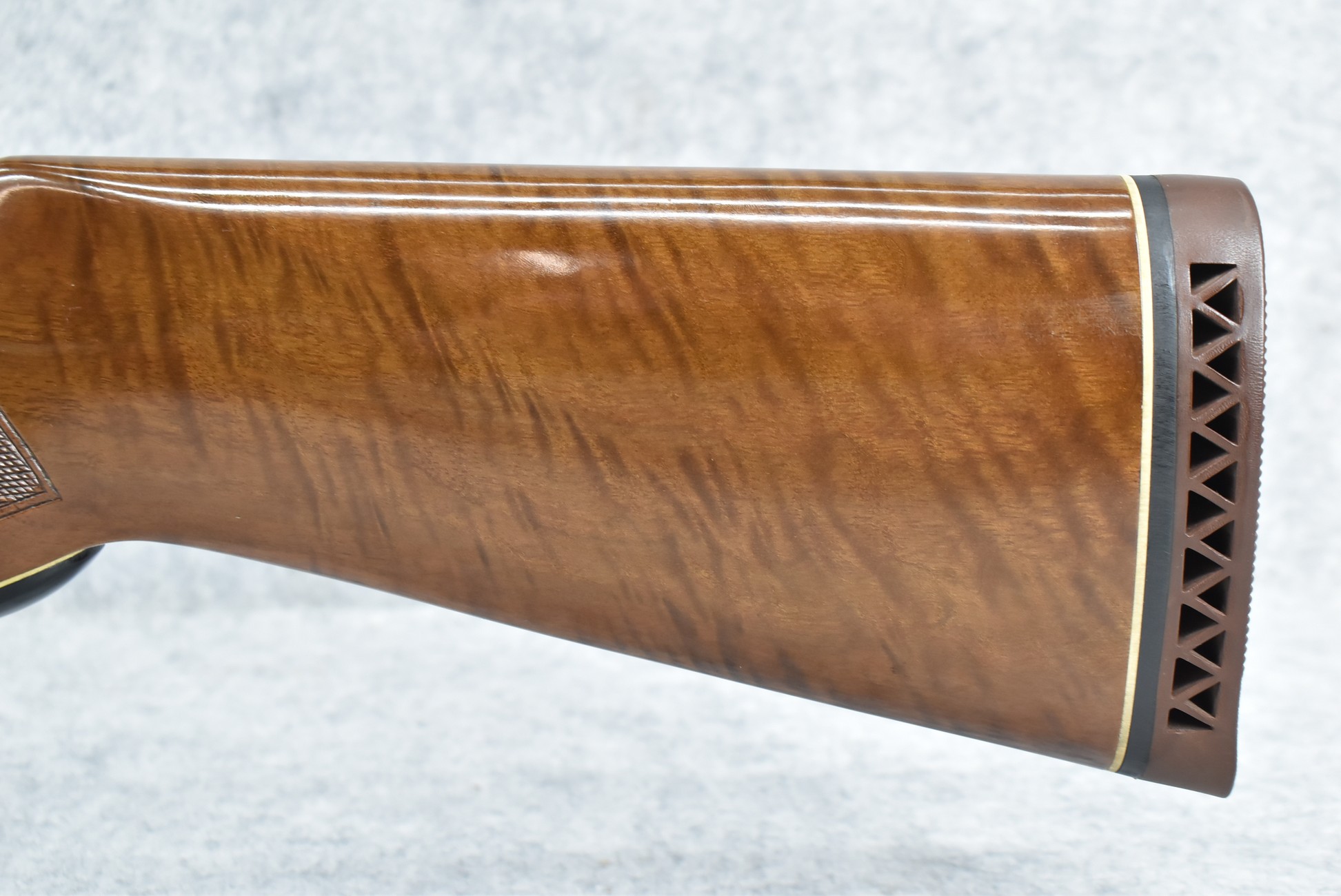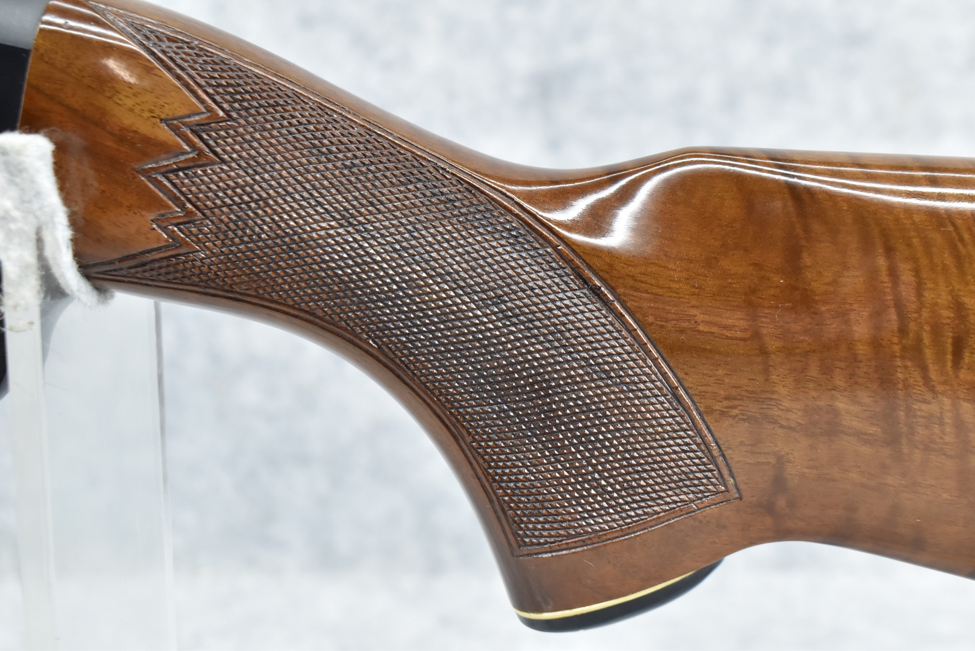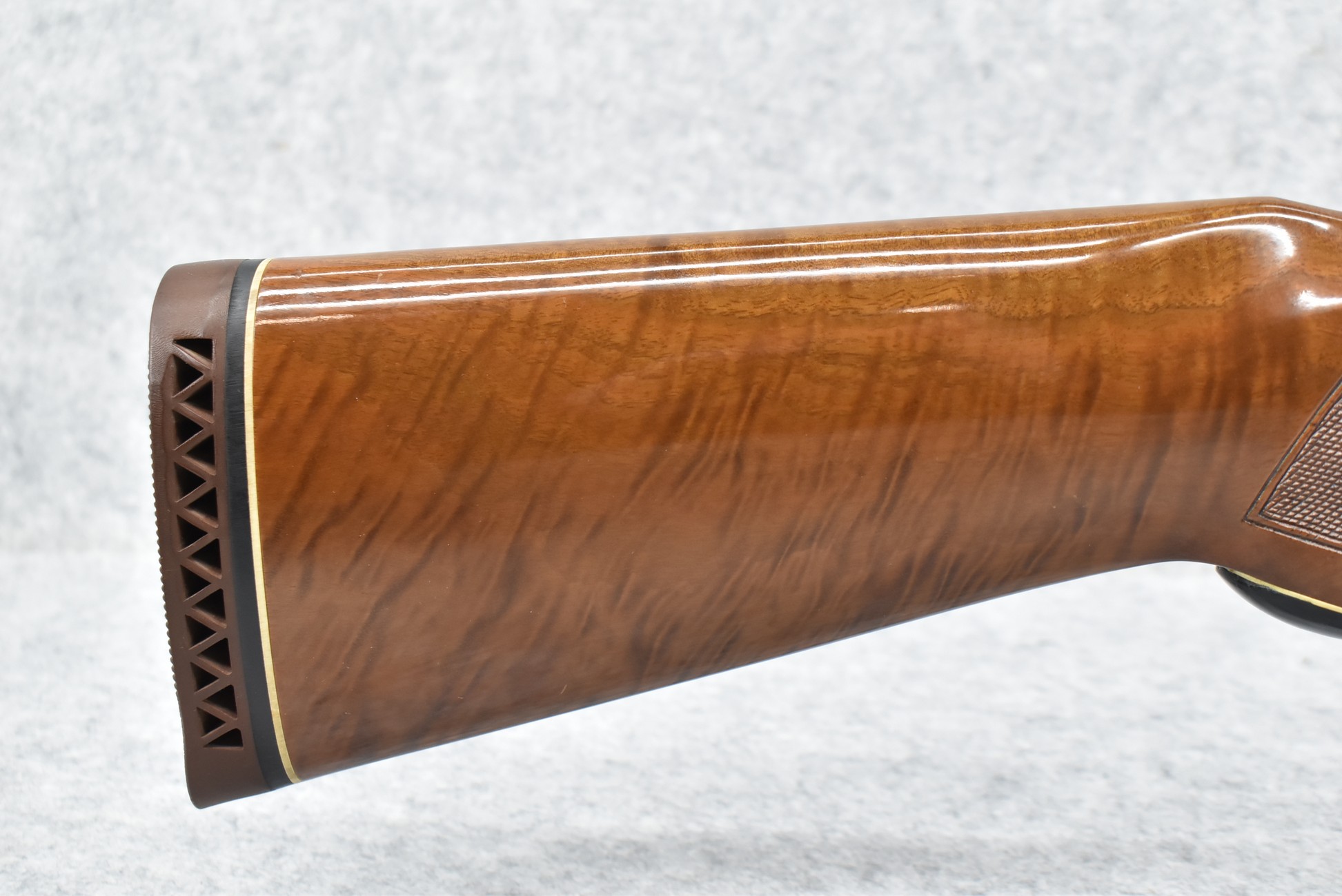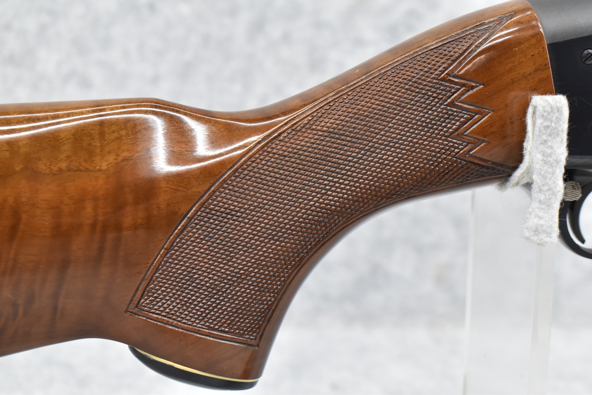 52R.       Ithaca – Mod. 37 Featherlight – 20ga. 2 ¾” Pump Action Shotgun – w/28” Mod. Choke, Vent-Rib Barrel w/Fiber Optic Bead Sight – Blued Finish – w/Engraved Receiver on Both Sides – w/Deluxe Checkered Capped Pistol Grip Highly Figured Wood Stocks w/Factory Butt Pad