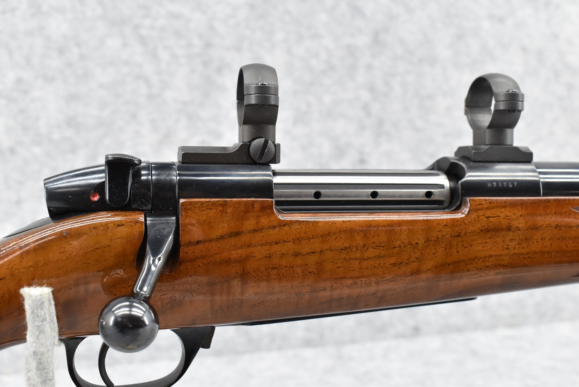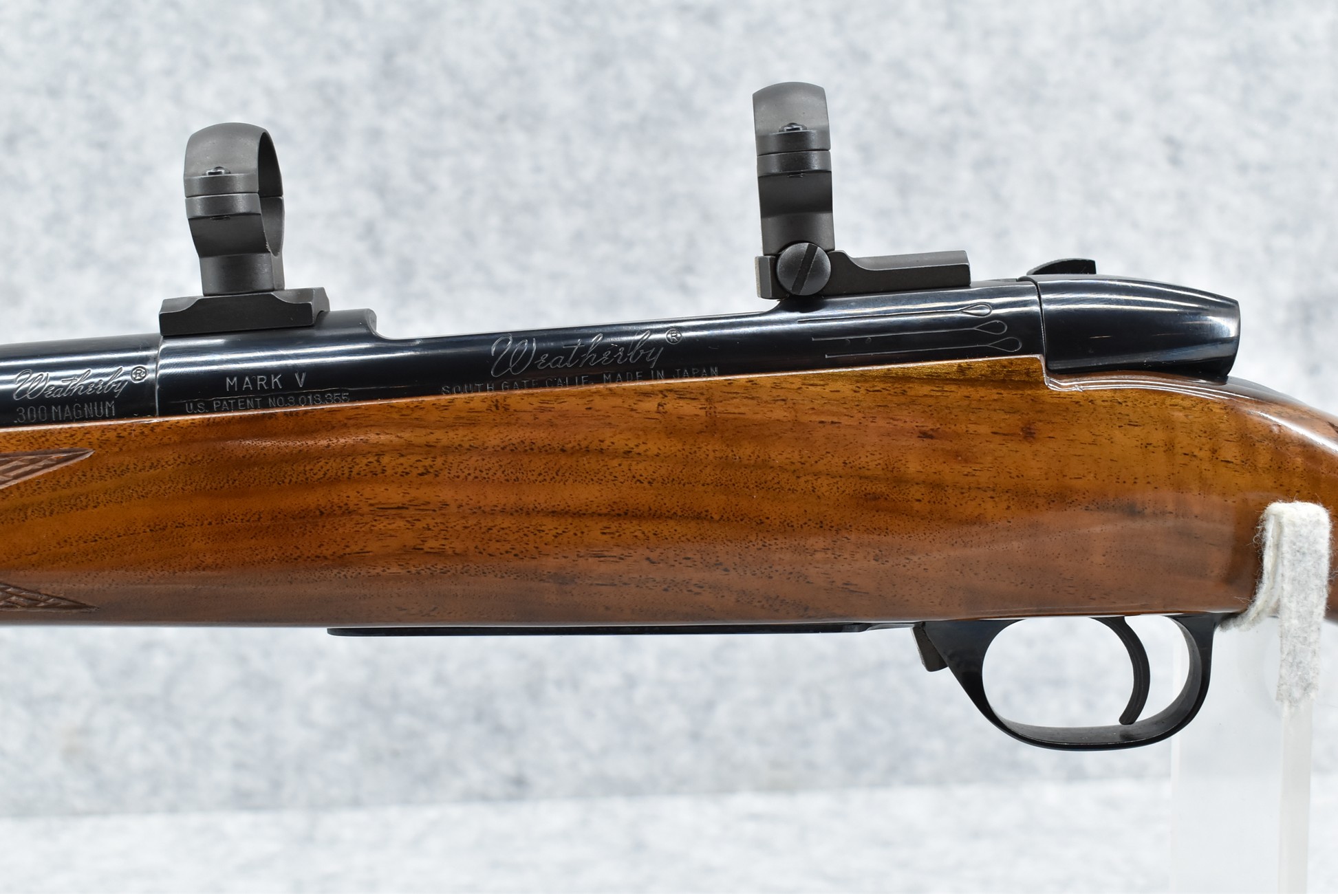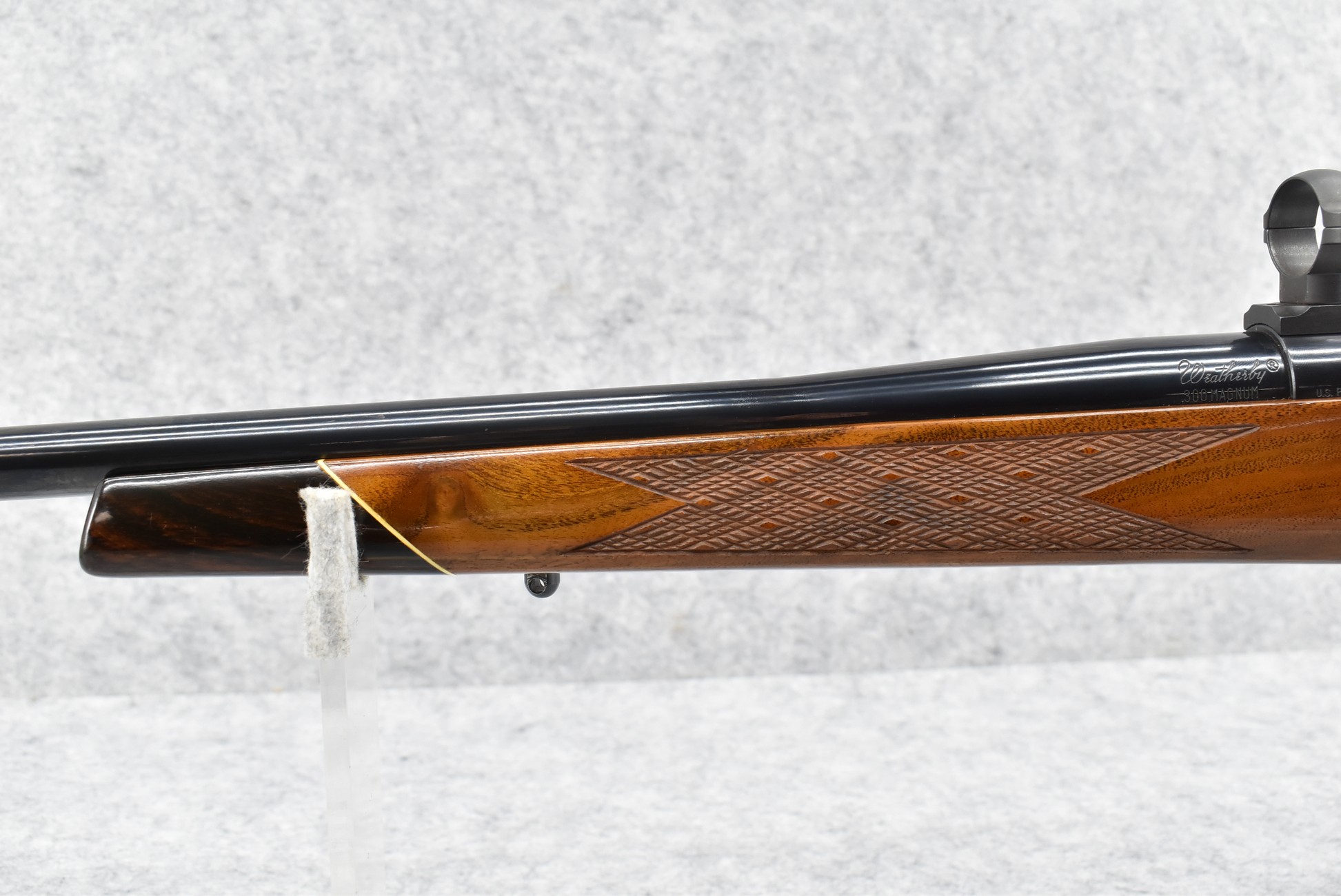 530R. Weatherby – Mod. Mark V – 300 Wby. Mag. Cal. Bolt Action Rifle – w/26” Barrel – Blued Finish – w/Deluxe Checkered Rosewood Capped Pistol Grip & Forend Capped Wood Stock w/Raised Cheek Piece w/Factory Butt Pad – w/Leupold 2pc. Scope Rings & Mounting Bases