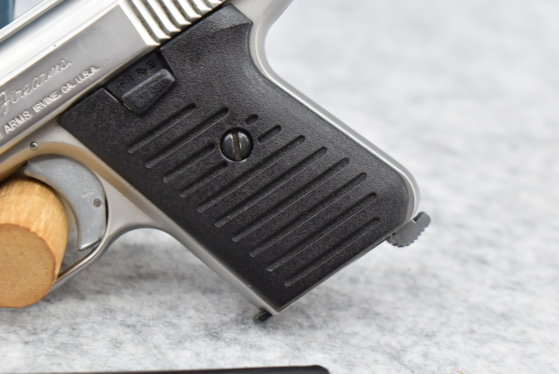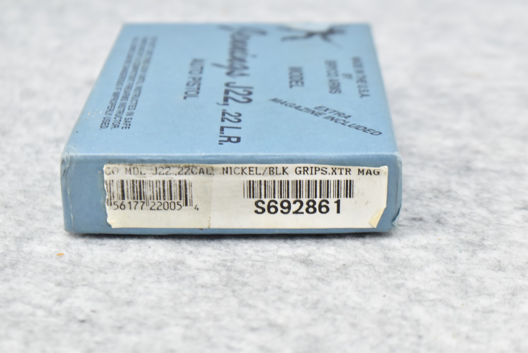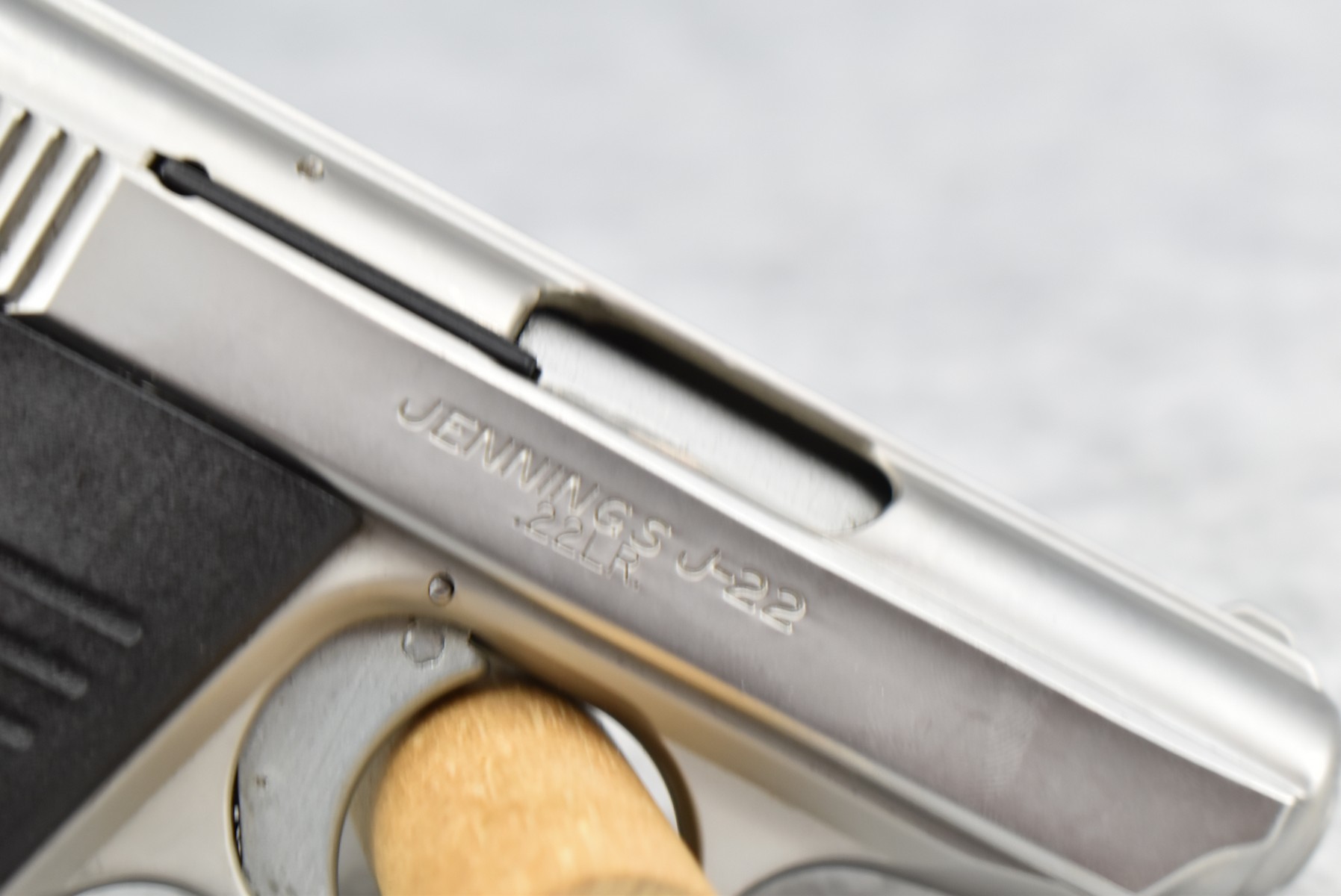 531R. Jennings Firearms/Bryco Arms – Mod. Jennings J-22 – 22LR Cal. Semi-Auto Pistol – w/2.5” Barrel w/Iron Sights – Chrome Finish – w/Black Hard Grips – w/Factory Box & 2 Mags (CANNOT GO TO MARYLAND!)
