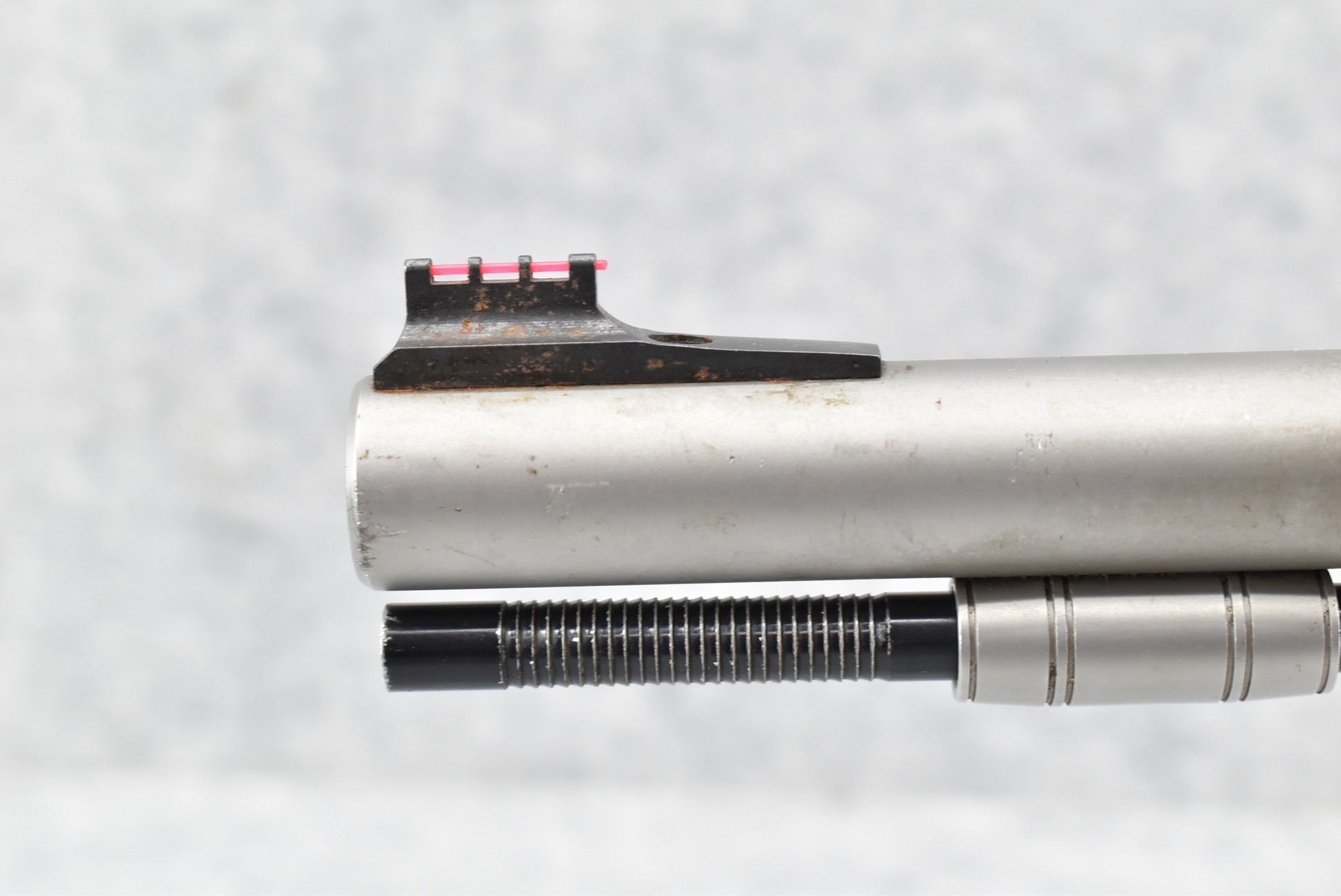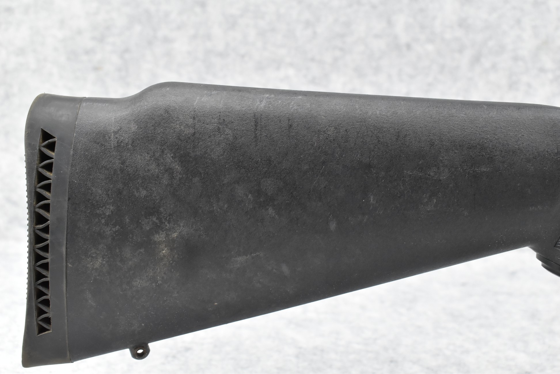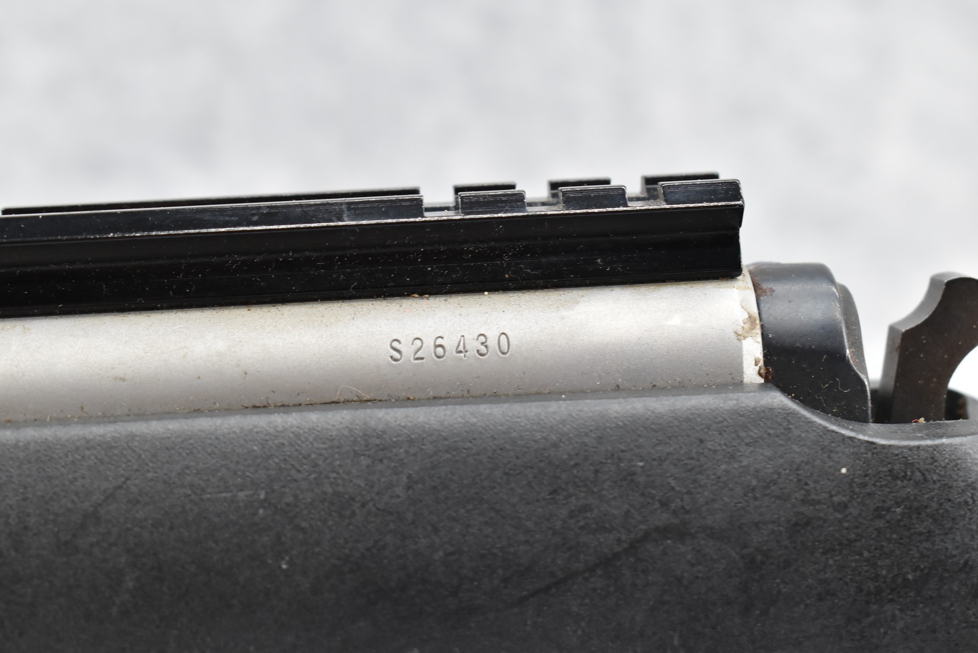 538. Thompson Center – Mod. Omega – 50 Cal. Black Powder Inline Rifle – w/28” Barrel w/Fiber Optic Blade Front Sight – Matte Stainless Finish – w/Checkered Capped Pistol Grip Black Synthetic Stock w/Factory Butt Pad – w/Metal Ram Rod – w/Rear Scope Base