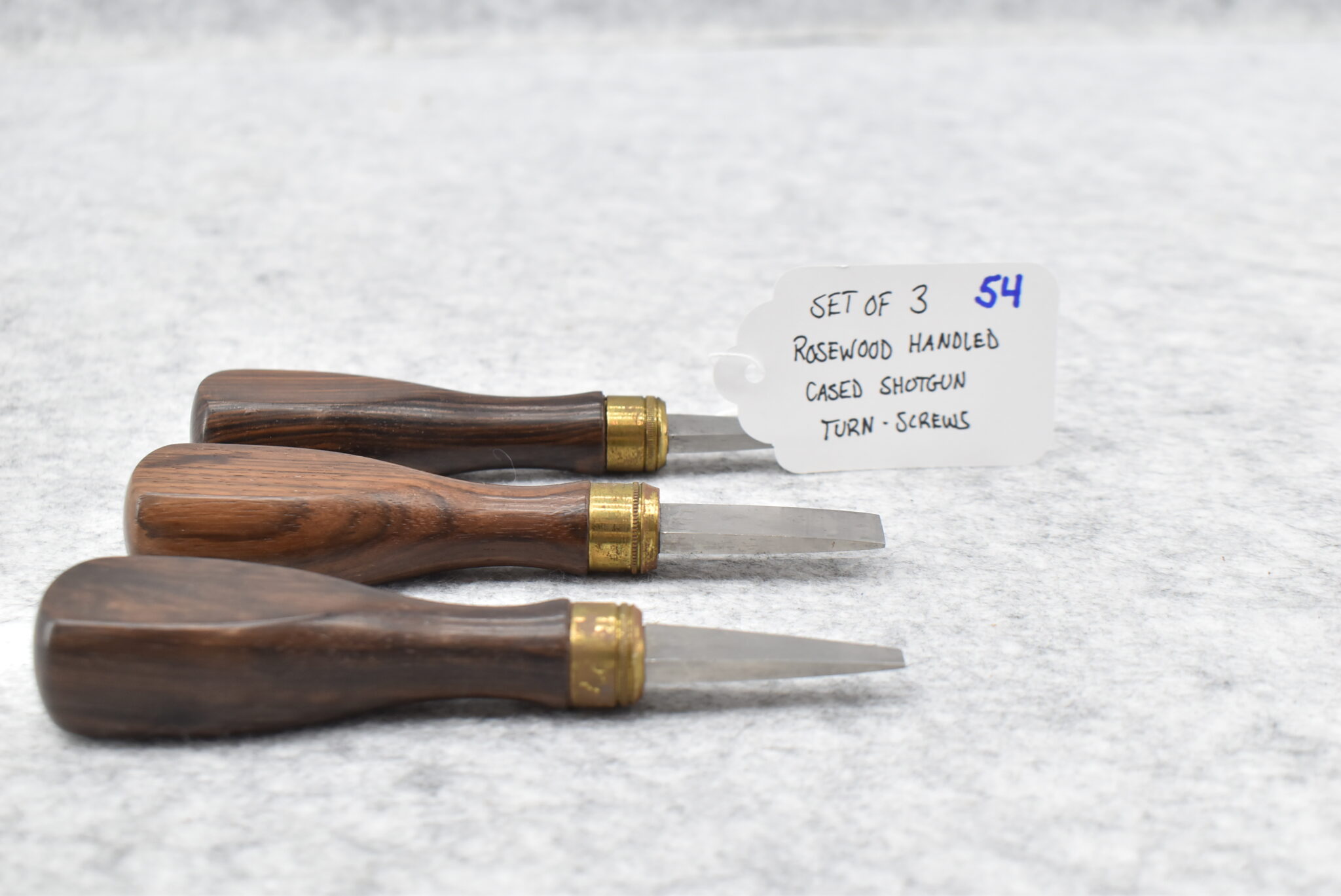 54. Set of 3 Rosewood Handled Cased Shotgun Turn-Screws