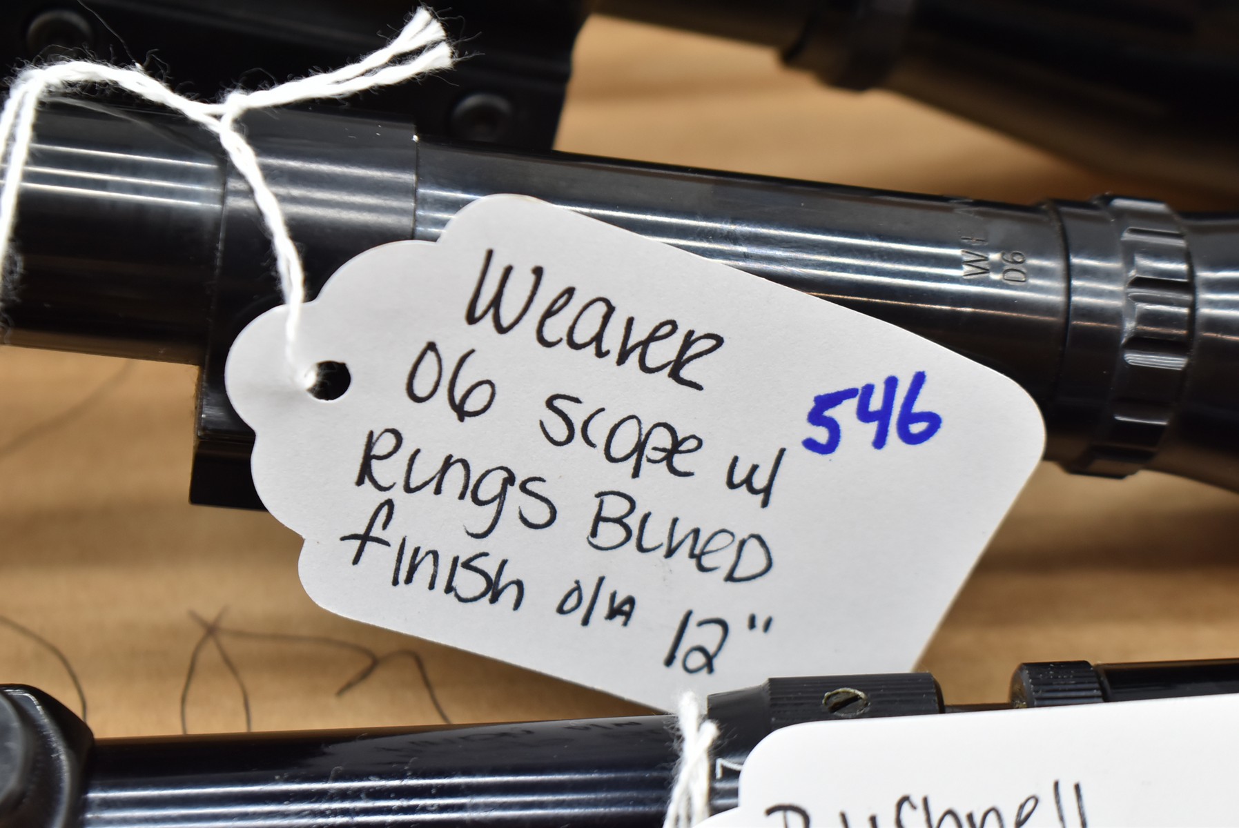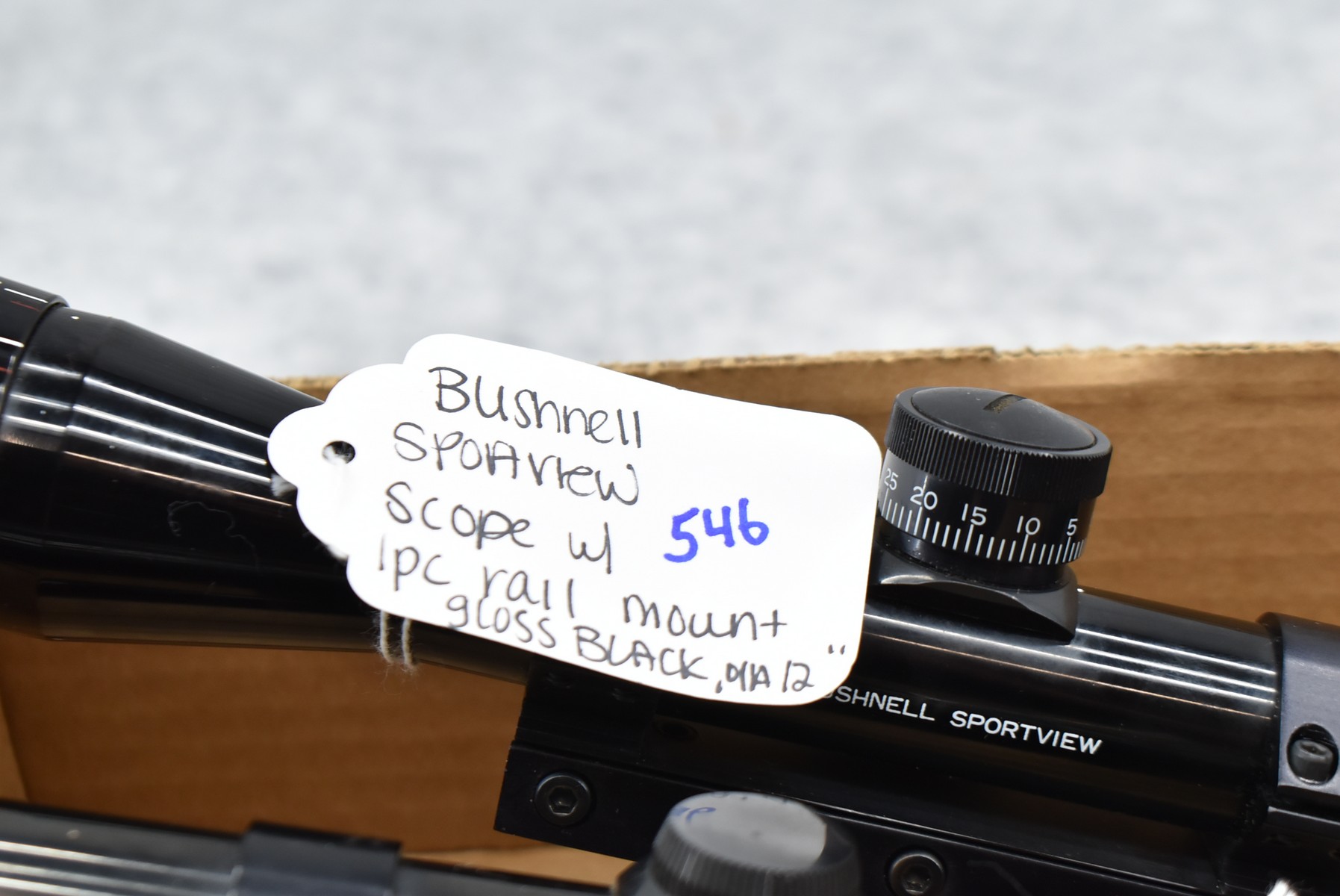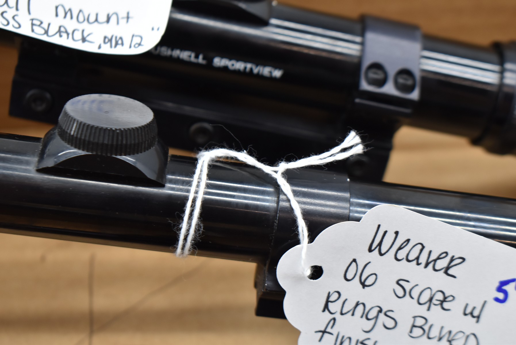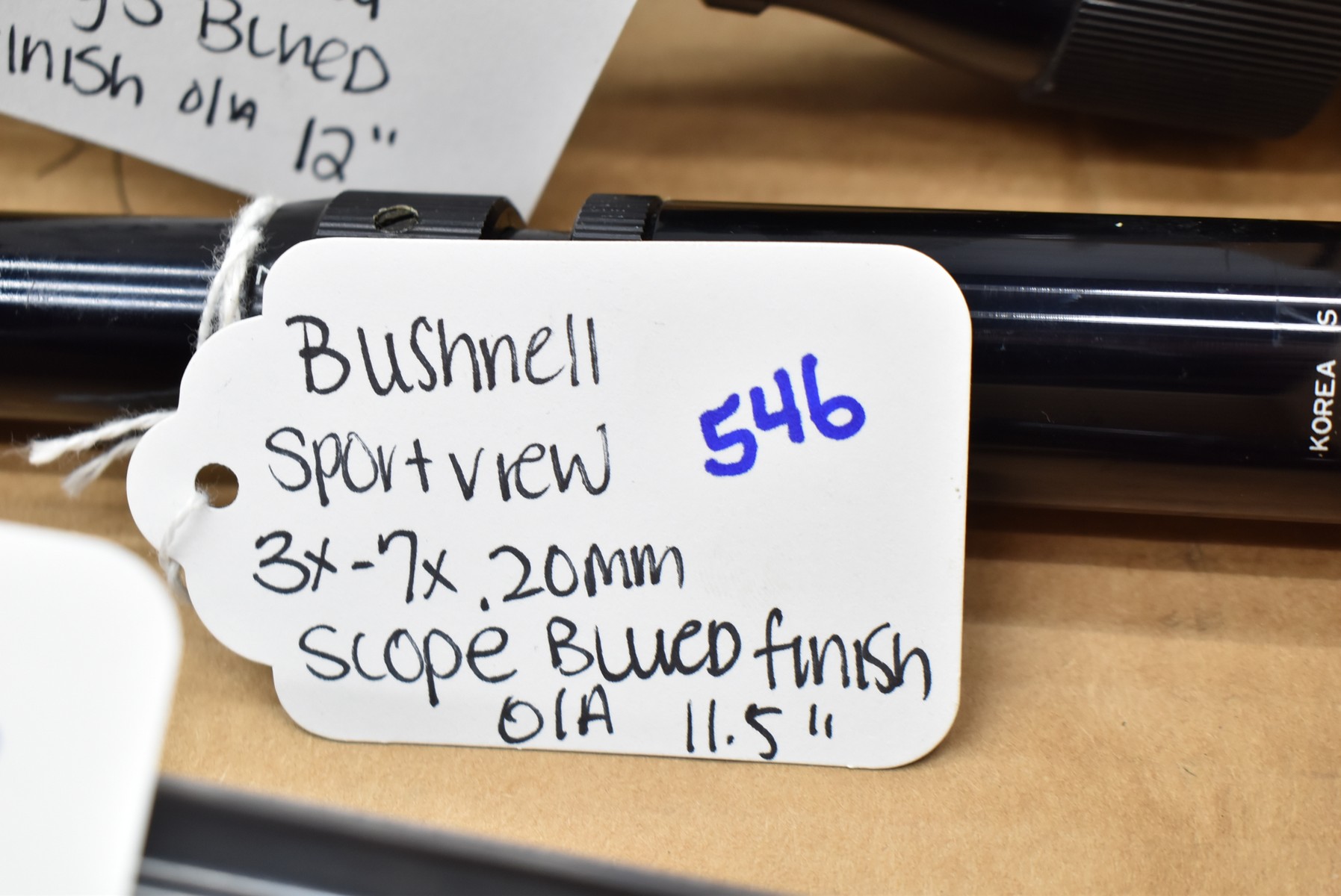 546. Lot of 4 Scopes – 1st is Weaver B4 – Blued Finish – 2nd is Bushnell Sportview 3x-7x .20mm – Blued Finish – 3rd is Weaver D6 – Blued Finish – w/Rings – 4th is Bushnell Sportview – Gloss Black Finish – w/2pc. Rings & 1pc. Rail Mount
