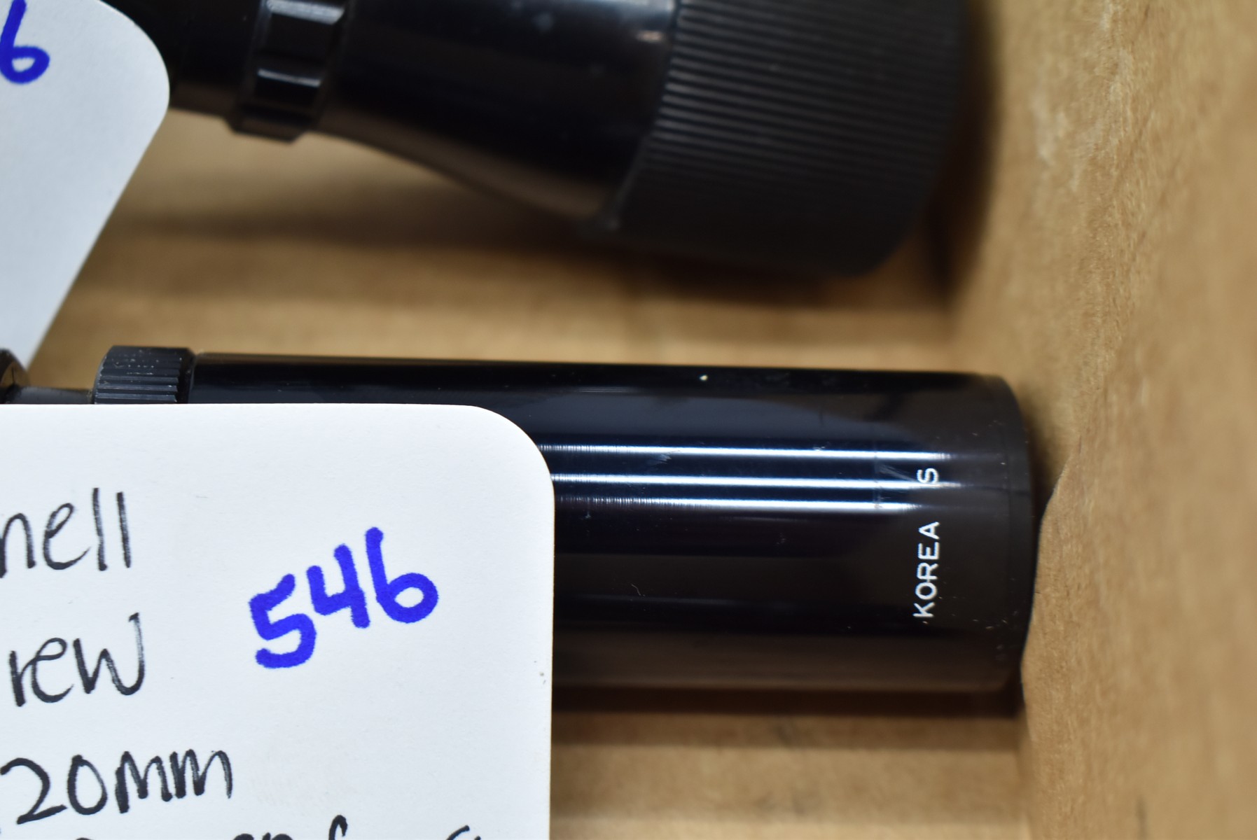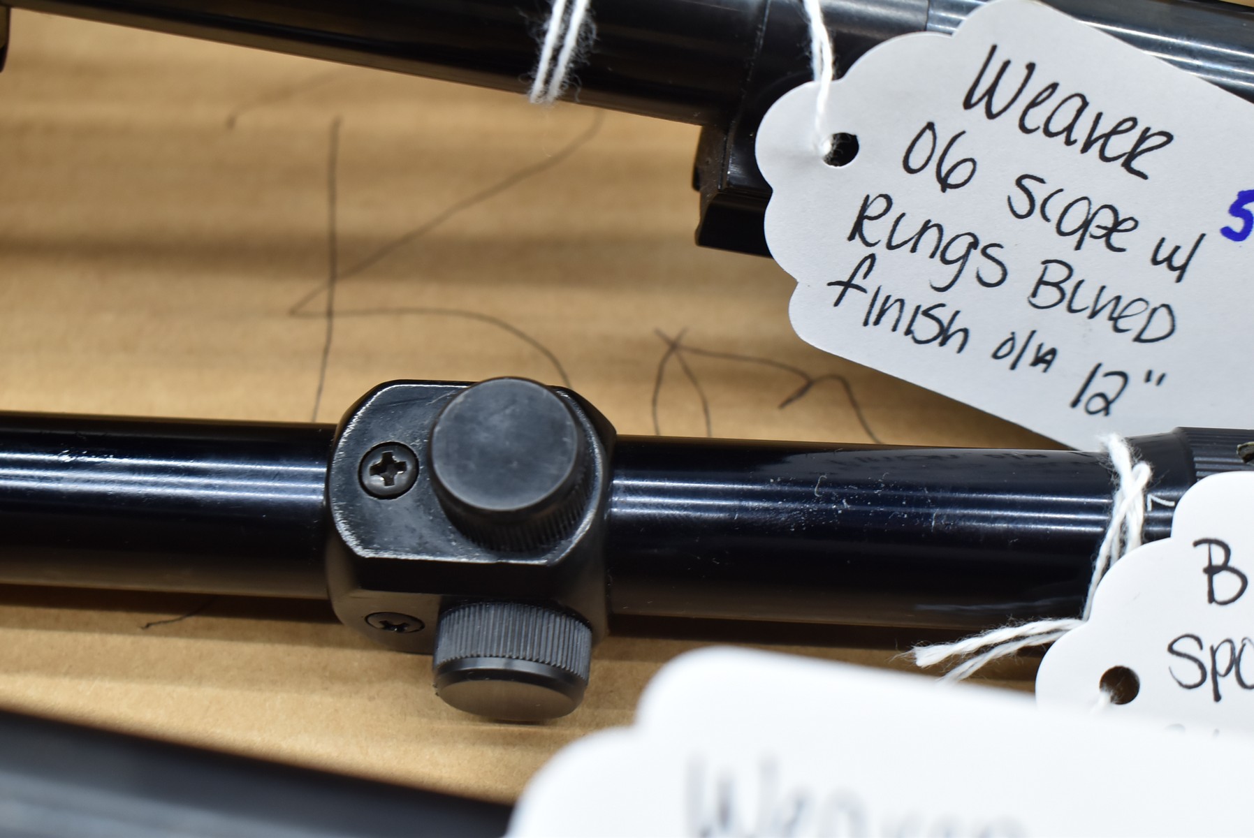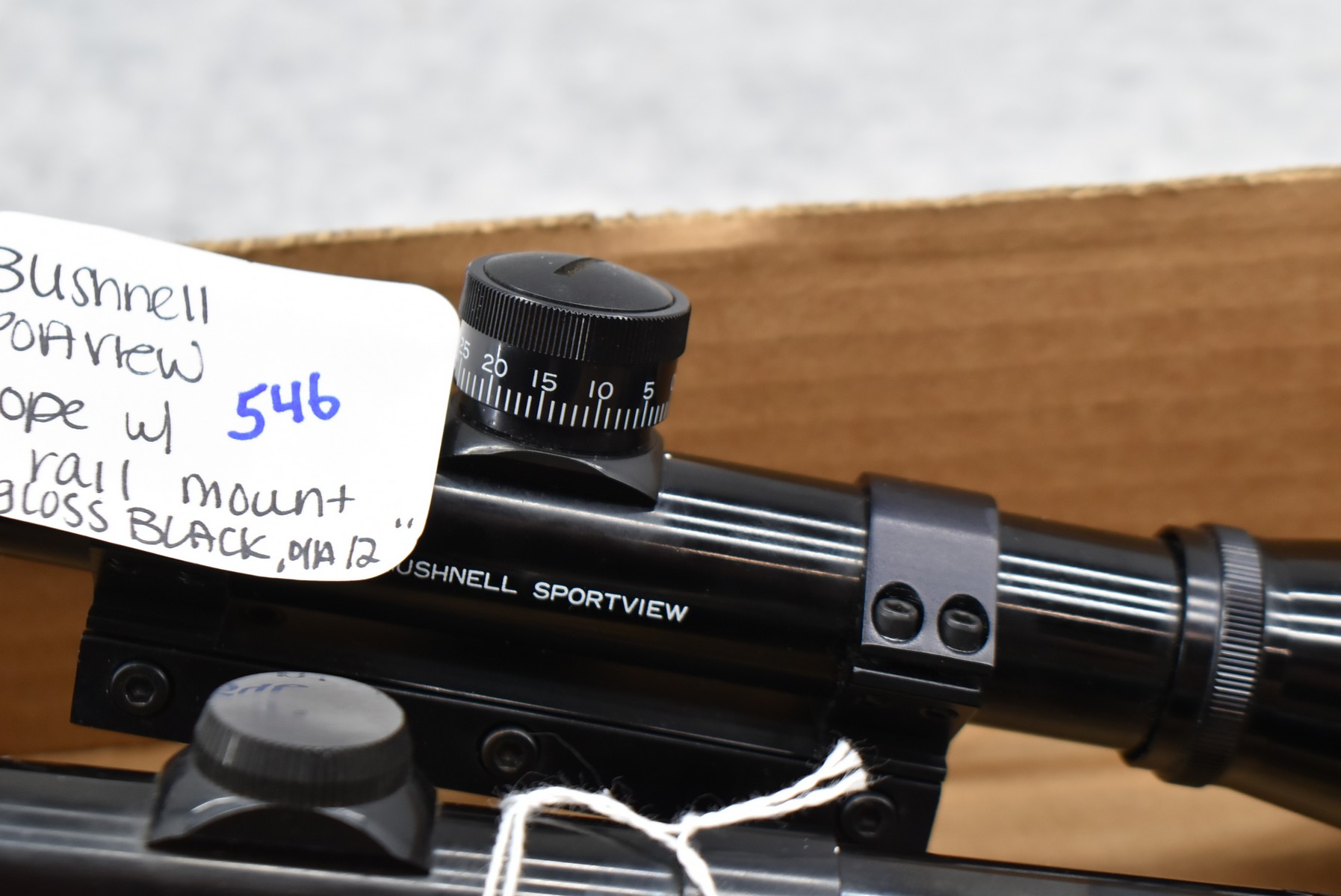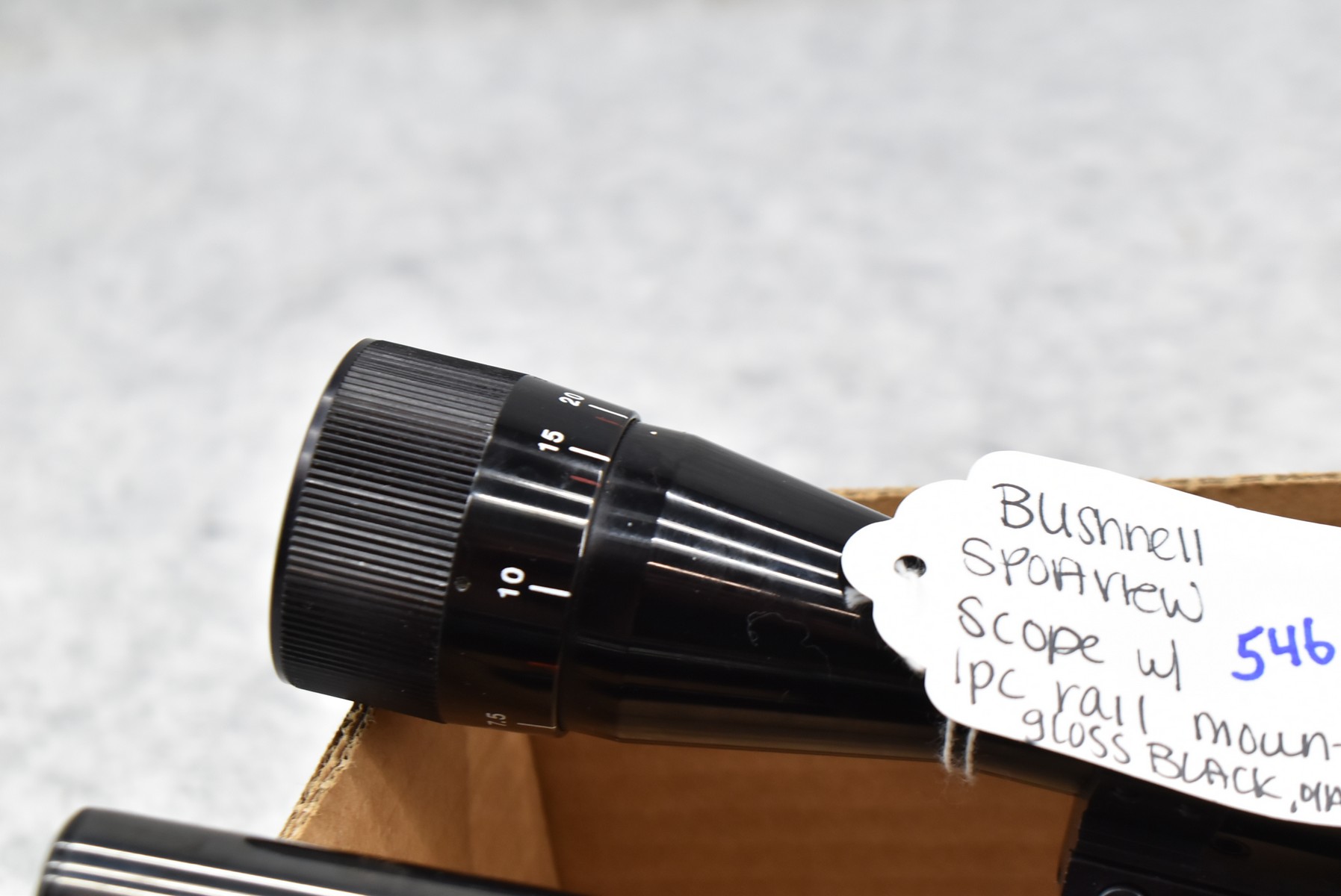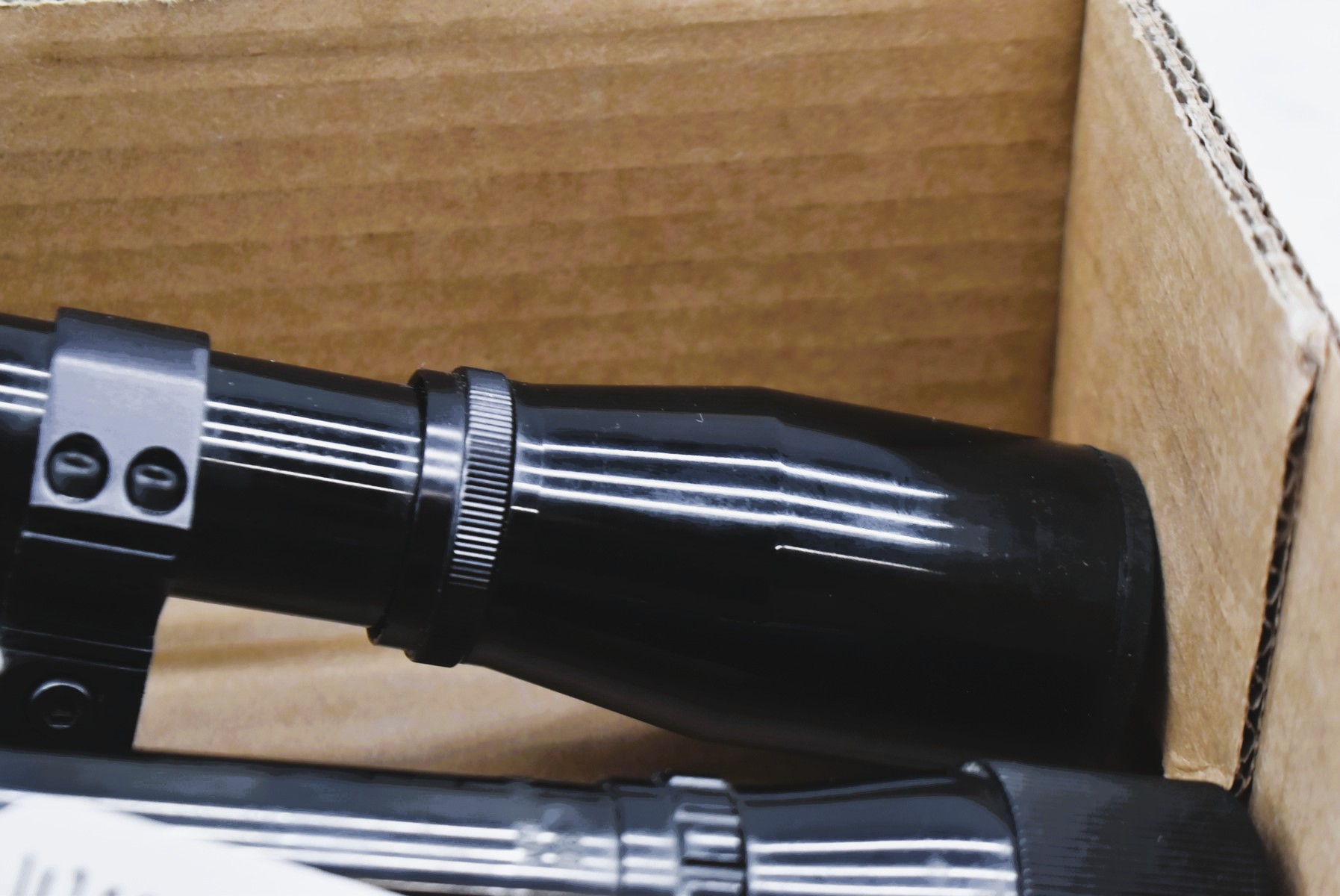 546. Lot of 4 Scopes – 1st is Weaver B4 – Blued Finish – 2nd is Bushnell Sportview 3x-7x .20mm – Blued Finish – 3rd is Weaver D6 – Blued Finish – w/Rings – 4th is Bushnell Sportview – Gloss Black Finish – w/2pc. Rings & 1pc. Rail Mount