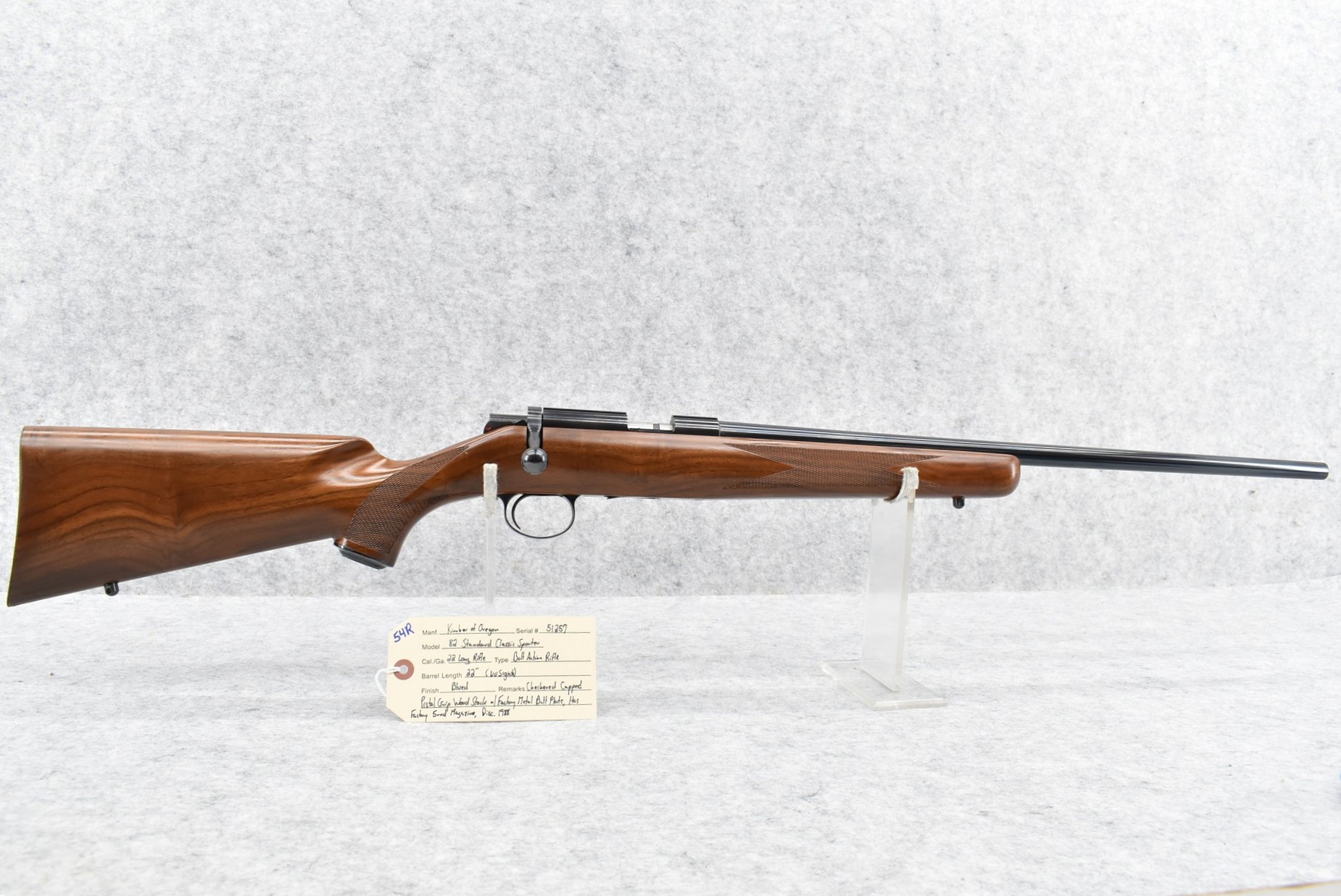 54R. Kimber of Oregon – Mod. 82 Standard Classic Sporter – 22LR Cal. Bolt Action Rifle – w/22” Barrel – Blued Finish – w/Checkered Capped Pistol Grip Wood Stock w/Factory Metal Butt Plate – w/Factory 5-Round Magazine – Discontinued in 1988