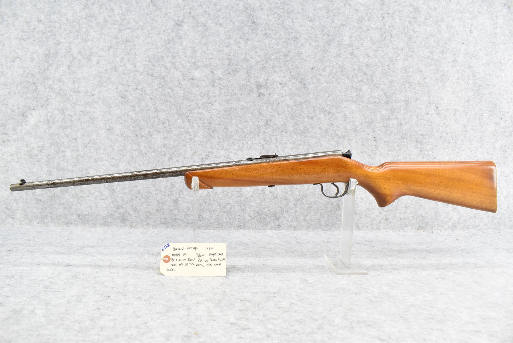 552R. Stevens-Savage – Mod. 15 – 22 Cal. Single Shot Bolt Action Rifle – w/22” Barrel w/Front Blade & Rear Adj. Sights – w/Pistol Grip Wood Stock
