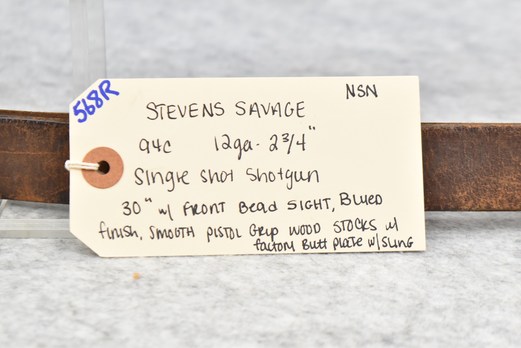 568R. Stevens-Savage – Mod. 94C – 12ga. 2 ¾” Single Shot Shotgun – w/30” Barrel w/Front Bead Sight – Blued Finish – w/Smooth Pistol Grip Wood Stocks w/Factory Butt Plate – w/Sling