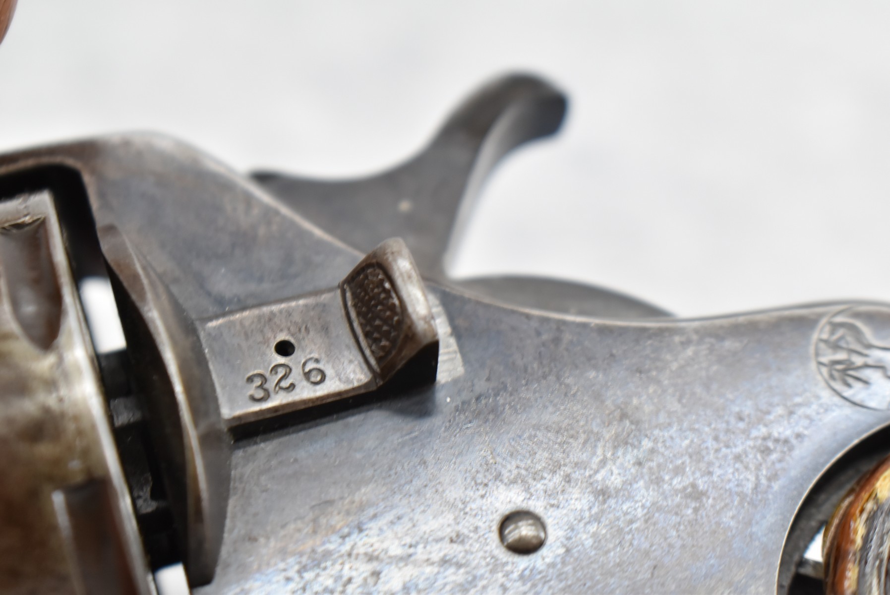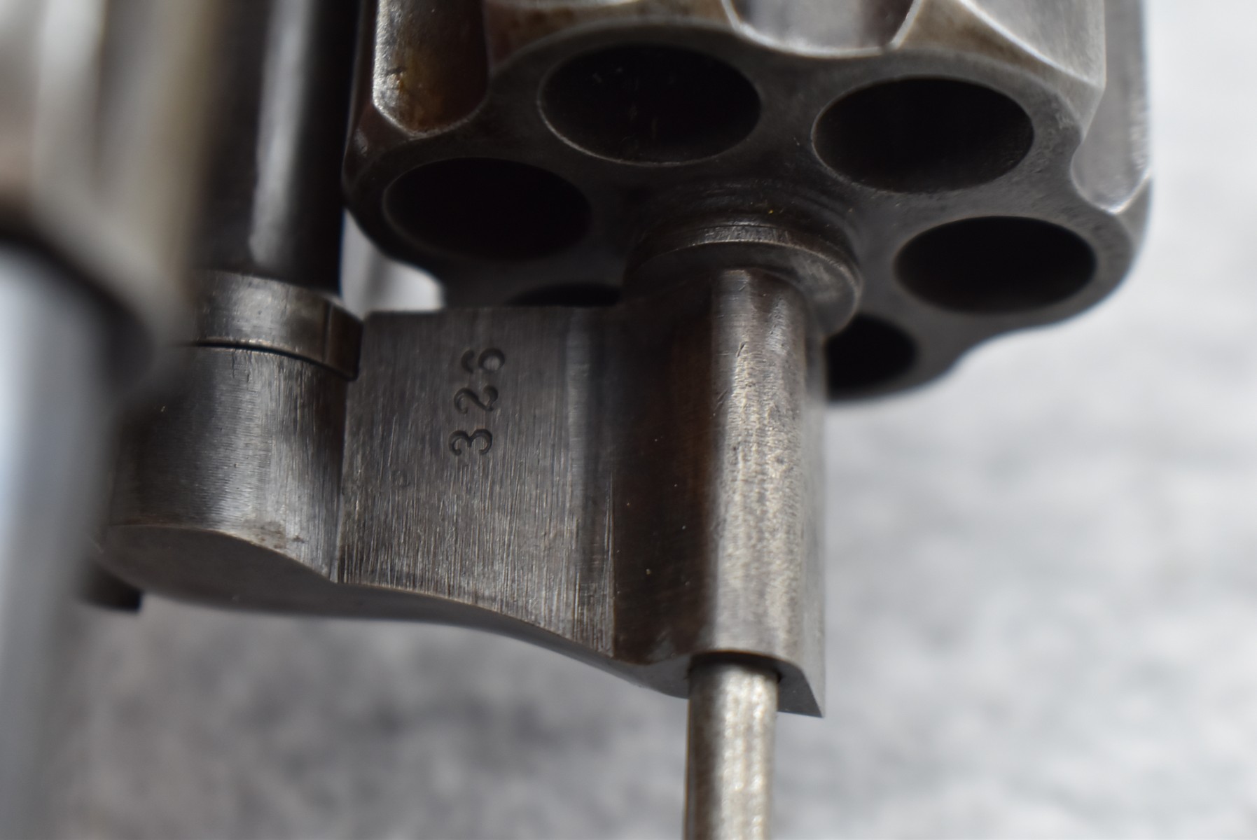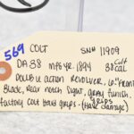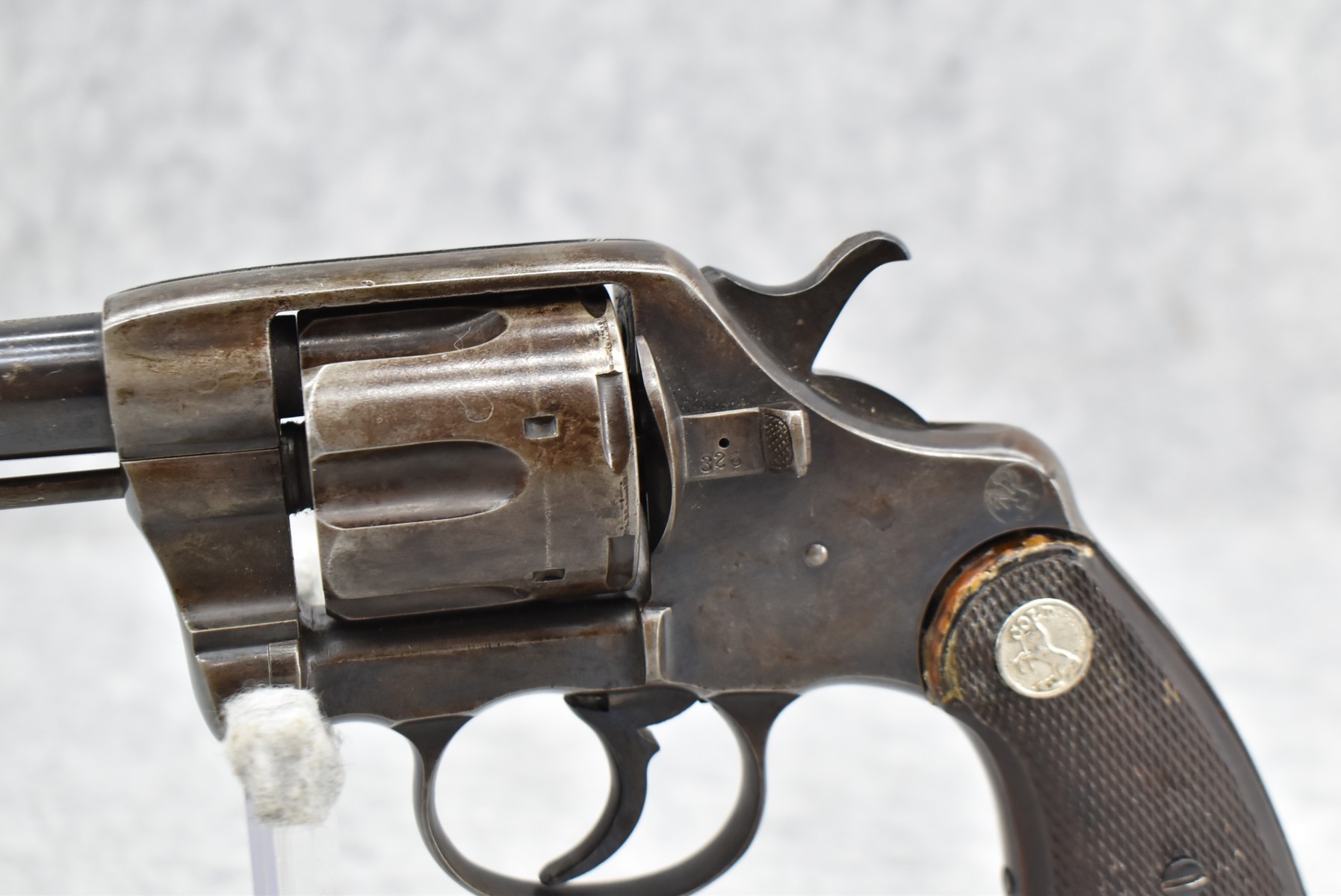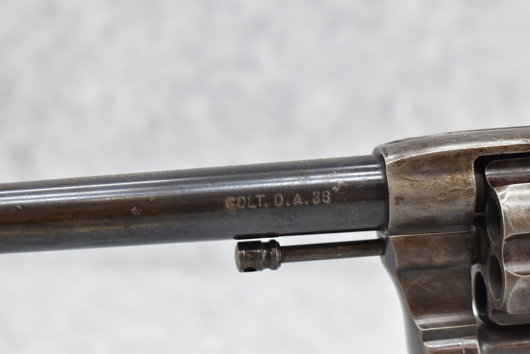 569. Colt – Mod. DA 38 – 38 Colt Cal. Double Action Revolver – w/6” Barrel w/Front Blade & Rear Notch Sights – Gray Finish – w/Factory Colt Hard Grips – Mfg. 1894 – Note: Grips Have Damage