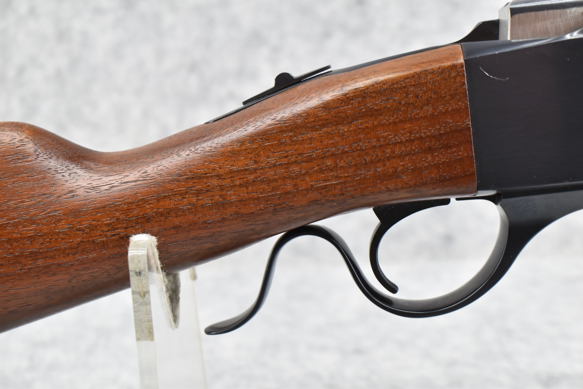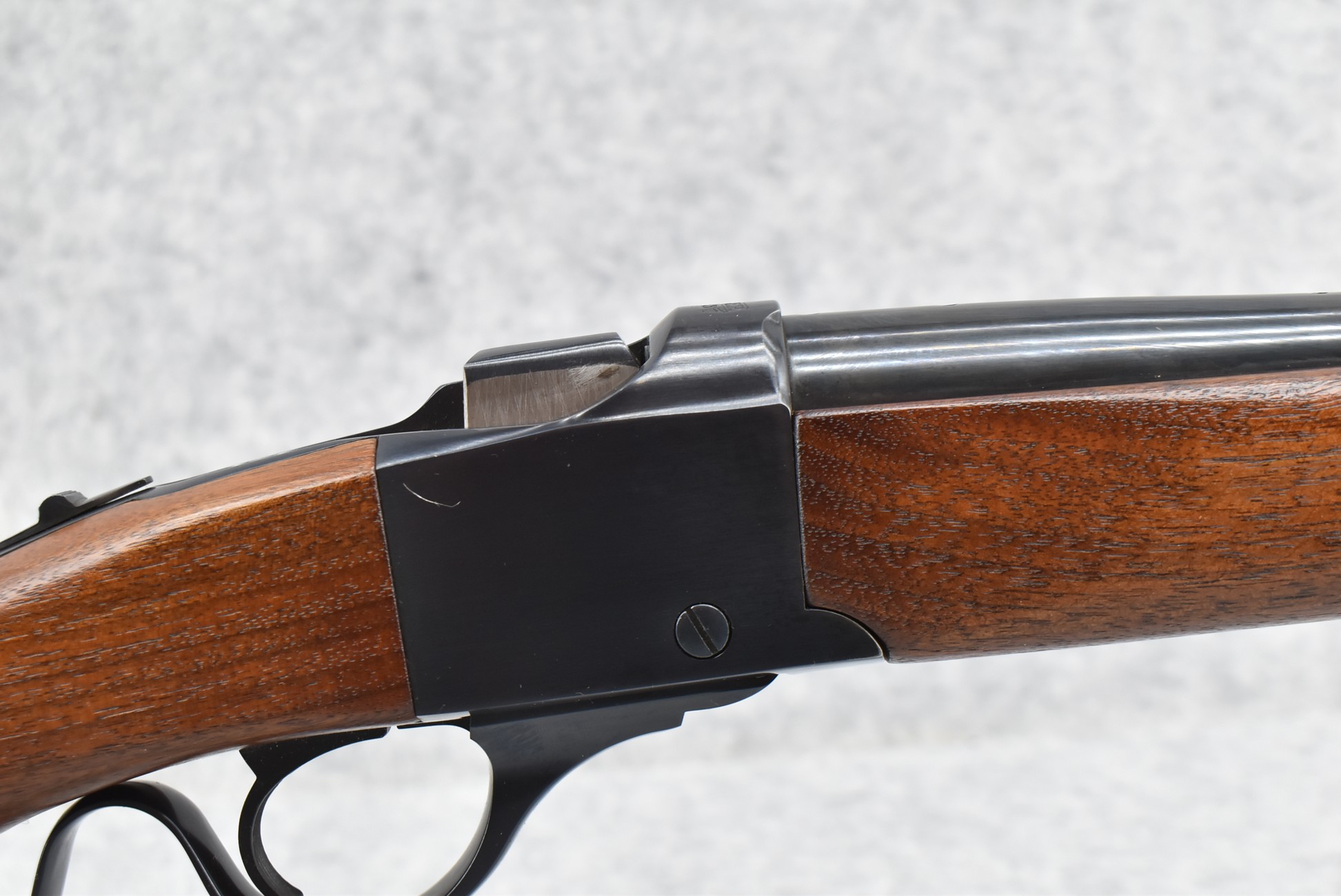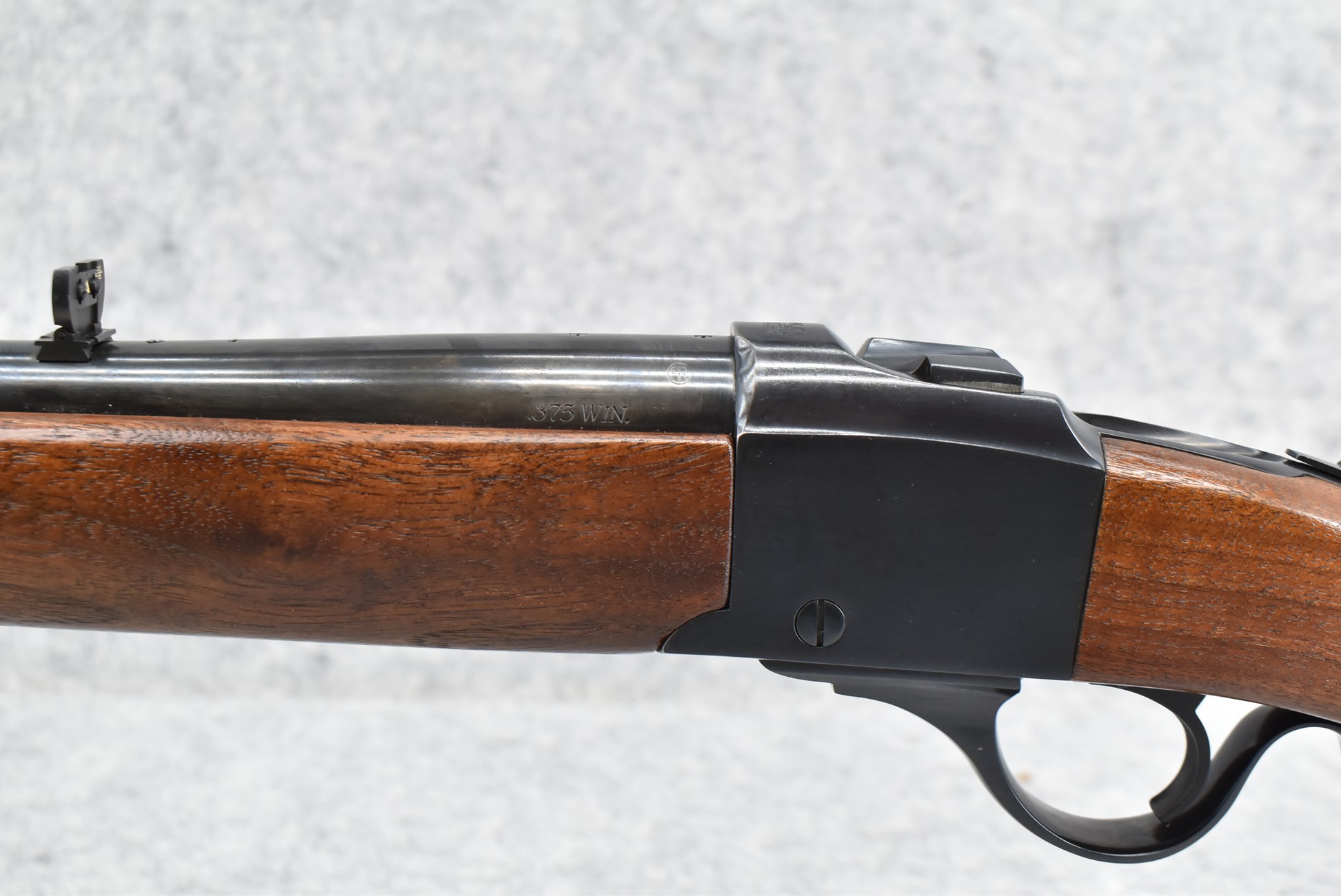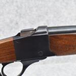 56R. Ruger – Mod. No. 3 – 375 Win. Cal. Falling Block Rifle – w/22” Barrel w/Blade Front and Flip-Up Adjustable Rear Notch Sights – Blued Finish – w/Straight Grip Wood Stock w/Factory Butt Plate