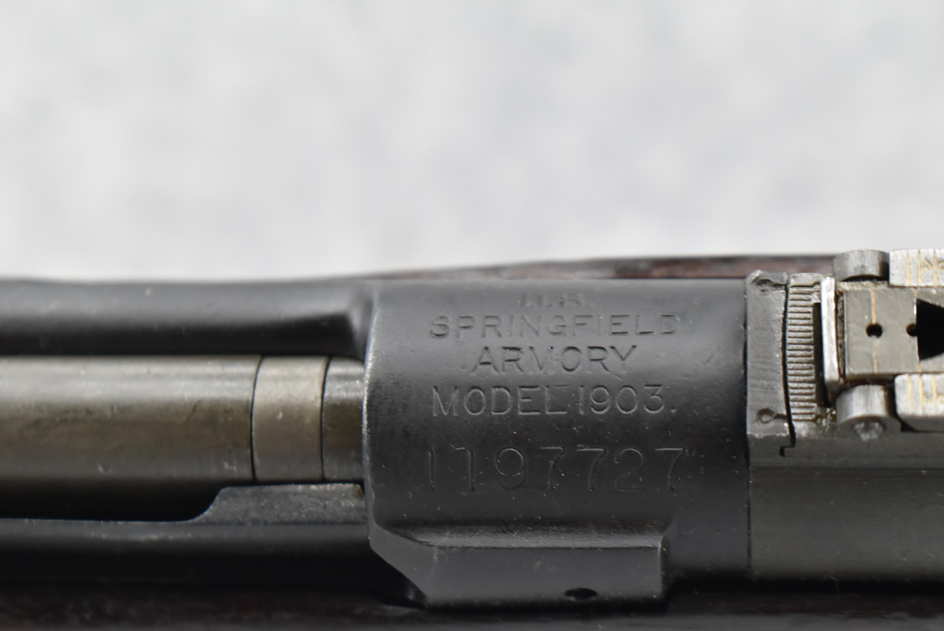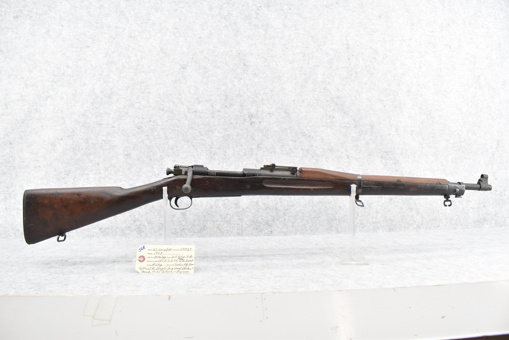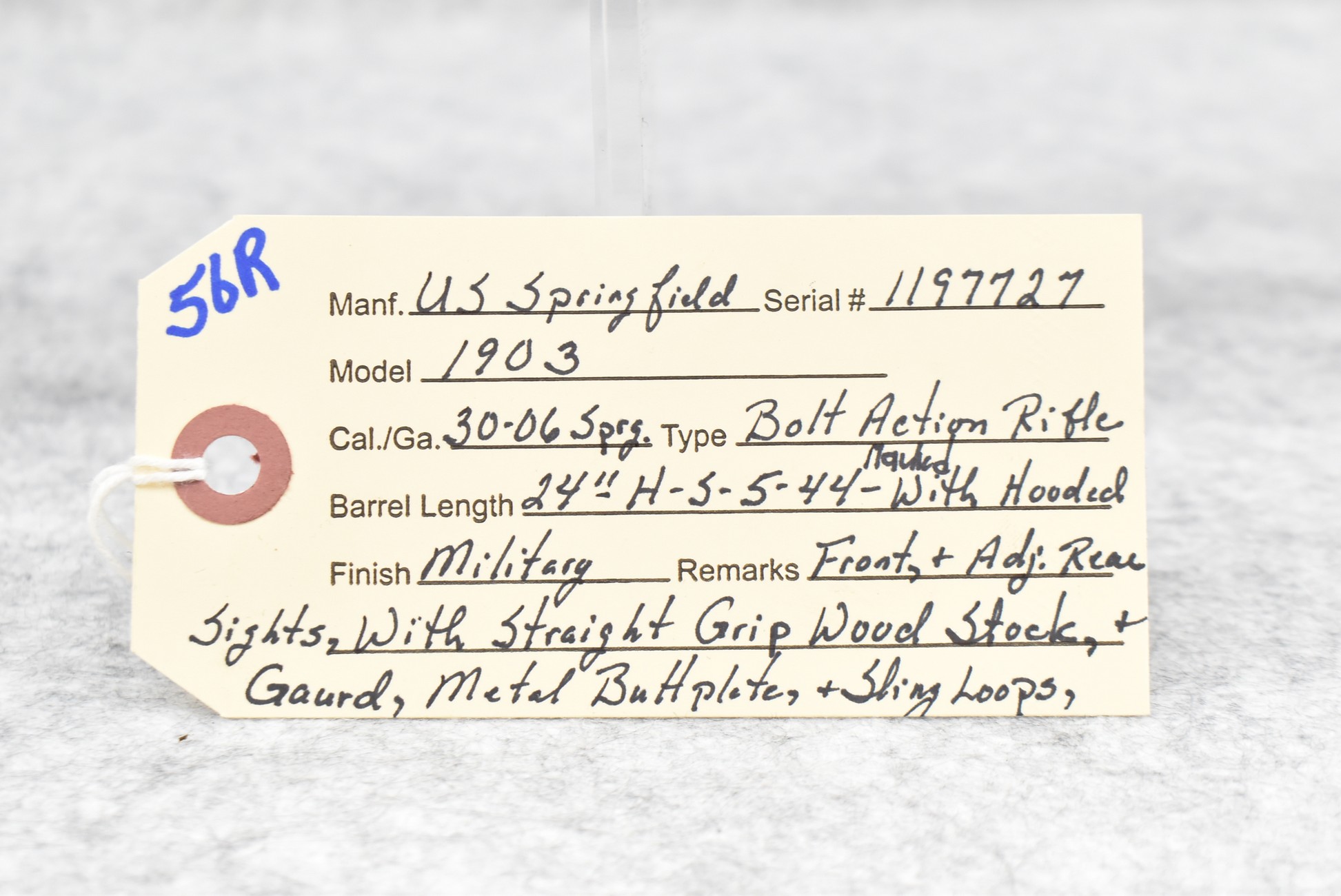 56R. U.S. Springfield – Mod. 1903 – 30-06 Sprg. Cal. Bolt Action Rifle – w/24” H-S-5-44 Marked Barrel w/Hooded Front and Adjustable Rear Sights – Military Finish – w/Straight Grip Wood Stocks w/Metal Butt Plate – w/Sling Loops