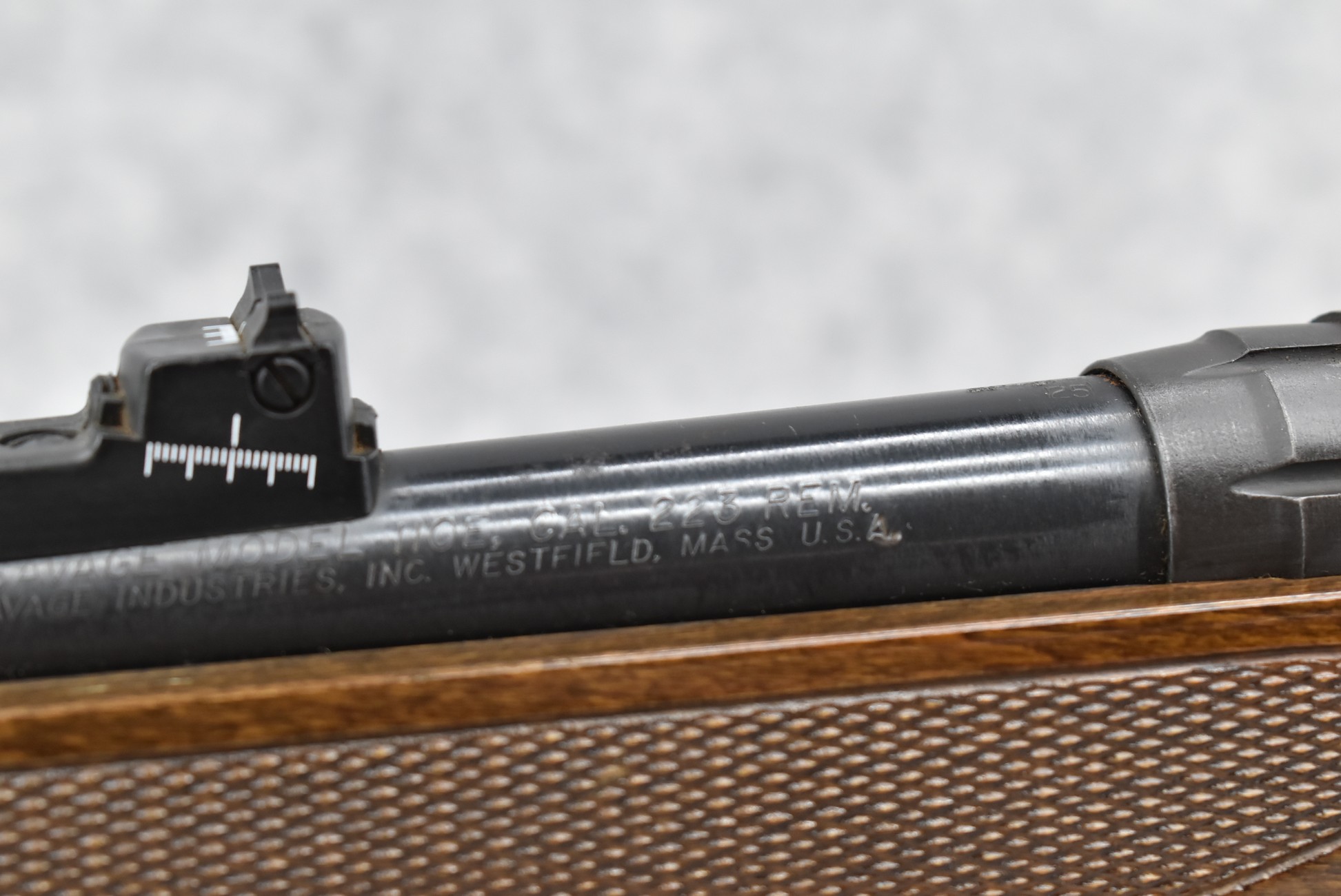 574R. Savage – Mod. 110 E – 223 Rem. Cal. Bolt Action Rifle – w/22” Barrel w/Ramp Blade Front & Adj. Rear Notch Sights – Blued Finish – w/Checkered Pistol Grip Wood Stock w/Factory Butt Pad – w/Bases