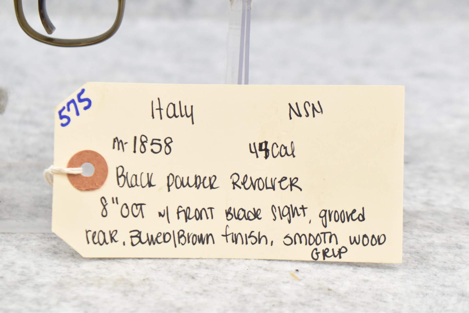 575. Italian – Mod. 1858 – 44 Cal. Black Powder Revolver – w/8” Octagon Barrel w/Front Blade Sight & Groove Rear Sight – Blued/Brown Finish – w/Smooth Wood Grip