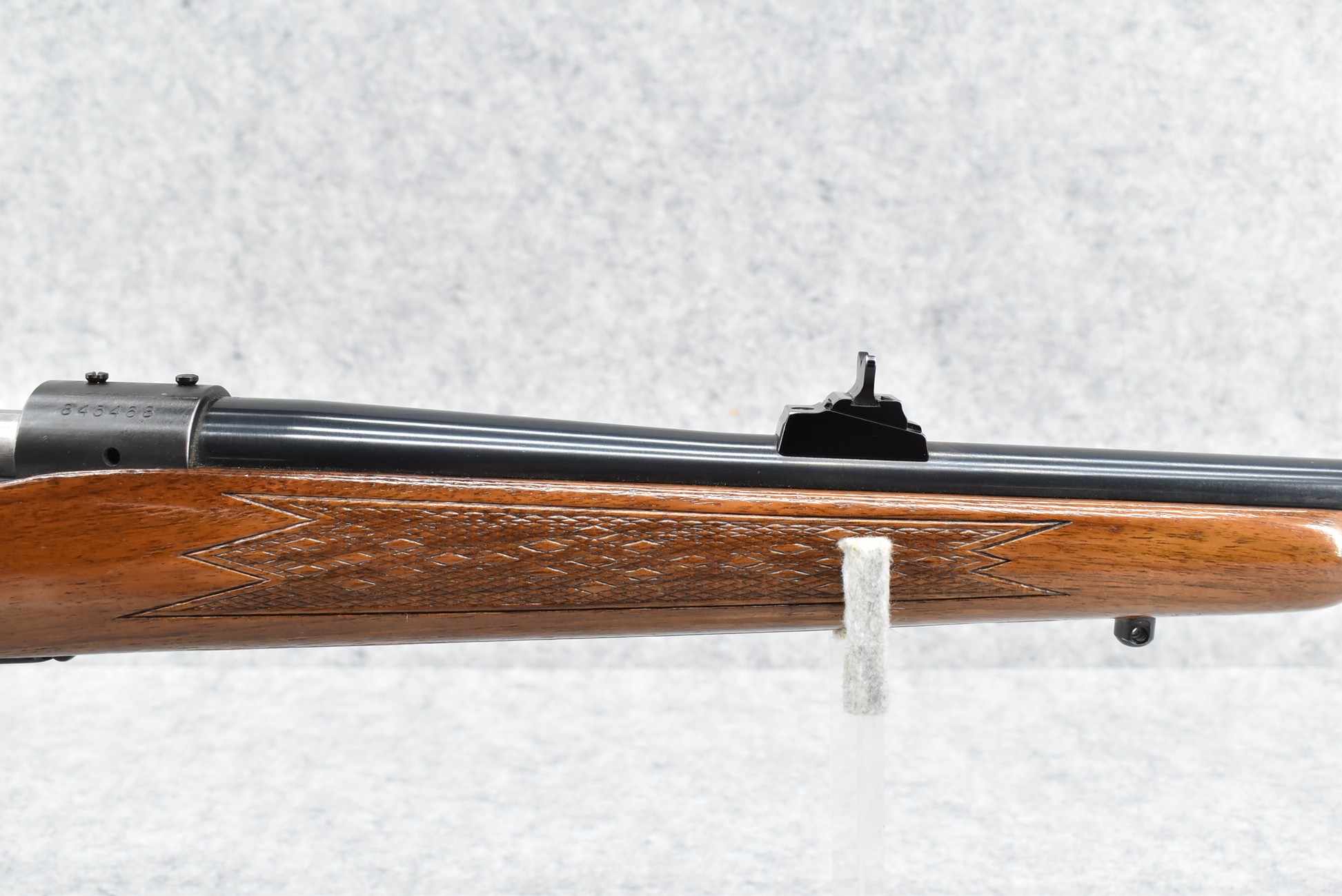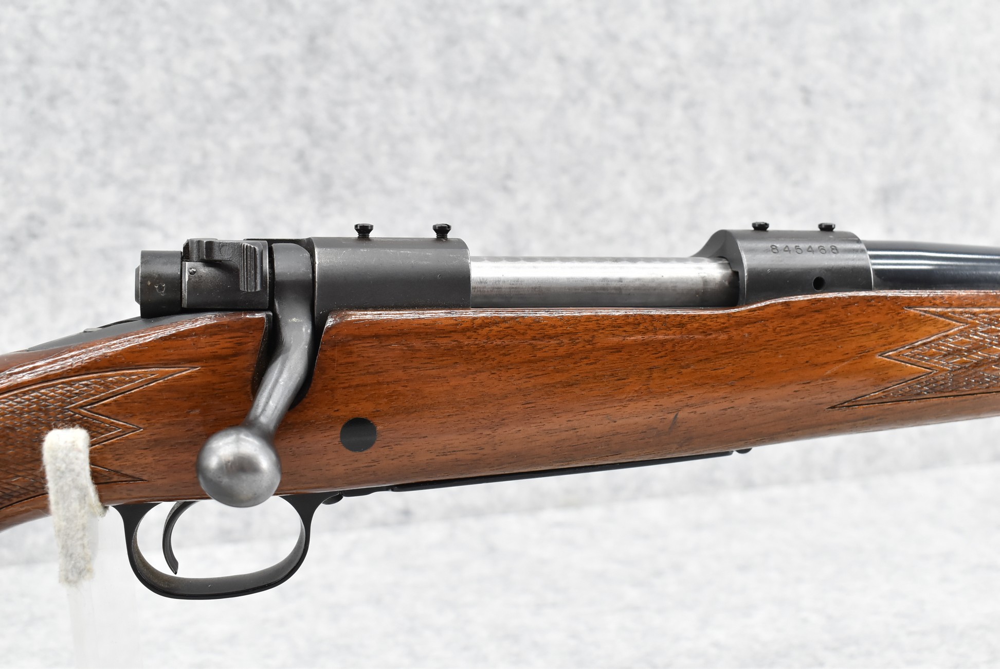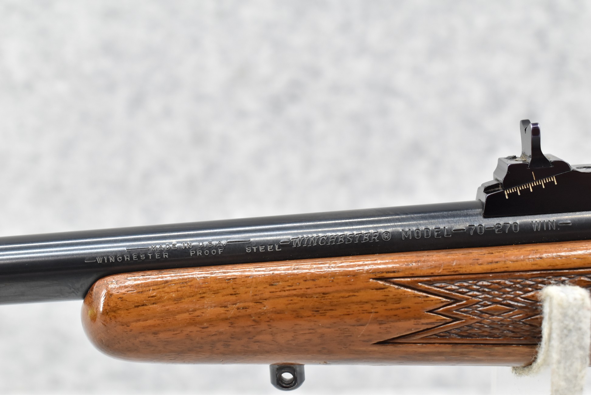 575R. Winchester – Mod. 70 Standard – 270 Win. Cal. Bolt Action Rifle – w/22” Barrel w/Ramp Blade Front & Adj. Rear Notch Sights w/Johnson Automatics Muzzle Brake – Blued Finish – w/Factory Checkered Capped Pistol Grip Wood Stock w/Raised Cheek Piece w/White Line Butt Pad – Mfg. 1966