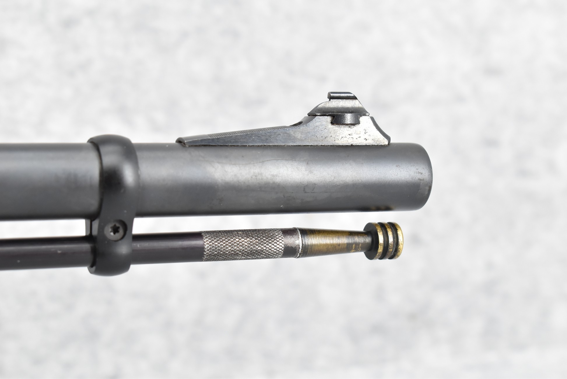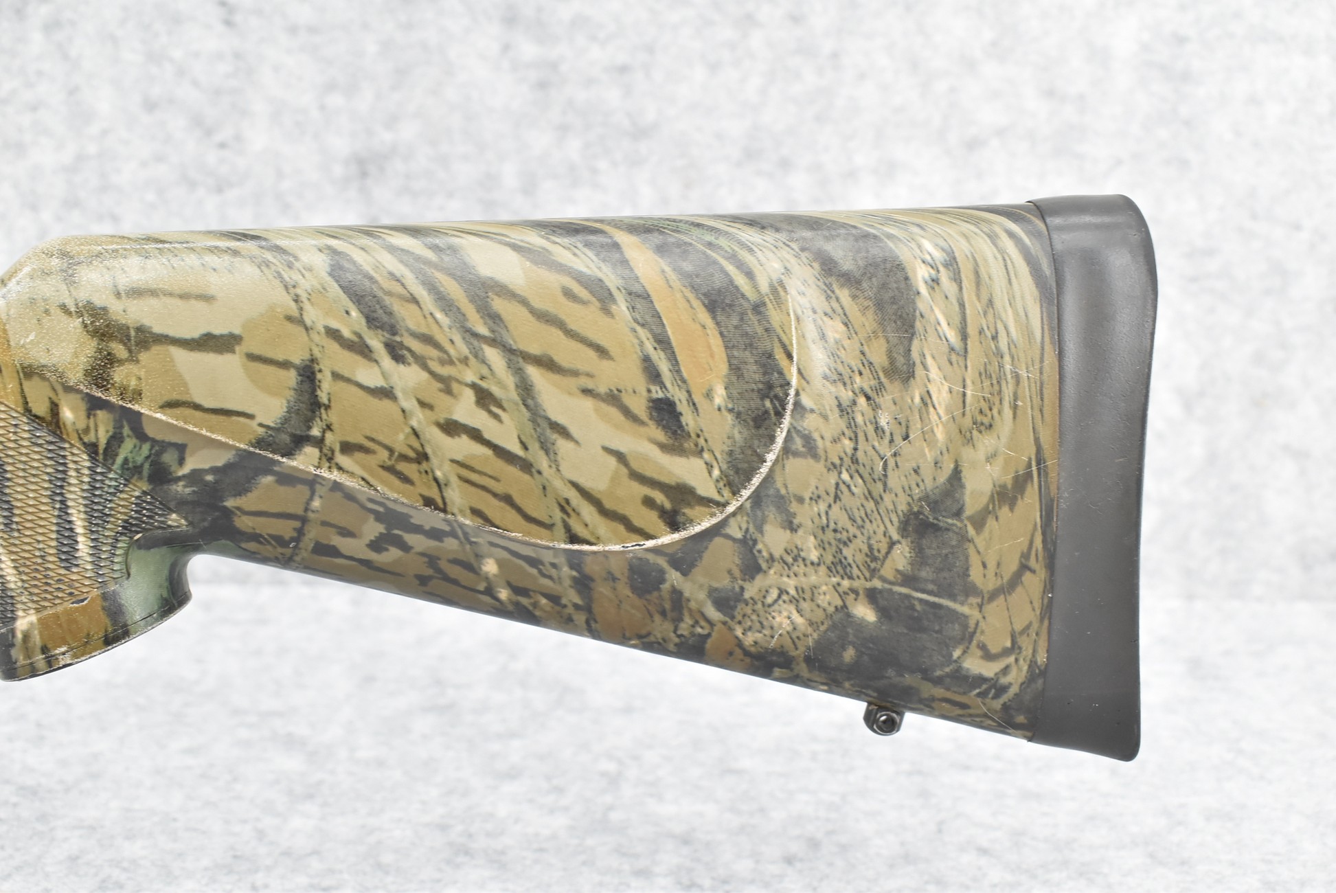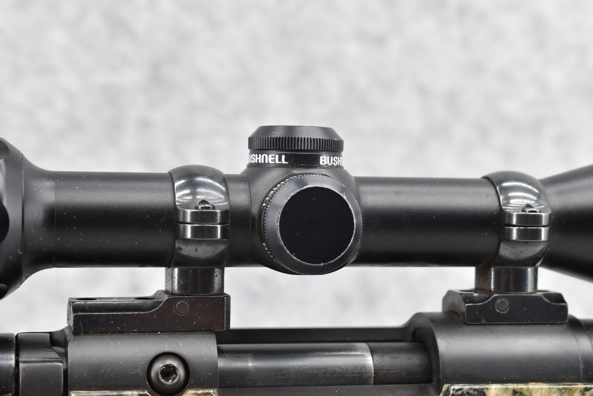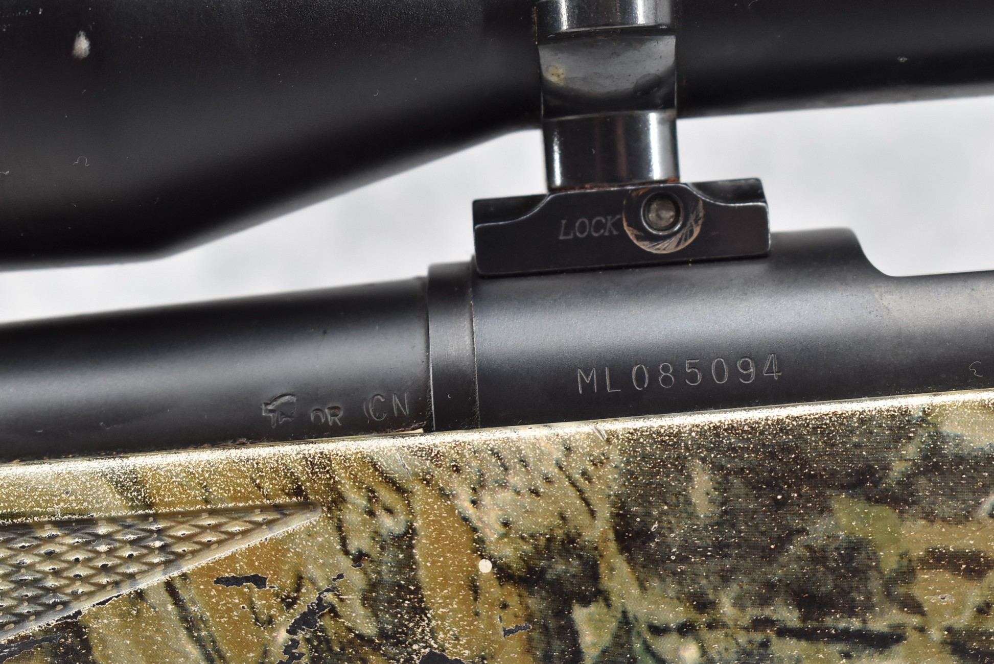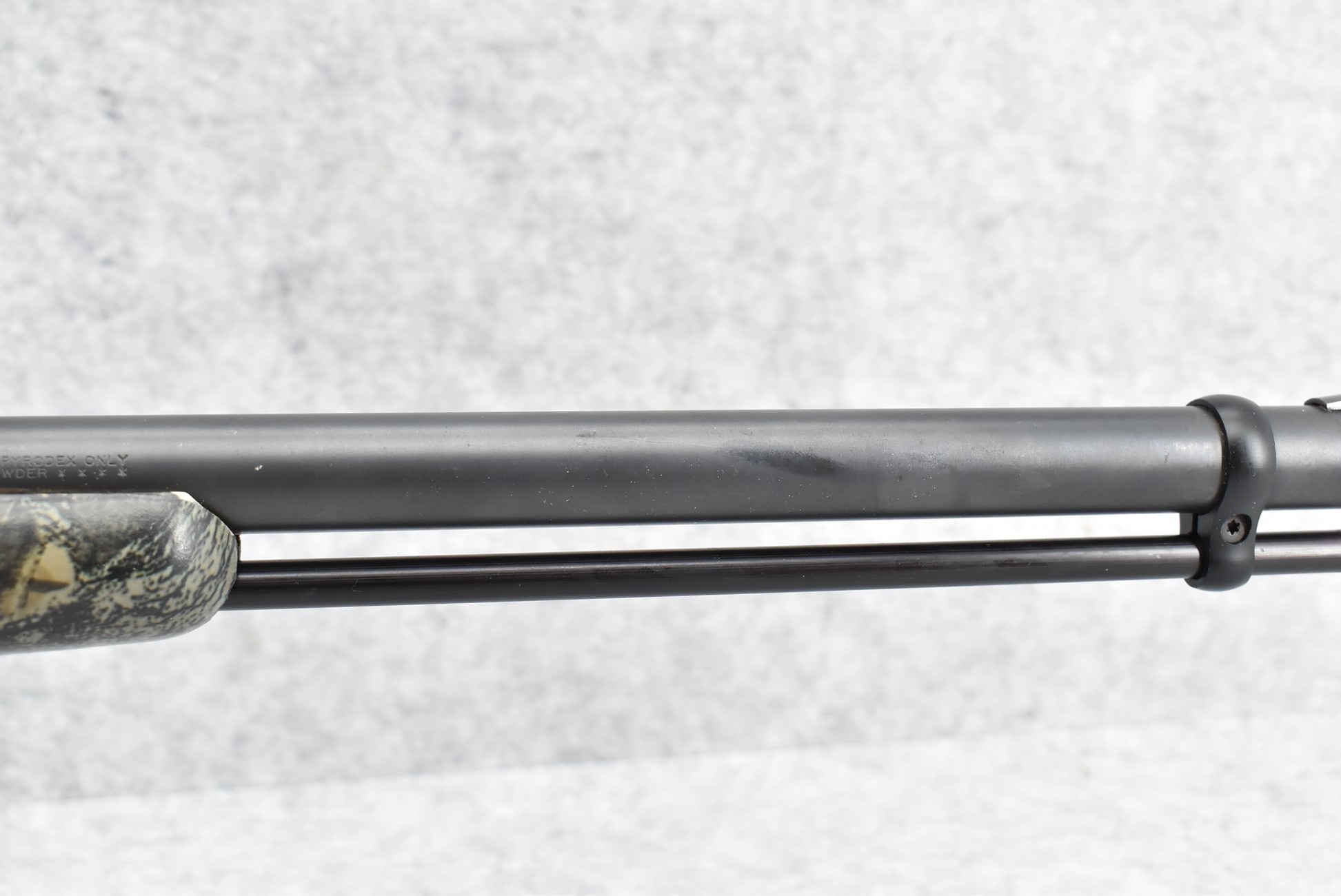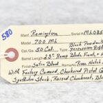 580. Remington – Mod. 700 ML – 50 Cal. Black Powder Bolt Action Percussion Rifle – w/23” Barrel w/Ramp Blade Front & Adj. Rear notch Sights – Satin Blued Finish – w/Factory Camoed Checkered Pistol Grip Synthetic Stock w/Factory Butt Pad – w/Ram Rod – w/Bushnell 3-9x40mm Scope & Mounts