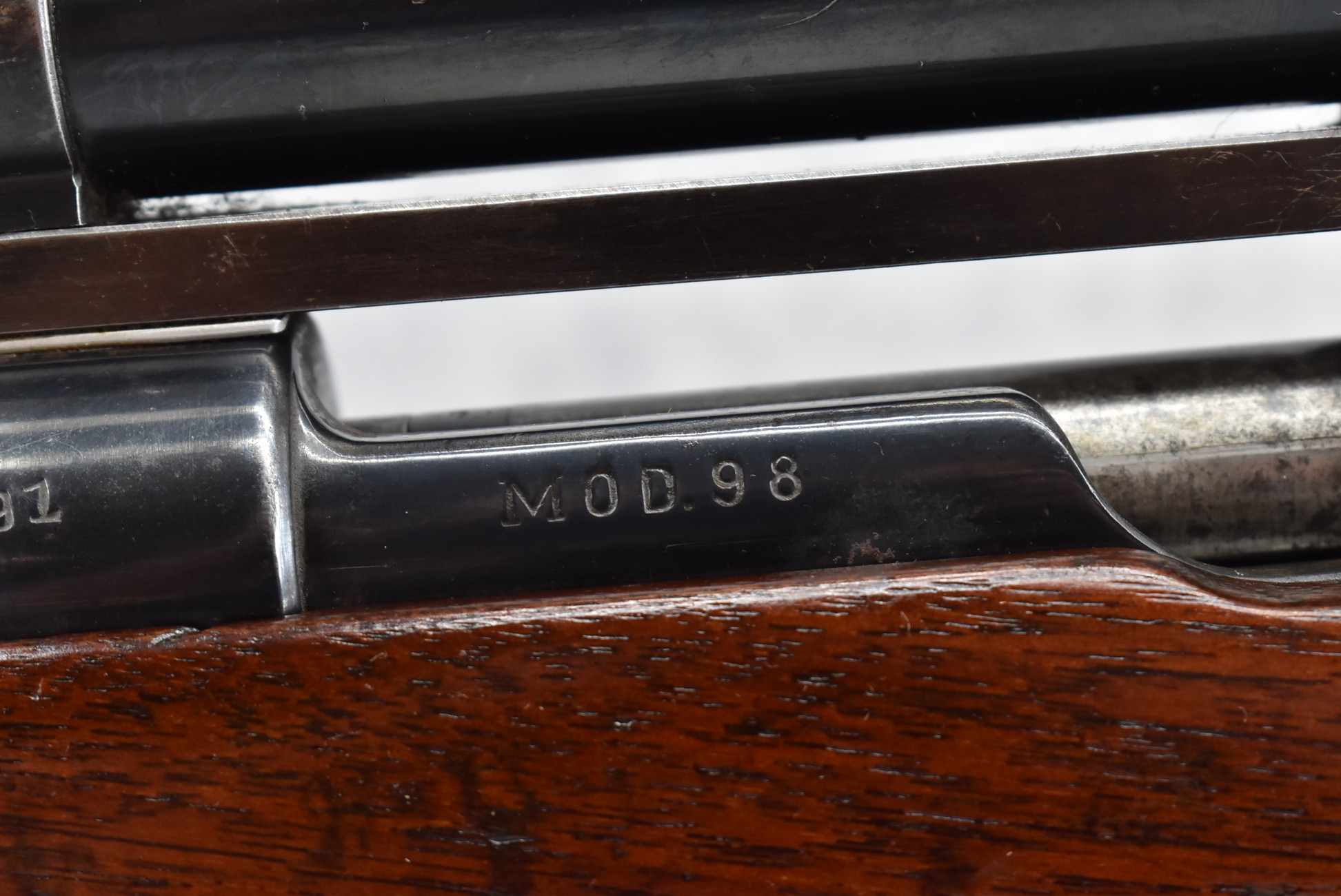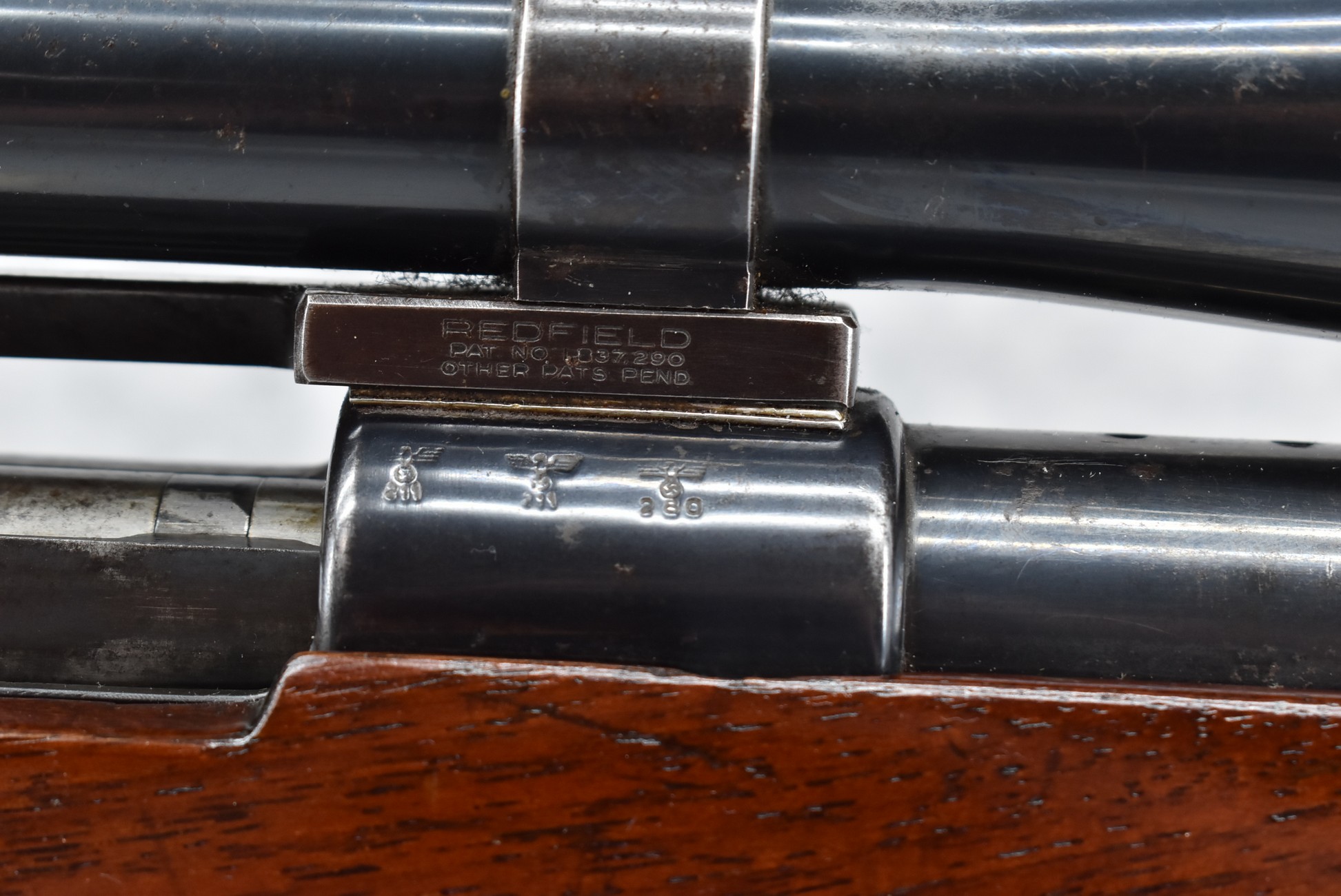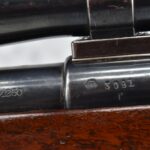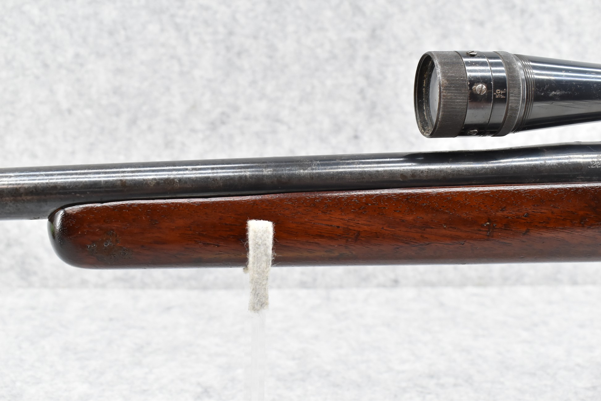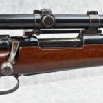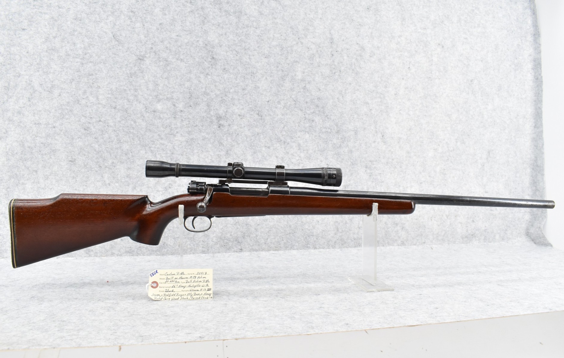582R. Custom Rifle – Built on Mauser Mod. 98 Action – 22-250 Rem. Cal. Bolt Action Rifle – w/26” Heavy Barrel – Blued Finish – w/Target Pistol Grip Wood Stock w/No Slip Rubber Butt Plate – w/Weaver K-10 Scope – w/Redfield Rings & Mounting Bases