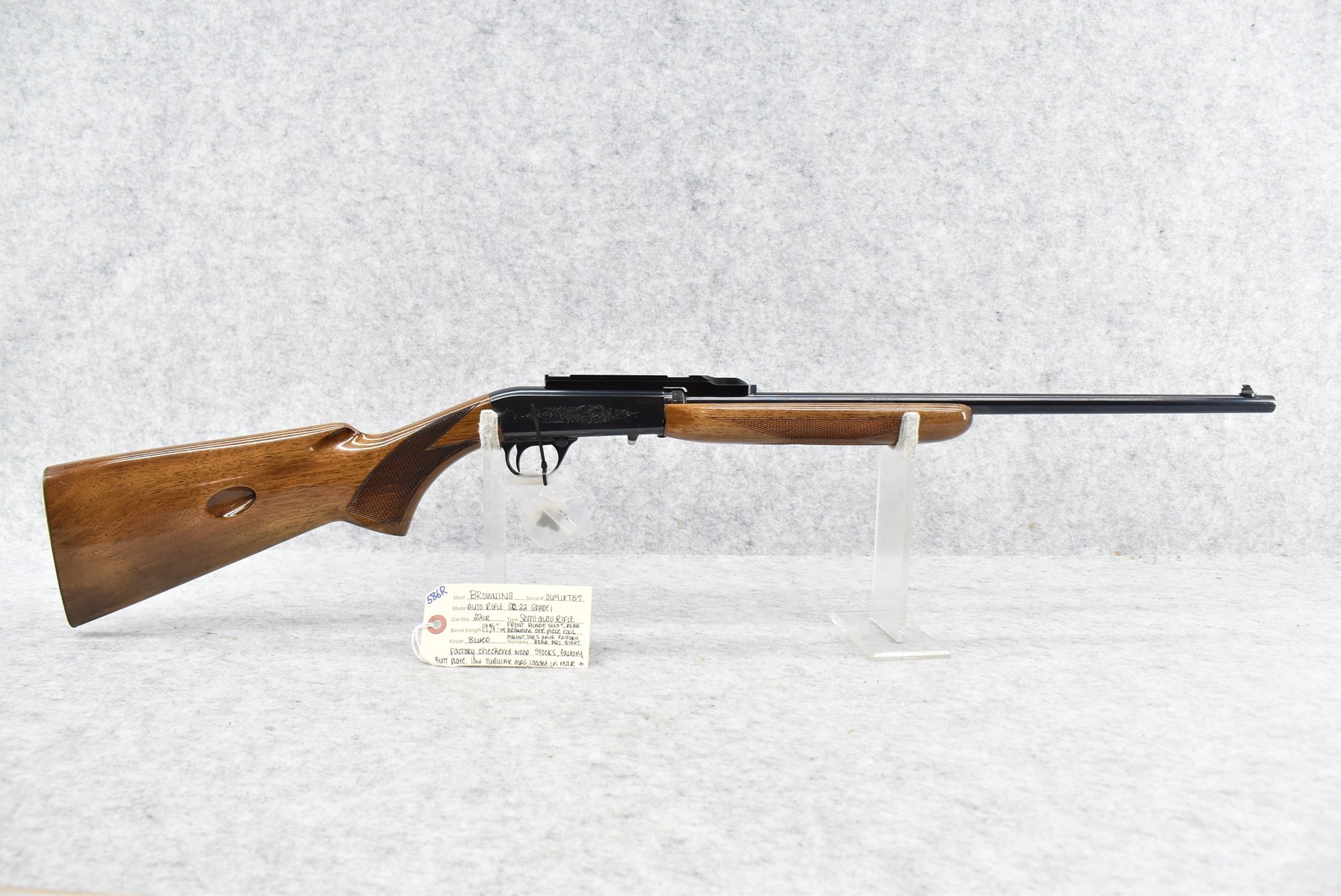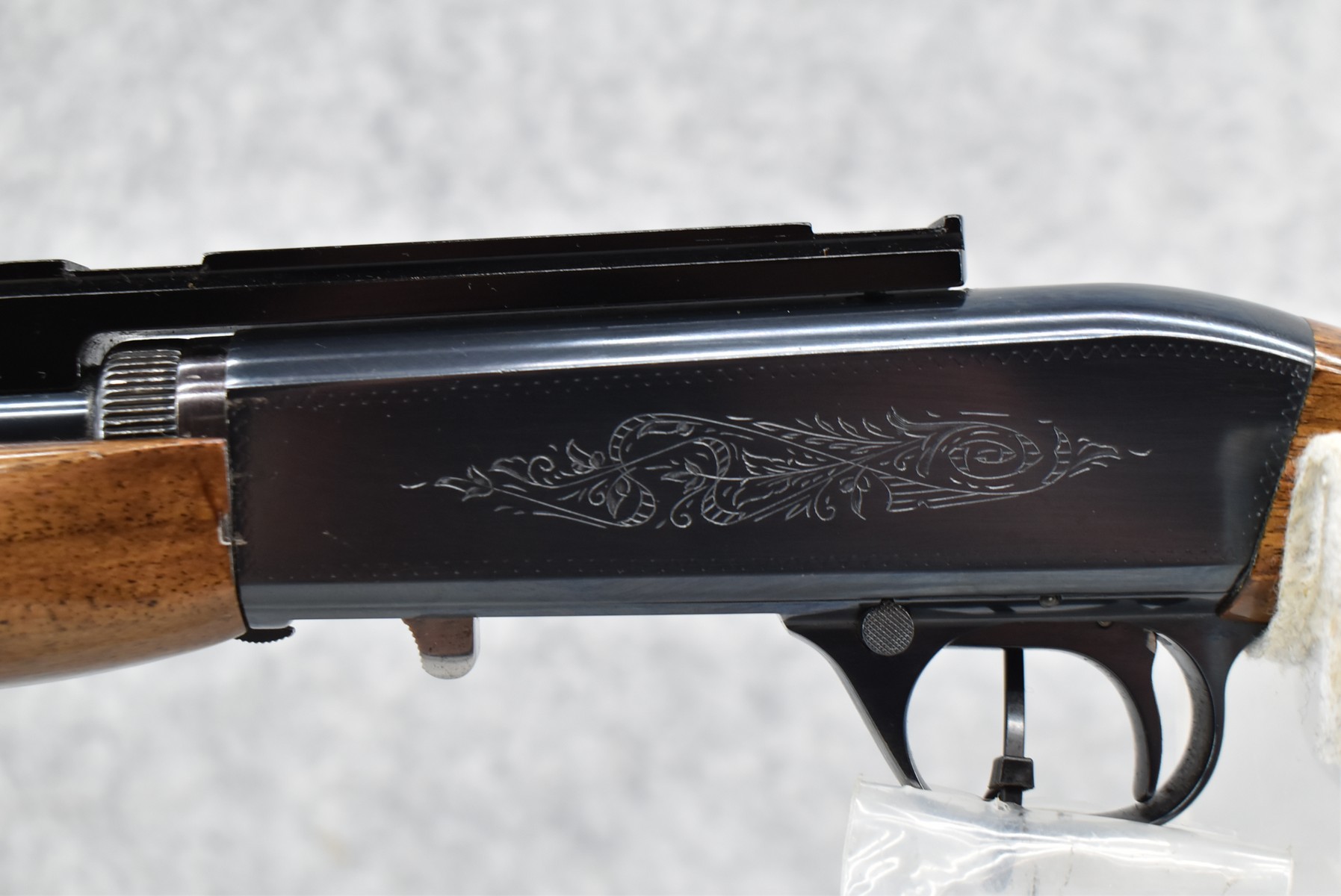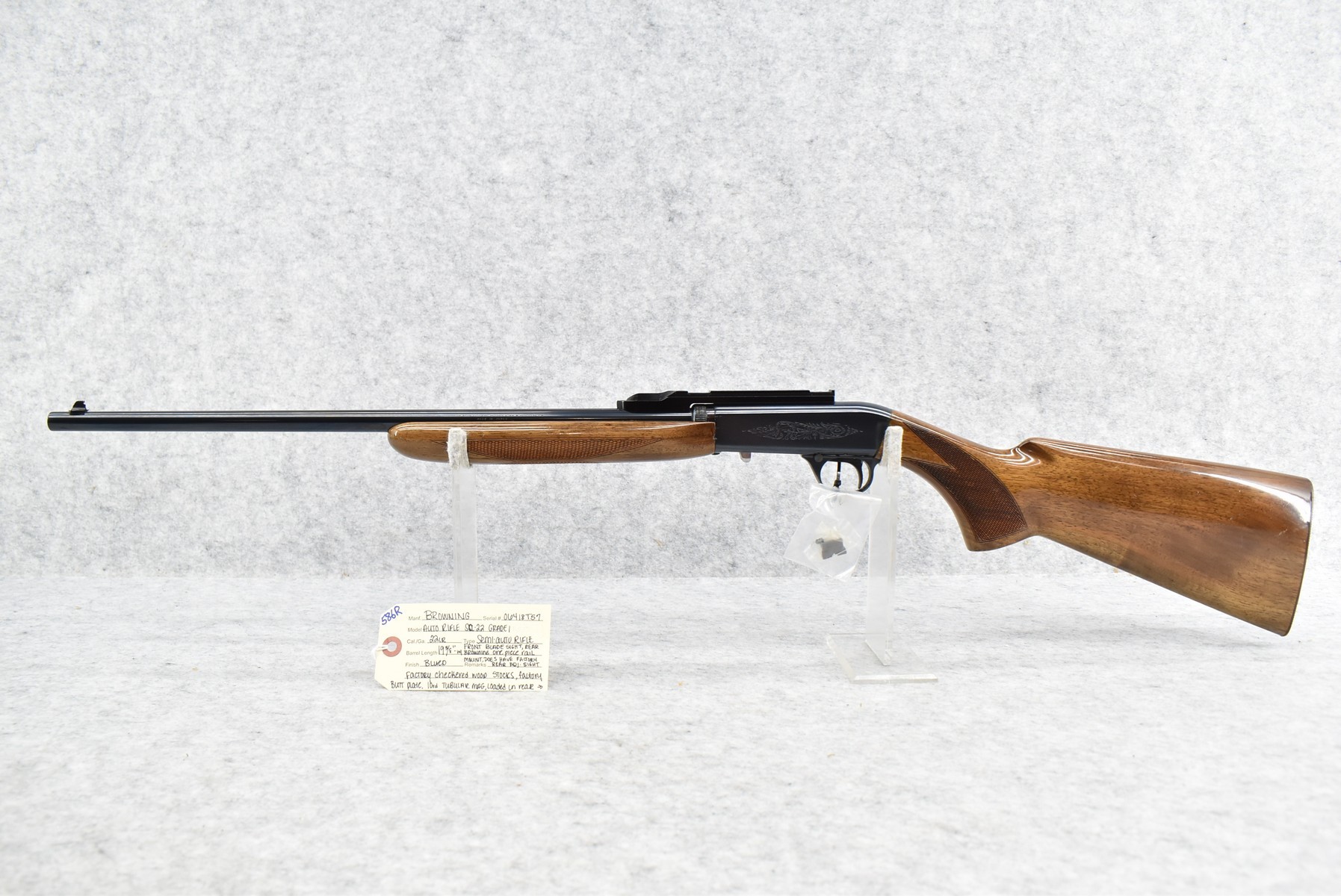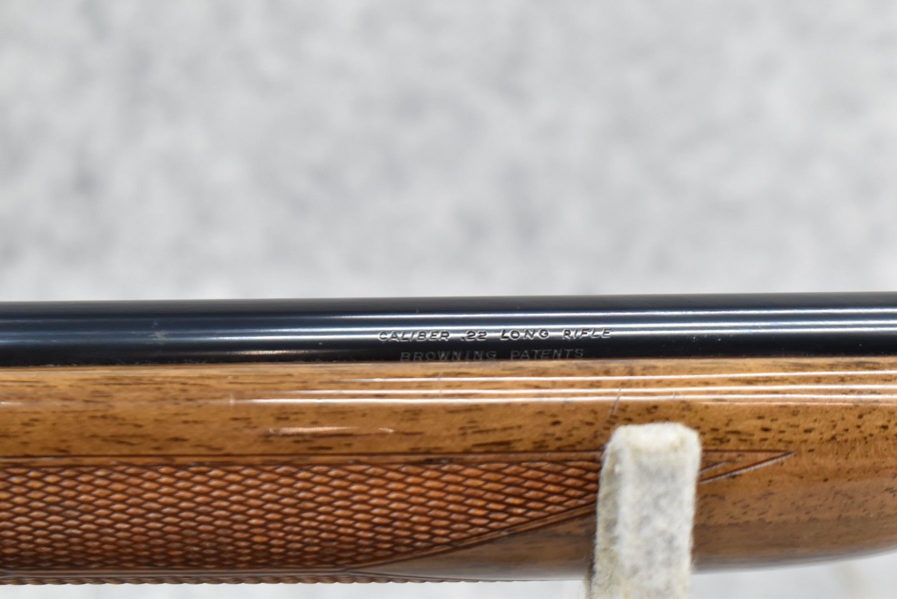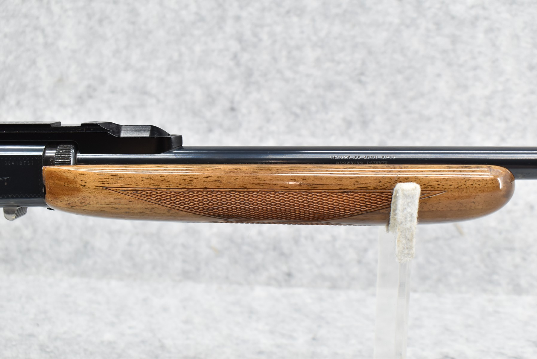 586R. Browning – Mod. Auto Rifle SA-22 Grade 1 – 22LR Cal. Semi-Auto Rifle – w/19 3/8” Barrel w/Front Blade Sight & Factory Rear Adj. Sight (In Bag) – Blued Finish – w/Factory Checkered Wood Stocks w/Factory Butt Plate w/10Rd Tubular Mag Loaded in Rear of Butt Stock – w/Rear Browning 1pc. Rail Mount on Gun
