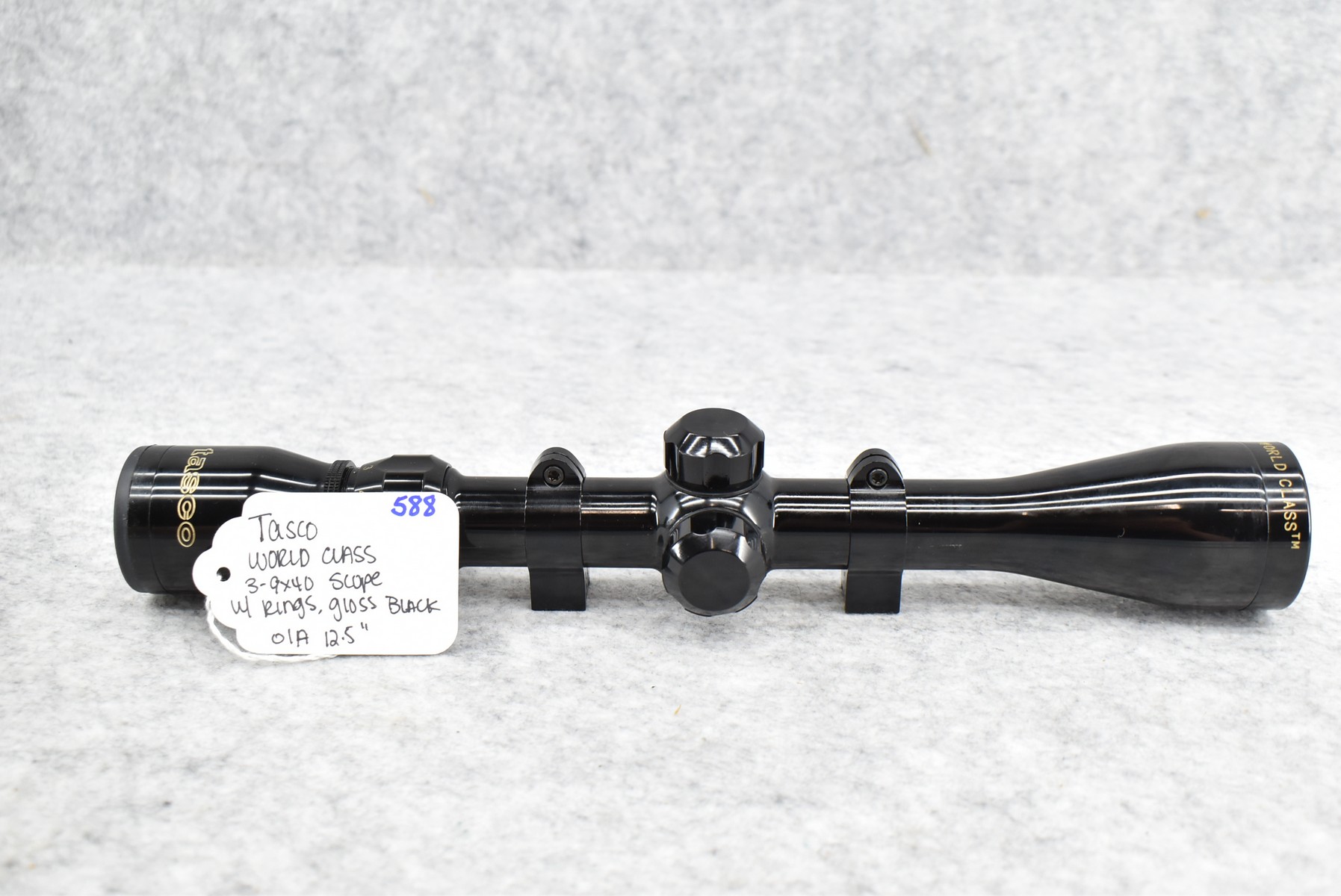 588. Tasco – World Class – 3-9×40 Scope – Gloss Black Finish – w/Rings