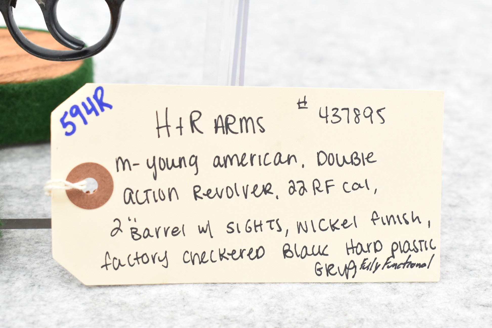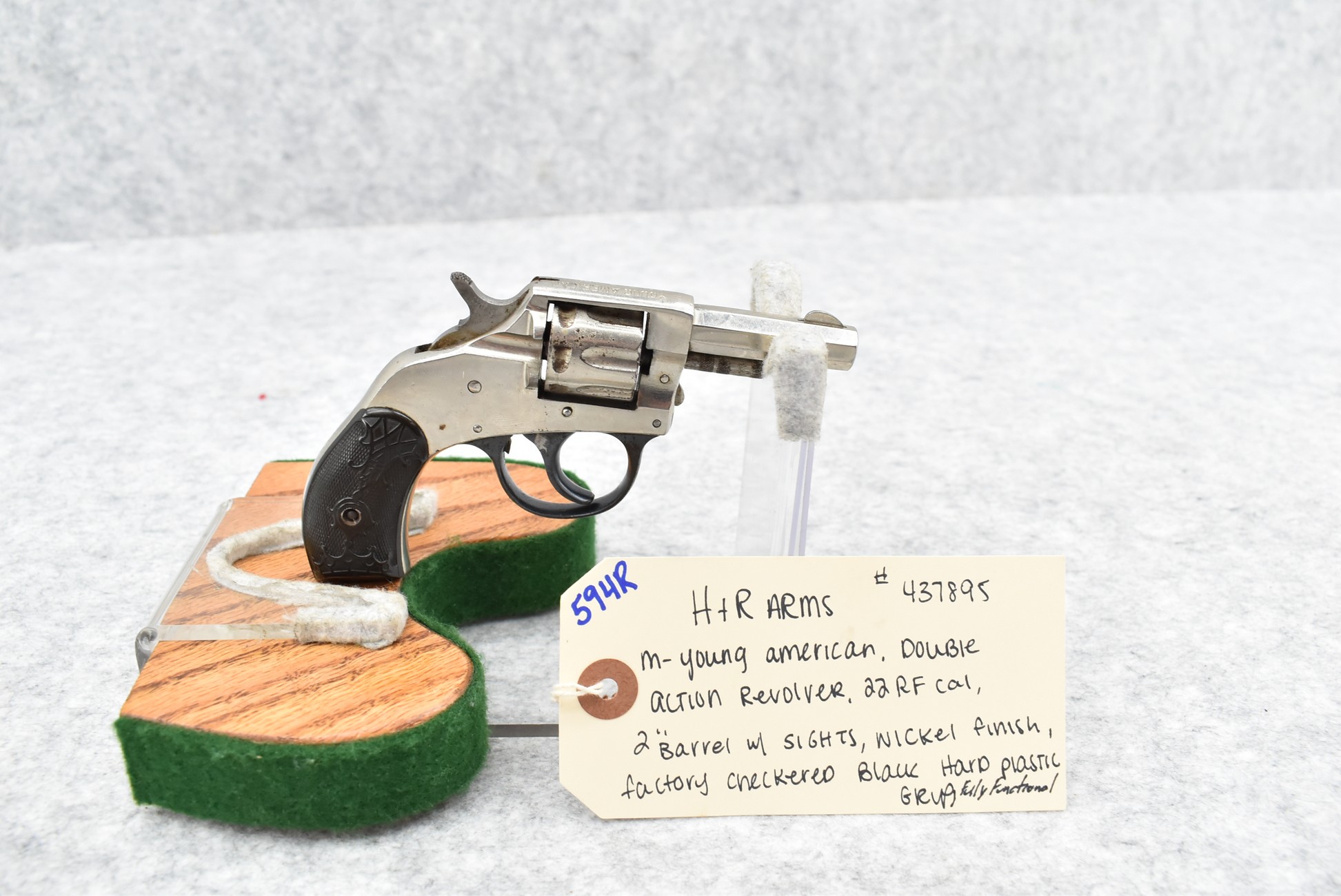 594R. H & R Arms – Mod. Young American – 22 Cal. Double Action Revolver – w/2” Barrel w/Sights – Nickel Finish – w/Factory Checkered Black Hard Plastic Grip – Fully Functional