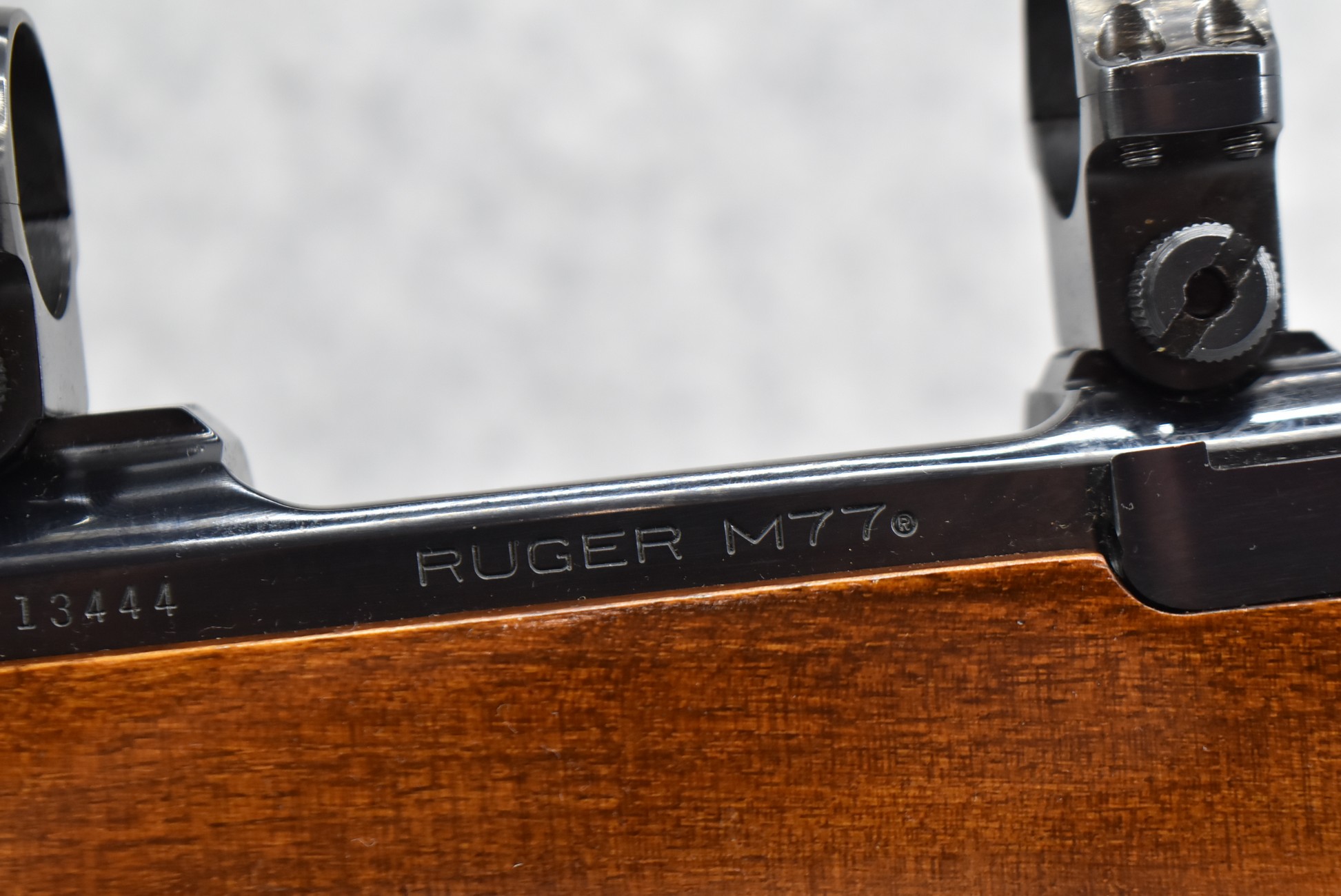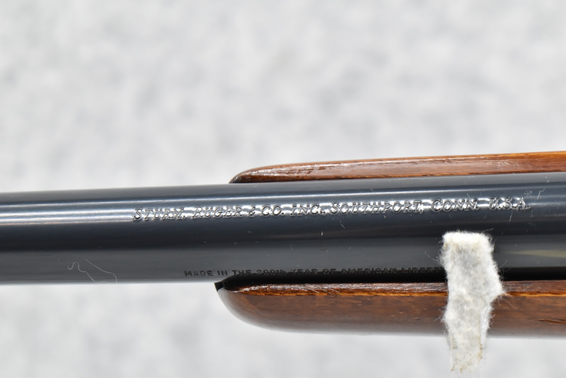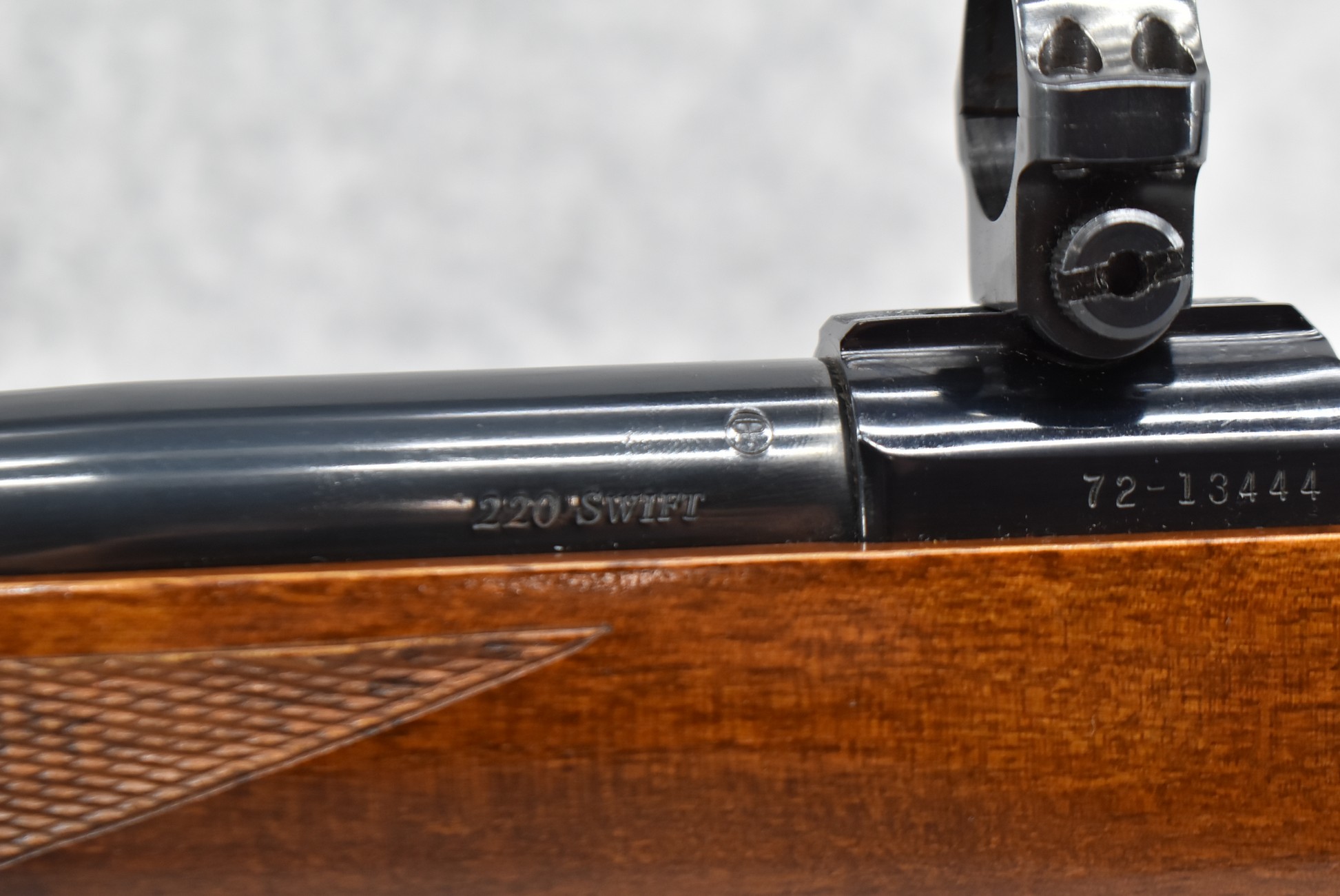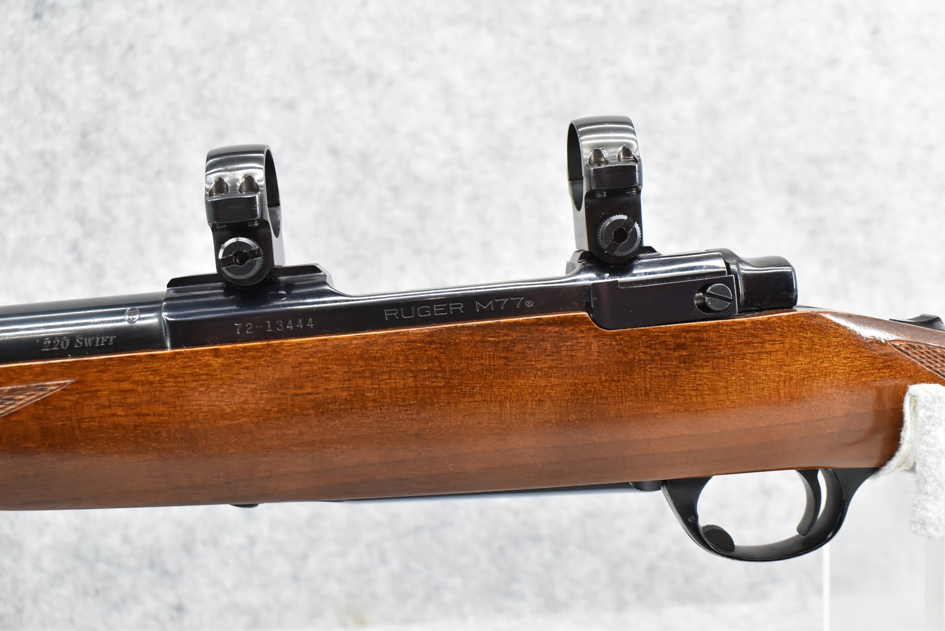 59R. Ruger – Mod. 77-V (Varmint) Tang Safety Pre-Warning – “Made in the 200th Year of American Liberty” – 220 Swift Cal. Bolt Action Rifle – w/26” Heavy Barrel – Blued Finish – w/Checkered Capped Pistol Grip Wood Stock w/Factory Recoil Pad – w/Factory Ruger Rings