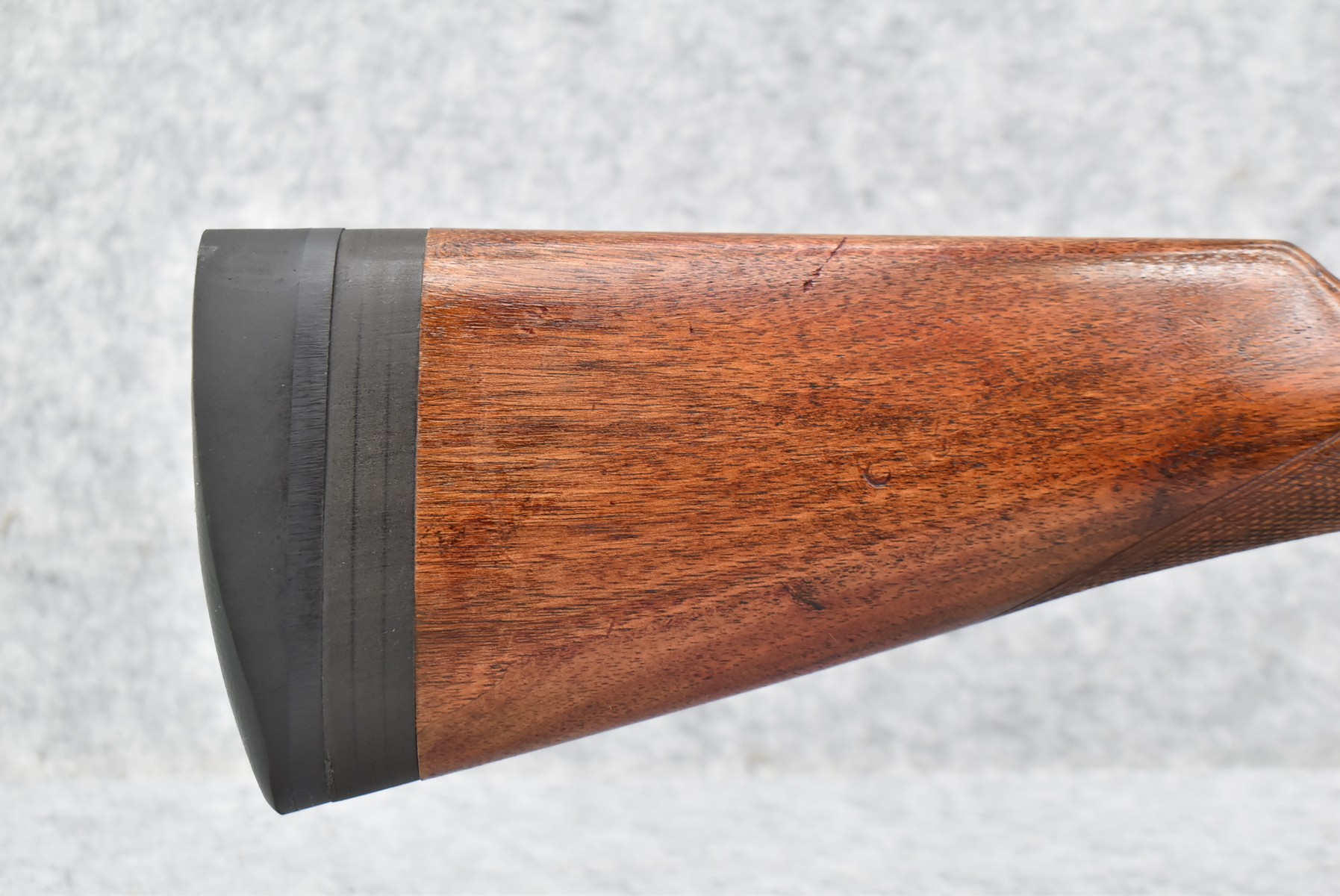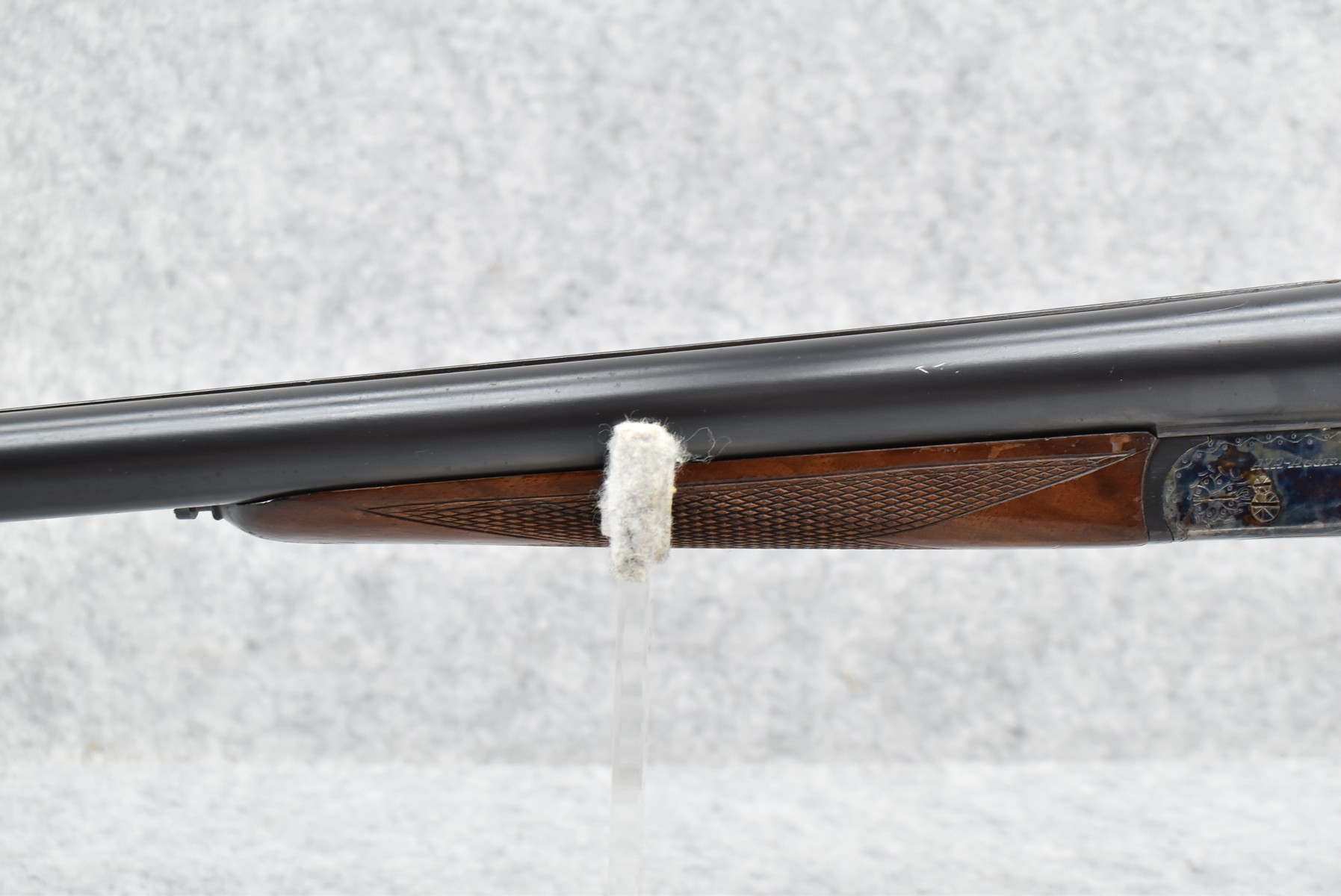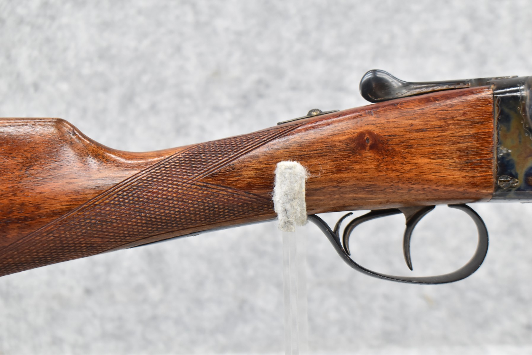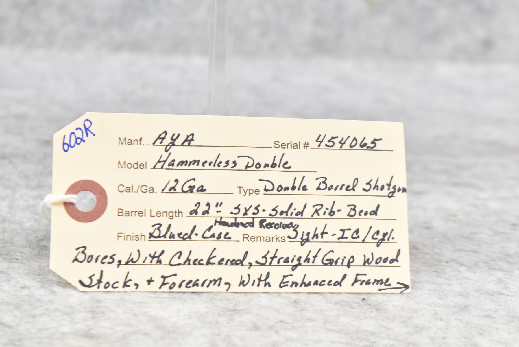 602R. AYA – Mod. Hammerless Double – 12ga. Double Barrel Shotgun – w/22” IC/Cyl. Choked, Solid Rib Barrels w/Bead Sight – Blued Finish w/Case Hardened Receiver – w/Enhanced Frame on All Sides – w/Checkered Straight Grip Wood Stocks w/Kick-Eze Butt Pad