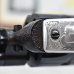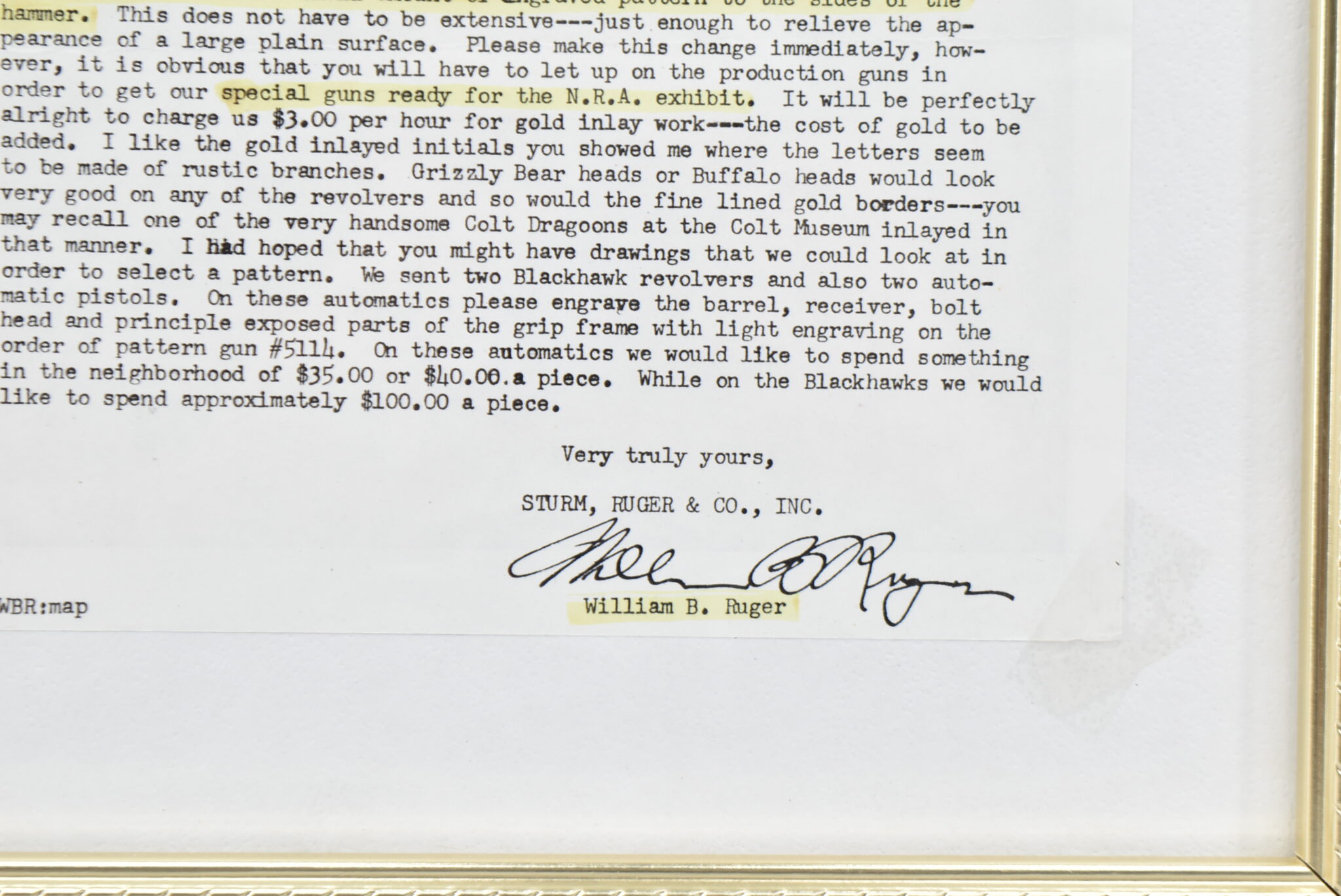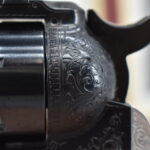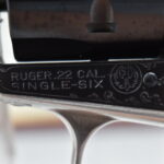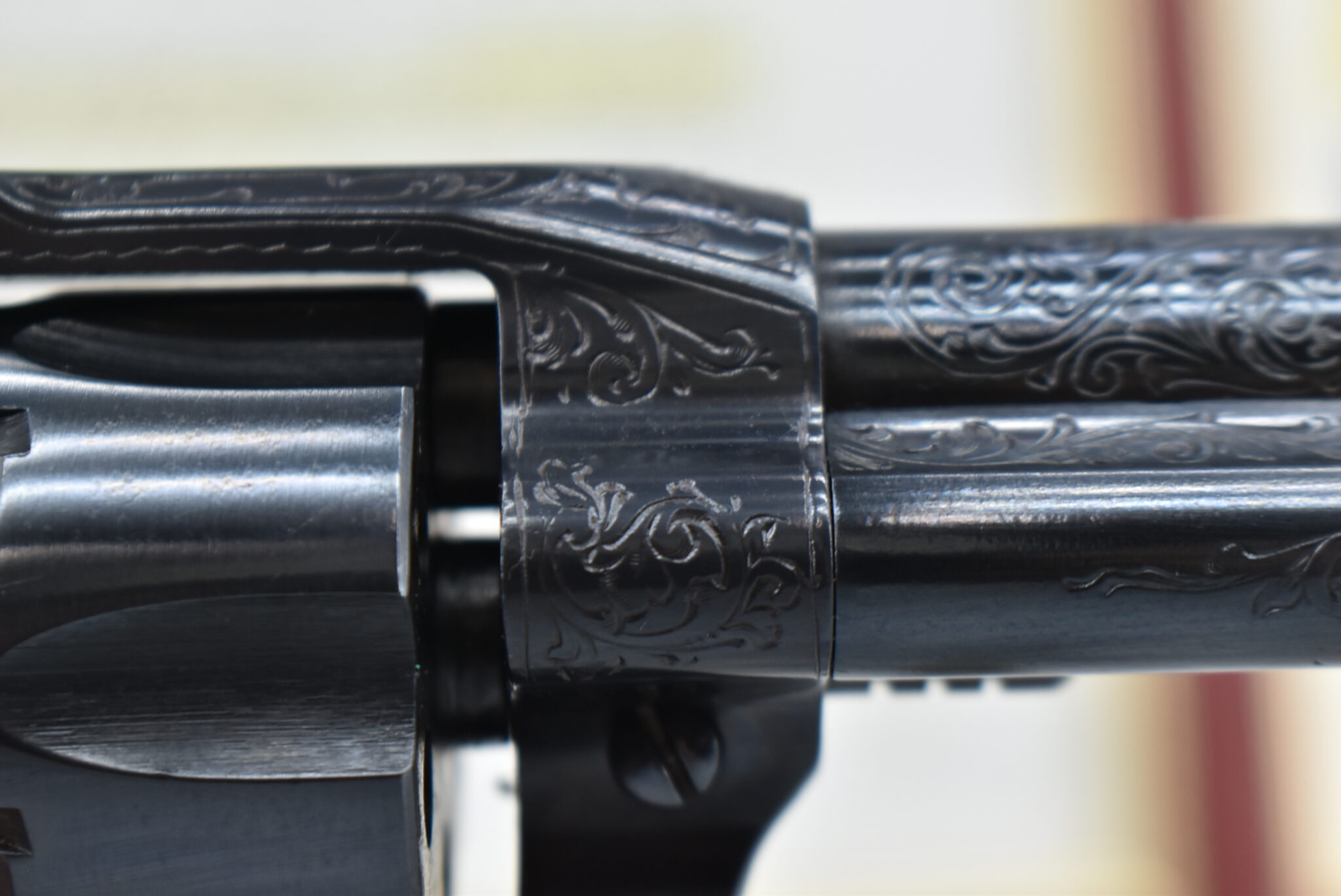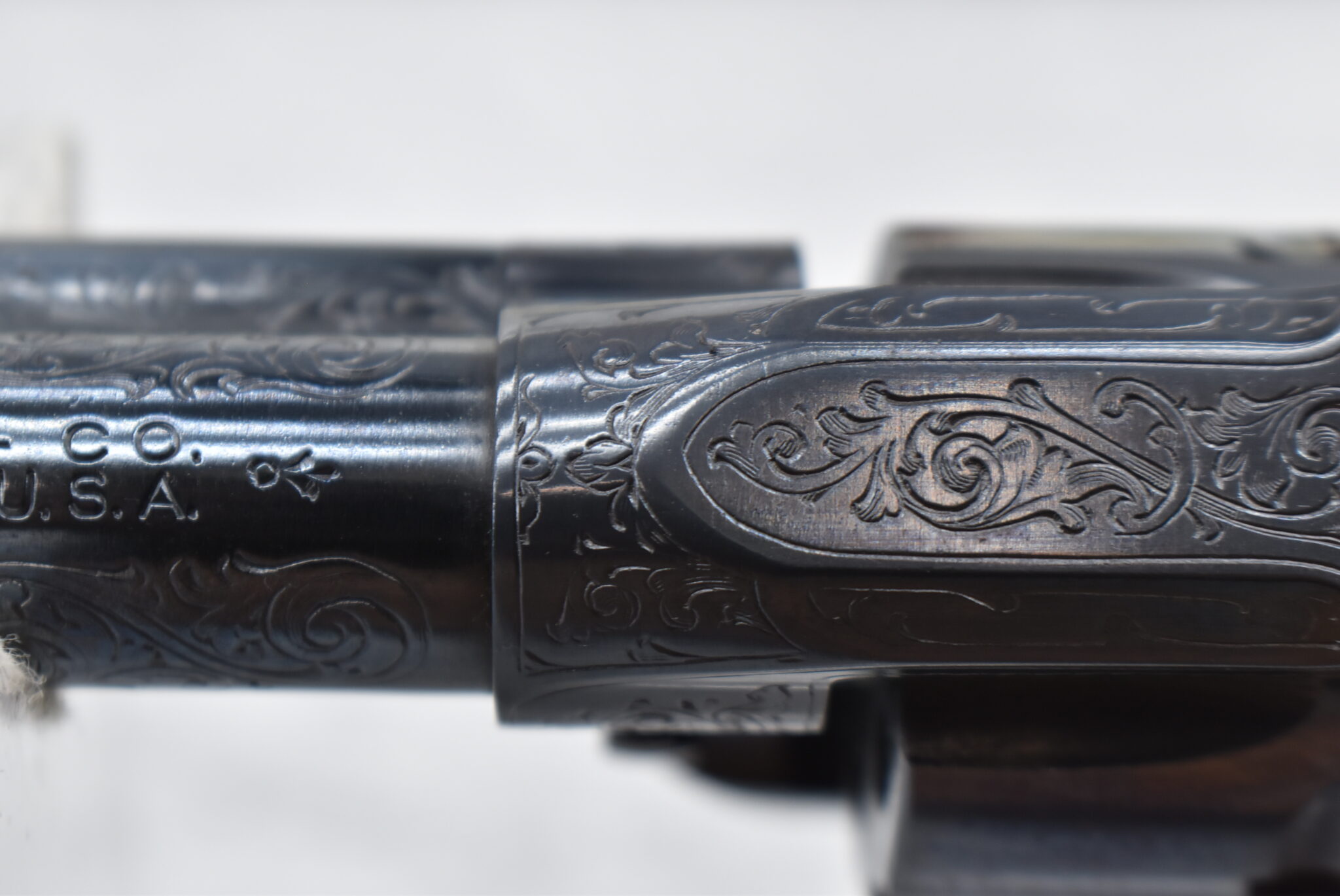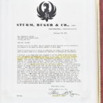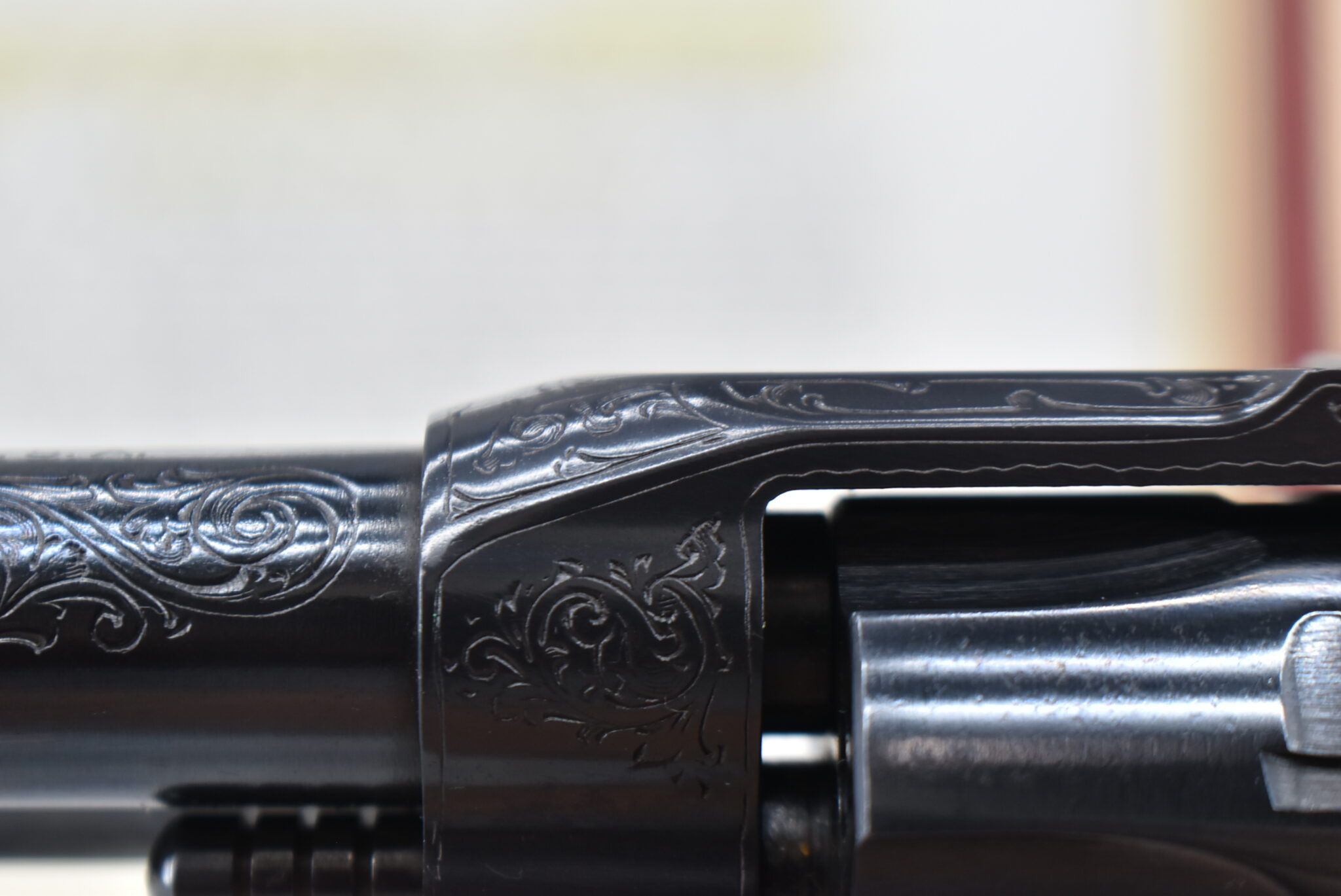 60R. Rare! The Holy Grail for Ruger Collectors, A Factory Cased Ruger Single Six 3-Screw Factory “Spanish” Engraved “Pattern” Single Action Revolver – 22 LR Cal. – w/5 ½” Barrel w/Round Blade Front & Notch Rear Sights – Blued Finish w/Silver Trigger & Grip Strap – In 1954, Ruger Exported 20 Consecutive Single Six Revolvers to Spain to be Engraved to Patterns Determined by Sturm Ruger & Co. of the 20 Shipped, Only Two Were Designated “Pattern Guns” & They Were Serial #5114 & This Gun Serial #5113, Making This One of Only Two Manufactured Engraved “Pattern Guns” of the Total Made Spanish Engraved Revolvers – These Two “Pattern” Revolvers Lead to the Beginning of the Ruger Factory Engraved Single Sixes – Accompanying This Rare Gun is a Sturm Ruger & Co. Receipt Dated 2-15-56 Showing One Ruger Single Six Revolver Serial #5113 (This Gun) Shipped to Charles Jerred for an Engraving Sample for Him to Use as a Pattern for His 238 Guns He Personally Engraved for Sturm Ruger & Co. – Also Including A Copy of a Letter Dated Feb. 23, 1956 to Charles Jerred From William Ruger Stating “I am ready to go along with your proposal to do the sides of the frame somewhat like the pattern Gun #5113 and add $500 to our cost” & Altos Stating This Gun (5113) Was Part of a Special Exhibit by Ruger for the NRA Exhibit in 1956, As Well As a Copy of an Original Advertisement for These Factory Engraved Ruger Single Sixes & A Copy of an Article From the 1989 N.R.A. Annual Meeting & Exhibits Showing This Gun Was Displayed as Part of an R.C.A. Award Winning Display – In Conclusion, We Don’t Know How You Can Get a More Rare Ruger Single Six Factory Engraved Gun Than This One! With the History This Gun Carries With it. In a way, This Gun Was the Forerunner of All Engraved Ruger Firearms
