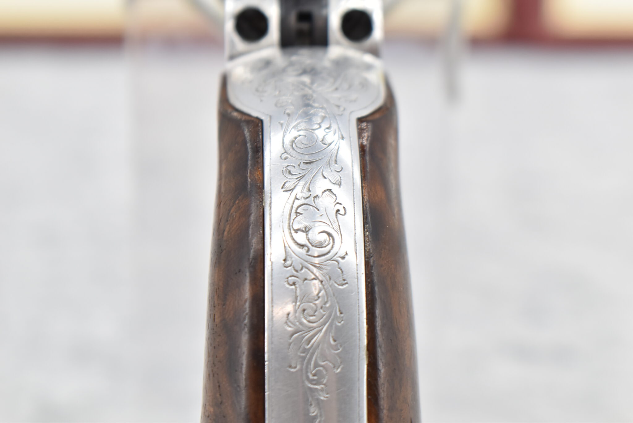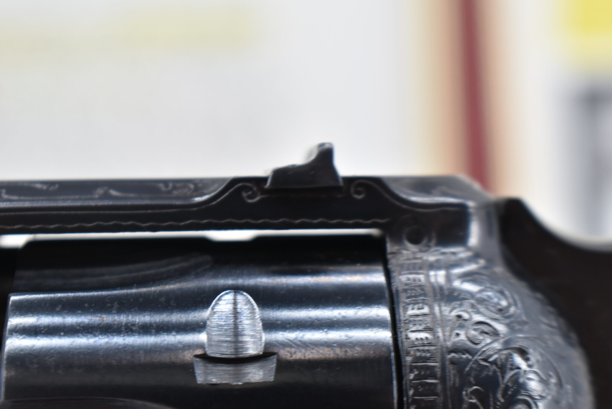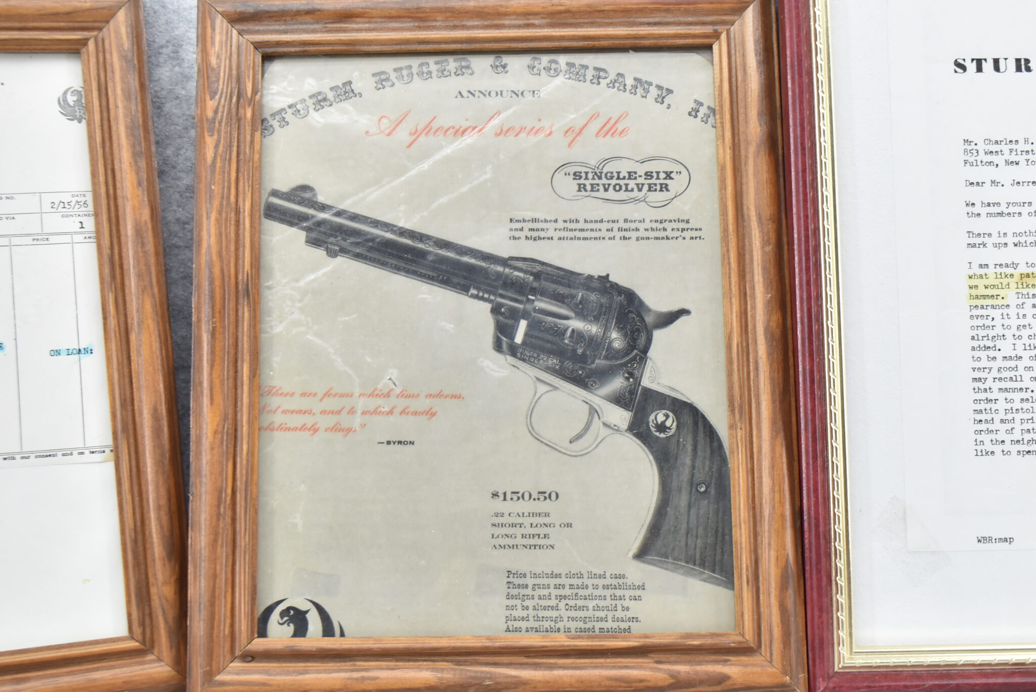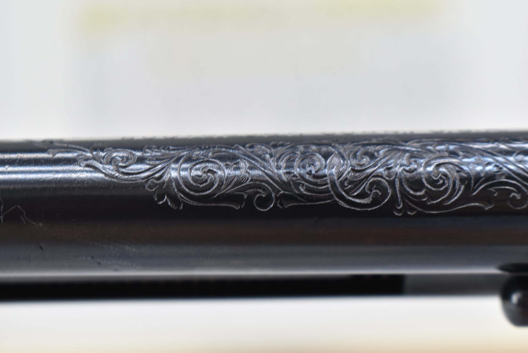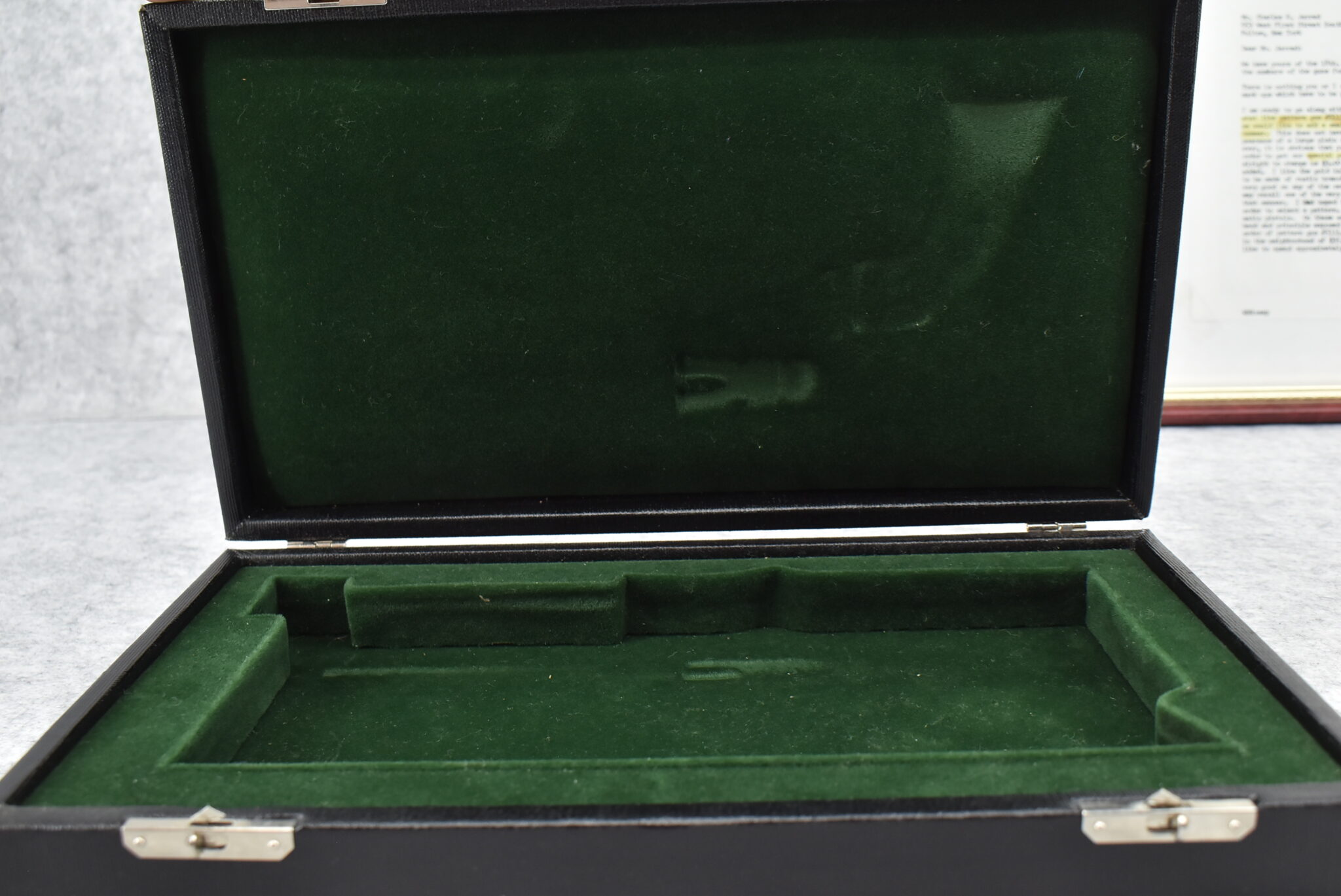 60R. Rare! The Holy Grail for Ruger Collectors, A Factory Cased Ruger Single Six 3-Screw Factory “Spanish” Engraved “Pattern” Single Action Revolver – 22 LR Cal. – w/5 ½” Barrel w/Round Blade Front & Notch Rear Sights – Blued Finish w/Silver Trigger & Grip Strap – In 1954, Ruger Exported 20 Consecutive Single Six Revolvers to Spain to be Engraved to Patterns Determined by Sturm Ruger & Co. of the 20 Shipped, Only Two Were Designated “Pattern Guns” & They Were Serial #5114 & This Gun Serial #5113, Making This One of Only Two Manufactured Engraved “Pattern Guns” of the Total Made Spanish Engraved Revolvers – These Two “Pattern” Revolvers Lead to the Beginning of the Ruger Factory Engraved Single Sixes – Accompanying This Rare Gun is a Sturm Ruger & Co. Receipt Dated 2-15-56 Showing One Ruger Single Six Revolver Serial #5113 (This Gun) Shipped to Charles Jerred for an Engraving Sample for Him to Use as a Pattern for His 238 Guns He Personally Engraved for Sturm Ruger & Co. – Also Including A Copy of a Letter Dated Feb. 23, 1956 to Charles Jerred From William Ruger Stating “I am ready to go along with your proposal to do the sides of the frame somewhat like the pattern Gun #5113 and add $500 to our cost” & Altos Stating This Gun (5113) Was Part of a Special Exhibit by Ruger for the NRA Exhibit in 1956, As Well As a Copy of an Original Advertisement for These Factory Engraved Ruger Single Sixes & A Copy of an Article From the 1989 N.R.A. Annual Meeting & Exhibits Showing This Gun Was Displayed as Part of an R.C.A. Award Winning Display – In Conclusion, We Don’t Know How You Can Get a More Rare Ruger Single Six Factory Engraved Gun Than This One! With the History This Gun Carries With it. In a way, This Gun Was the Forerunner of All Engraved Ruger Firearms