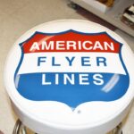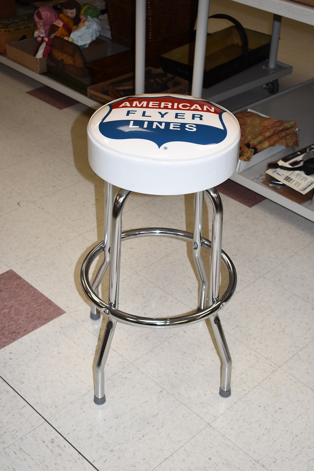 61. American Flyer Lines Red, White, and Blue Cushioned Bar Stool w/No Back