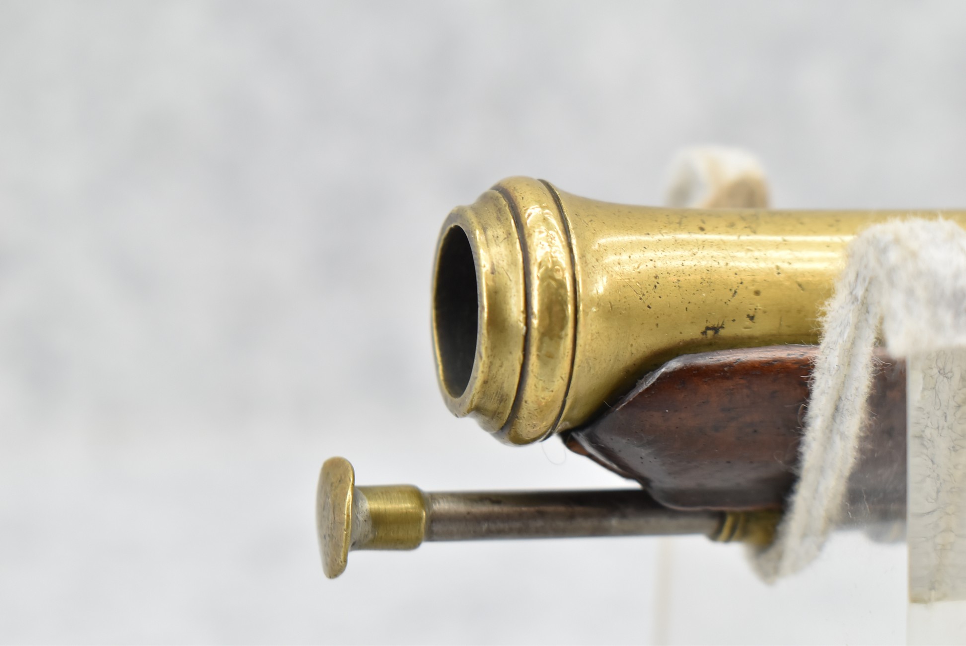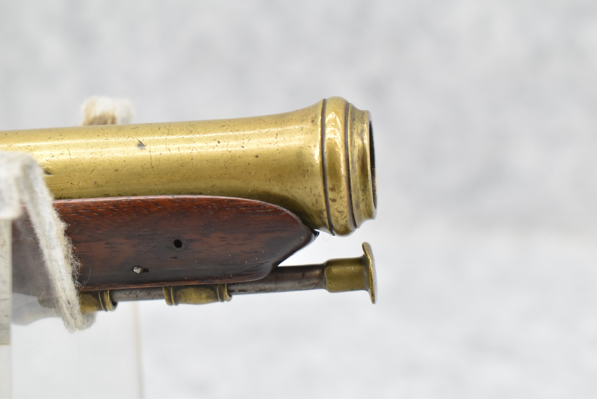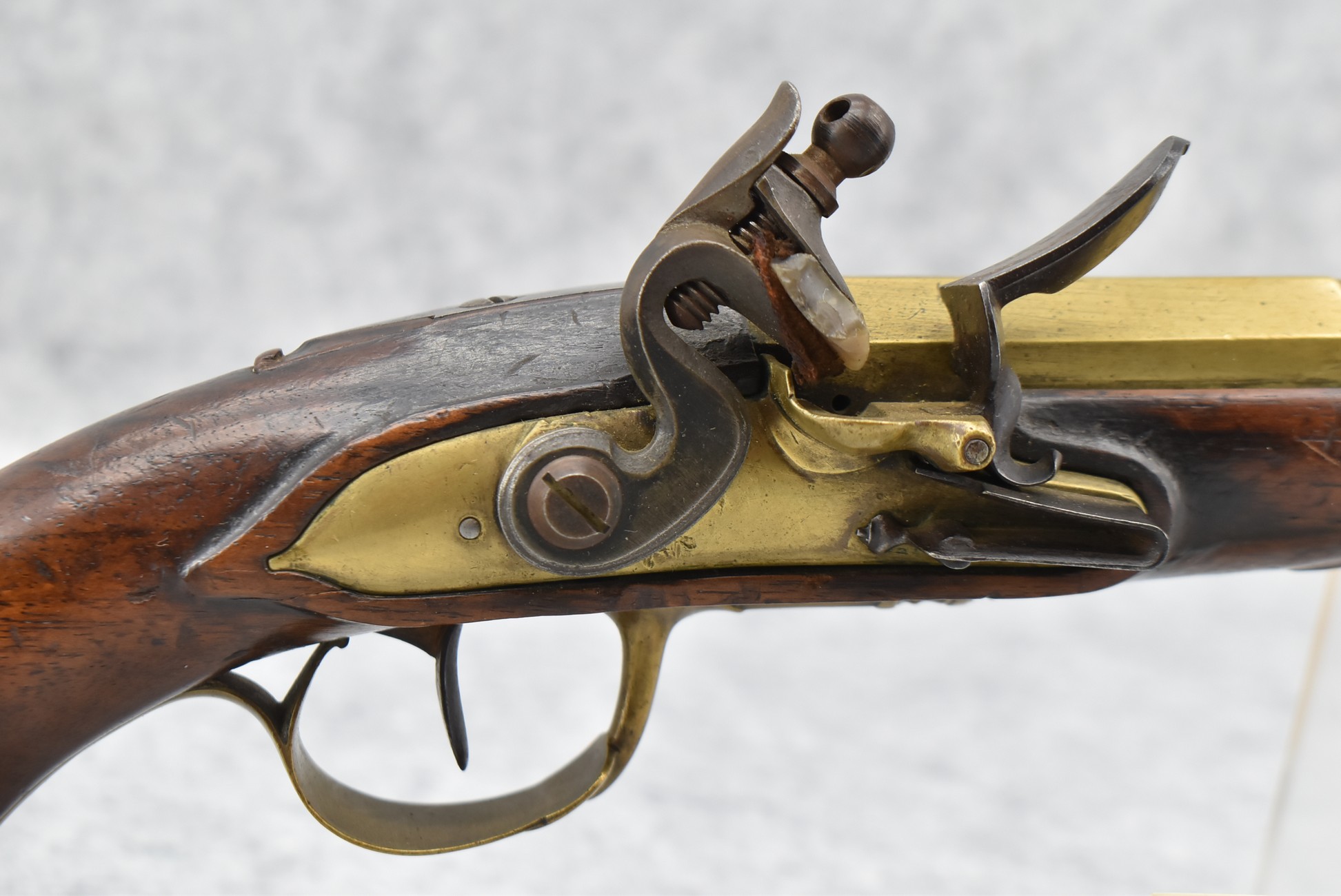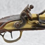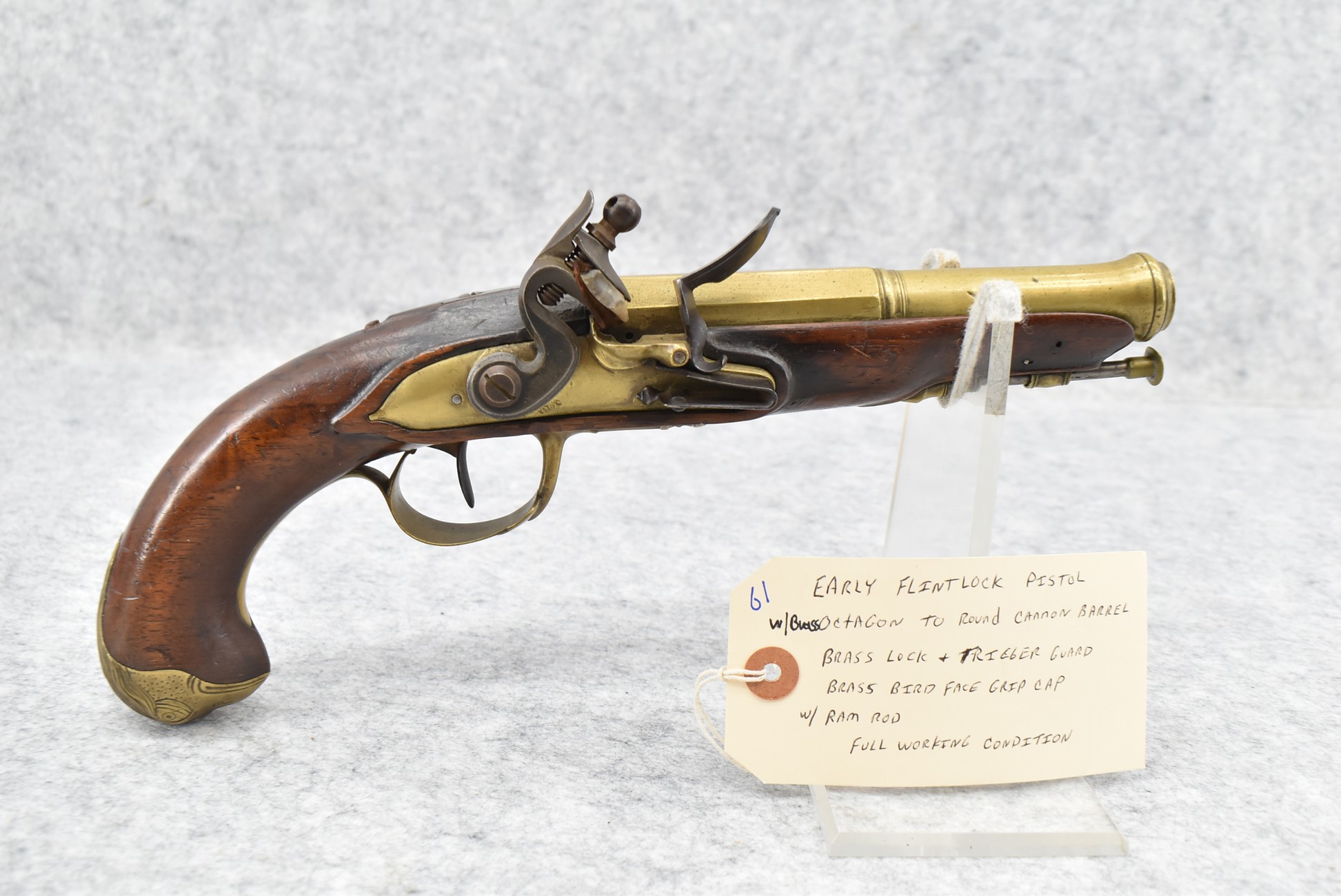 61. Early Flintlock Pistol – w/Brass Octagon to Round Cannon Barrel – w/Brass Bird Face Pistol Grip Cap – w/Brass Lock & Trigger Guard – w/Ram Rod – Fully Functional