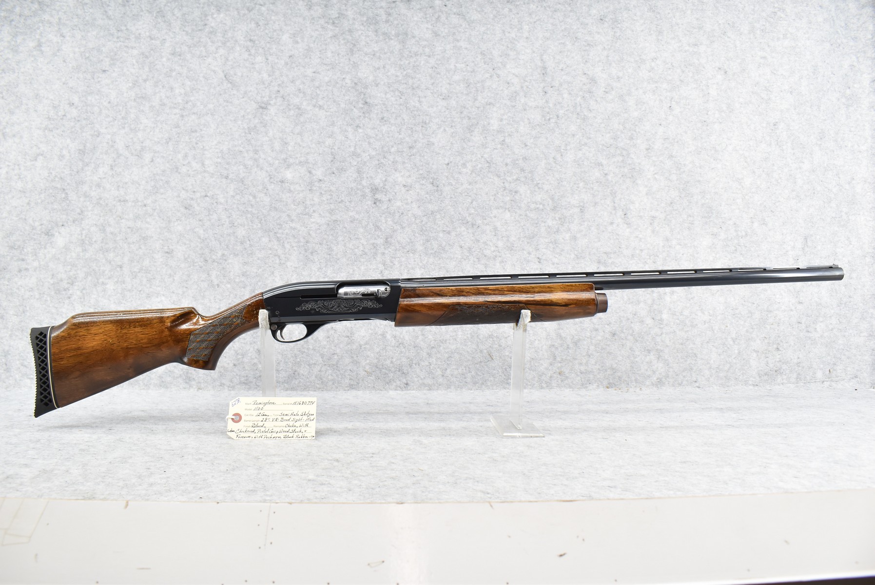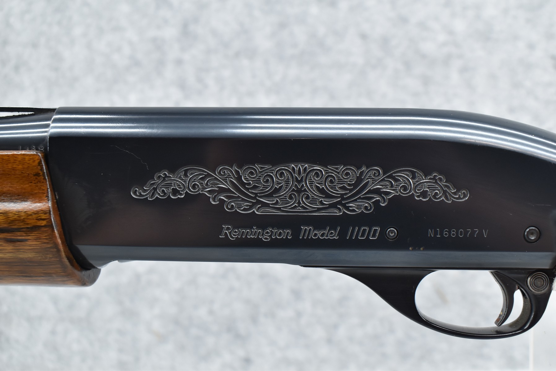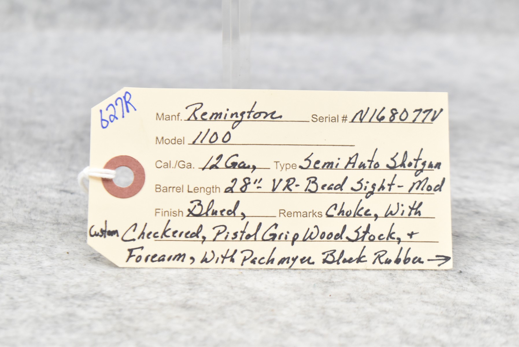 627R. Remington – Mod. 1100 – 12ga. Semi-Auto Shotgun – w/28” Mod. Choke, Vent-Rib Barrel w/Bead Sight – Blued Finish – w/Factory Enhanced Receiver on Both Sides – w/Custom Checkered Pistol Grip Wood Stocks w/Pachmayr Butt Pad
