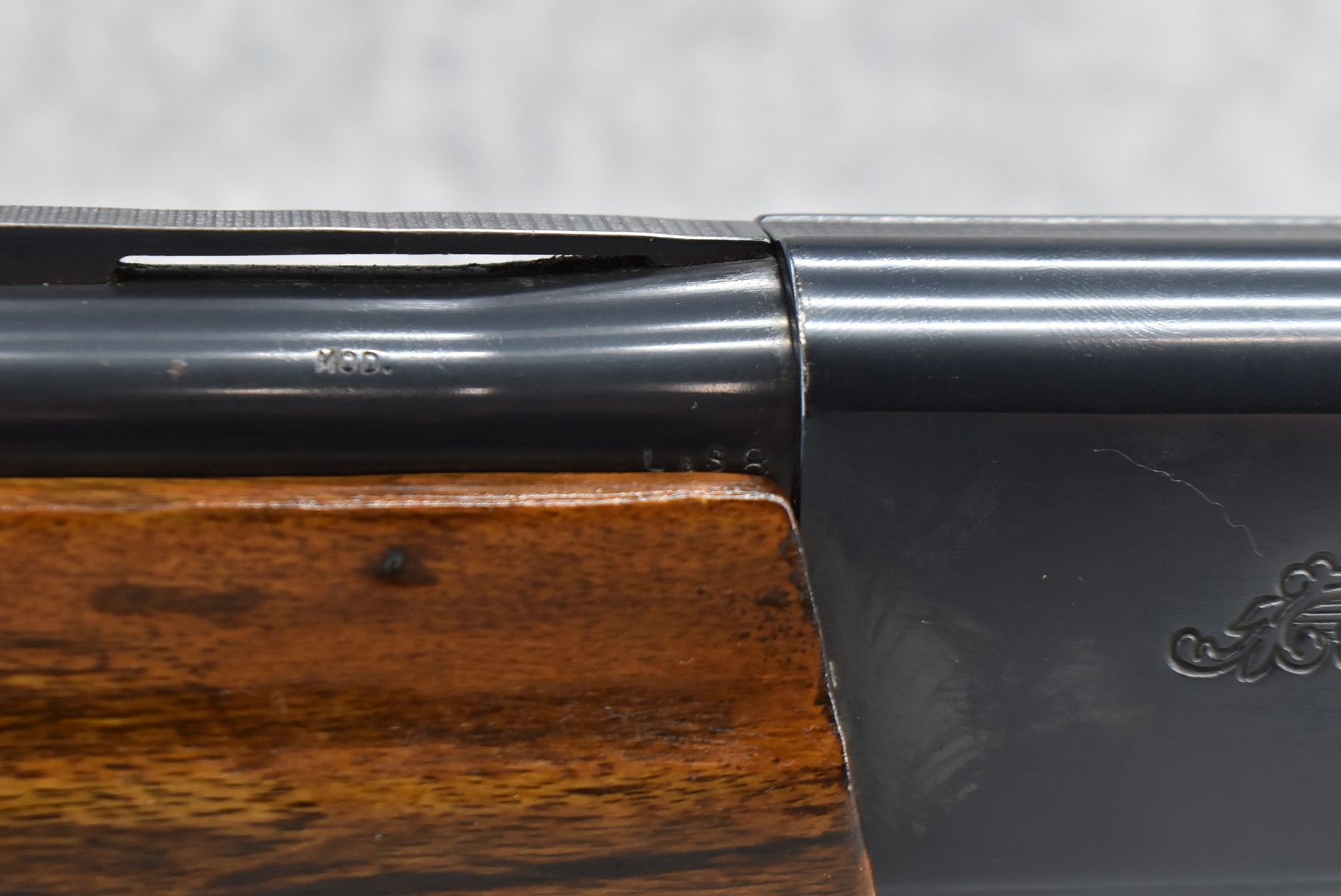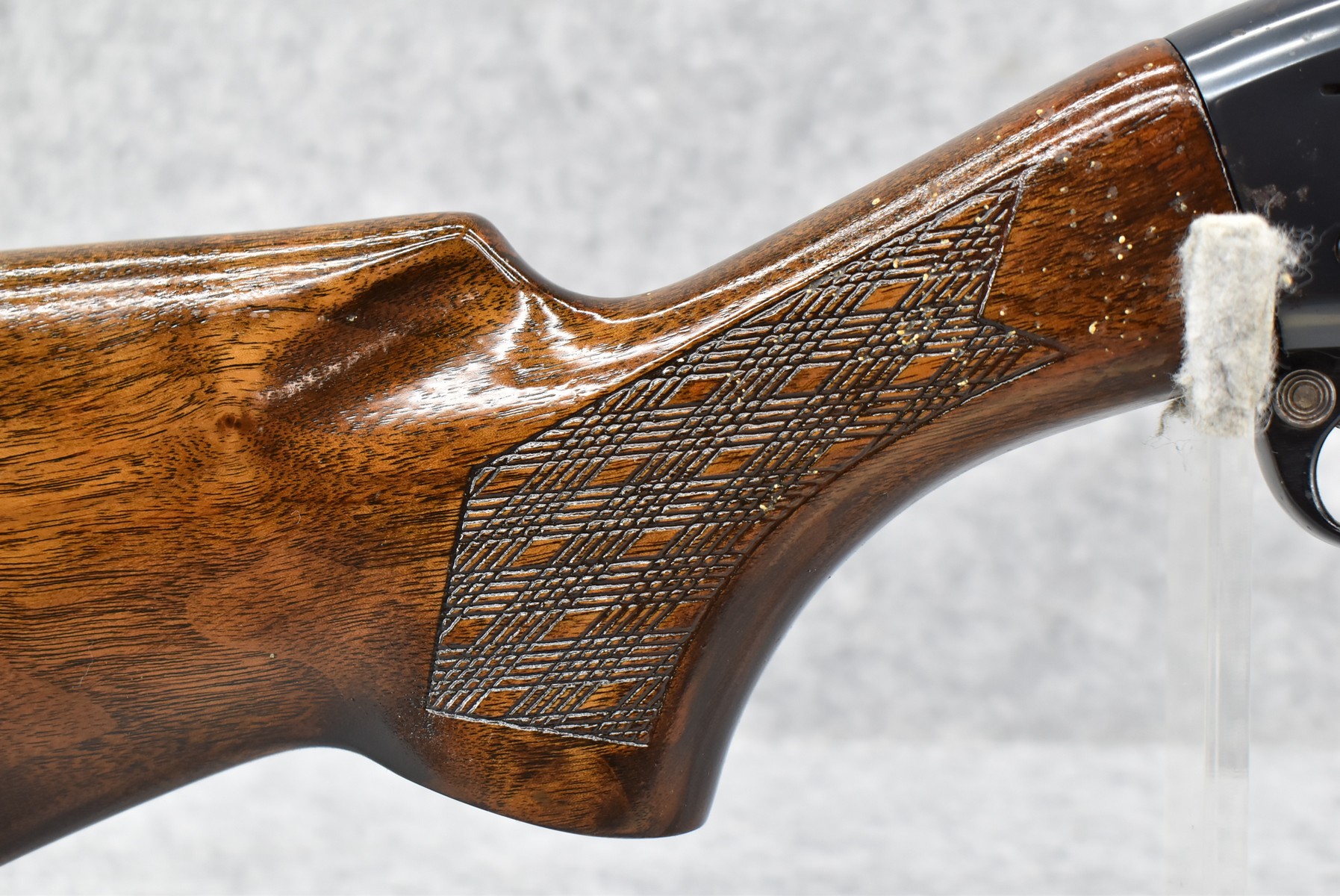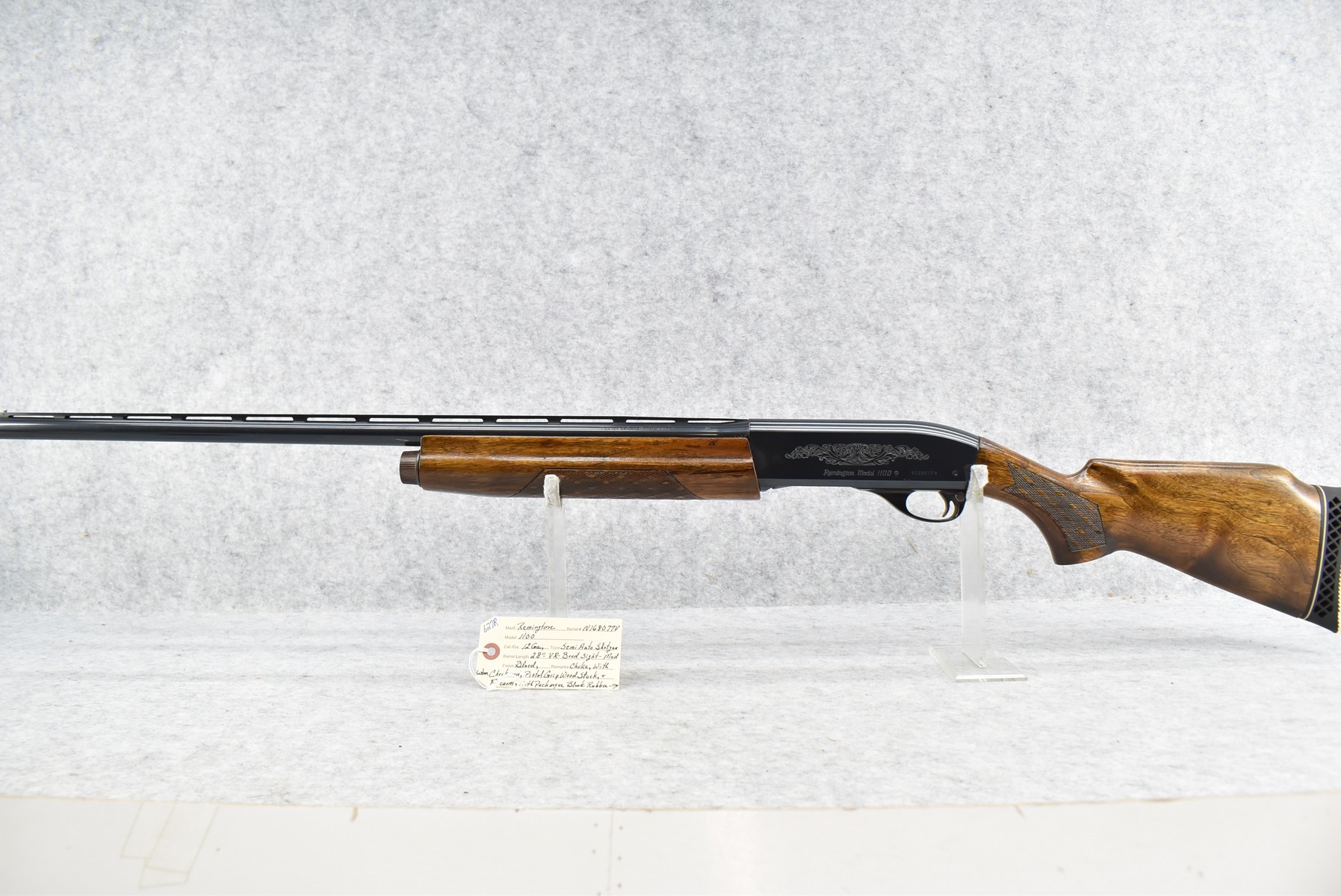 627R. Remington – Mod. 1100 – 12ga. Semi-Auto Shotgun – w/28” Mod. Choke, Vent-Rib Barrel w/Bead Sight – Blued Finish – w/Factory Enhanced Receiver on Both Sides – w/Custom Checkered Pistol Grip Wood Stocks w/Pachmayr Butt Pad
