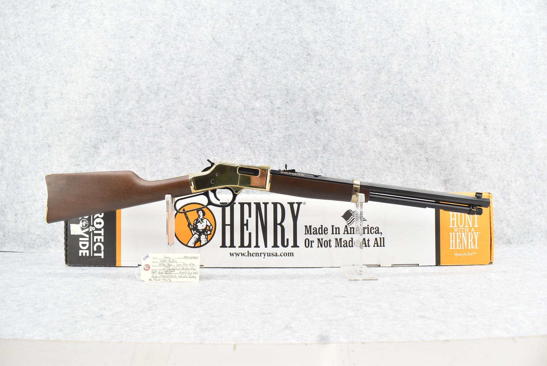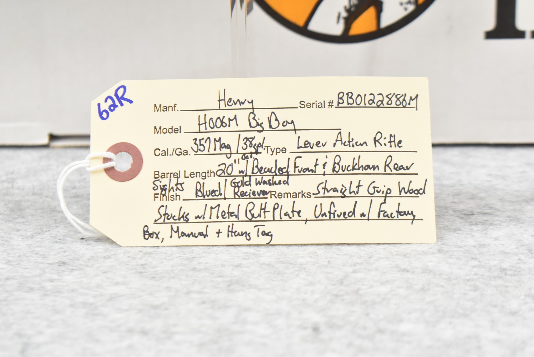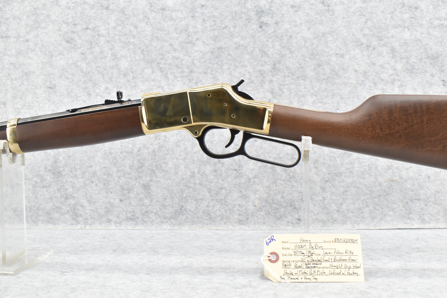 62R. Henry – Mod. H006M Big Boy – 357 Mag./38 Spl. Cal. Lever Action Rifle – w/20” Octagon Barrel w/Beaded Front & Buckhorn Rear Sights – Blued Finish w/Brass Receiver – w/Straight Grip Wood Stocks w/Metal Butt Plate – Unfired w/Factory Box, Manual & Hang Tag