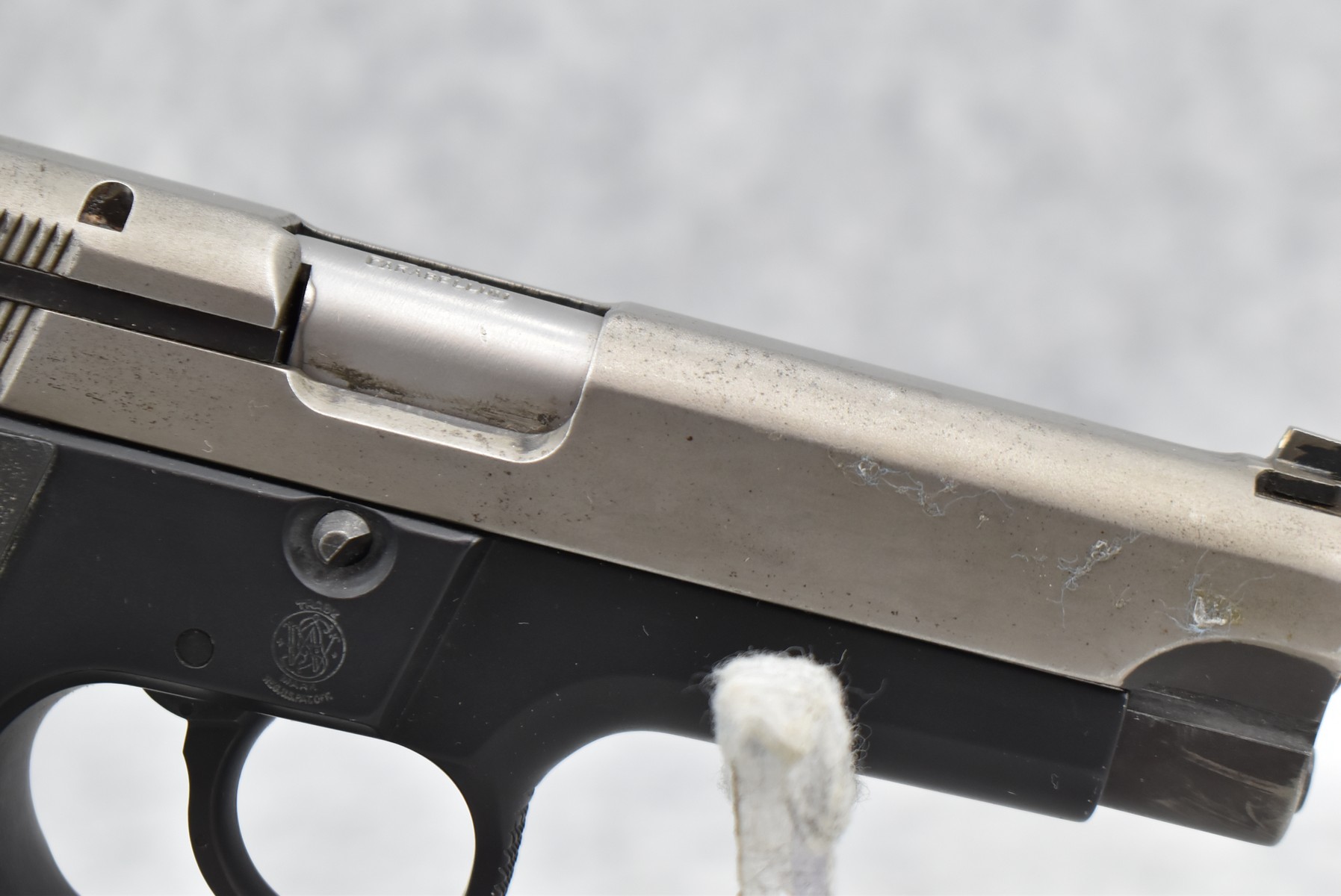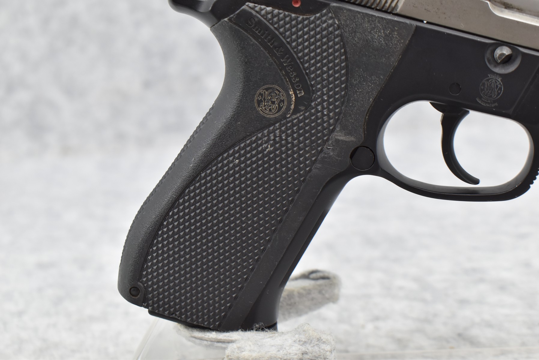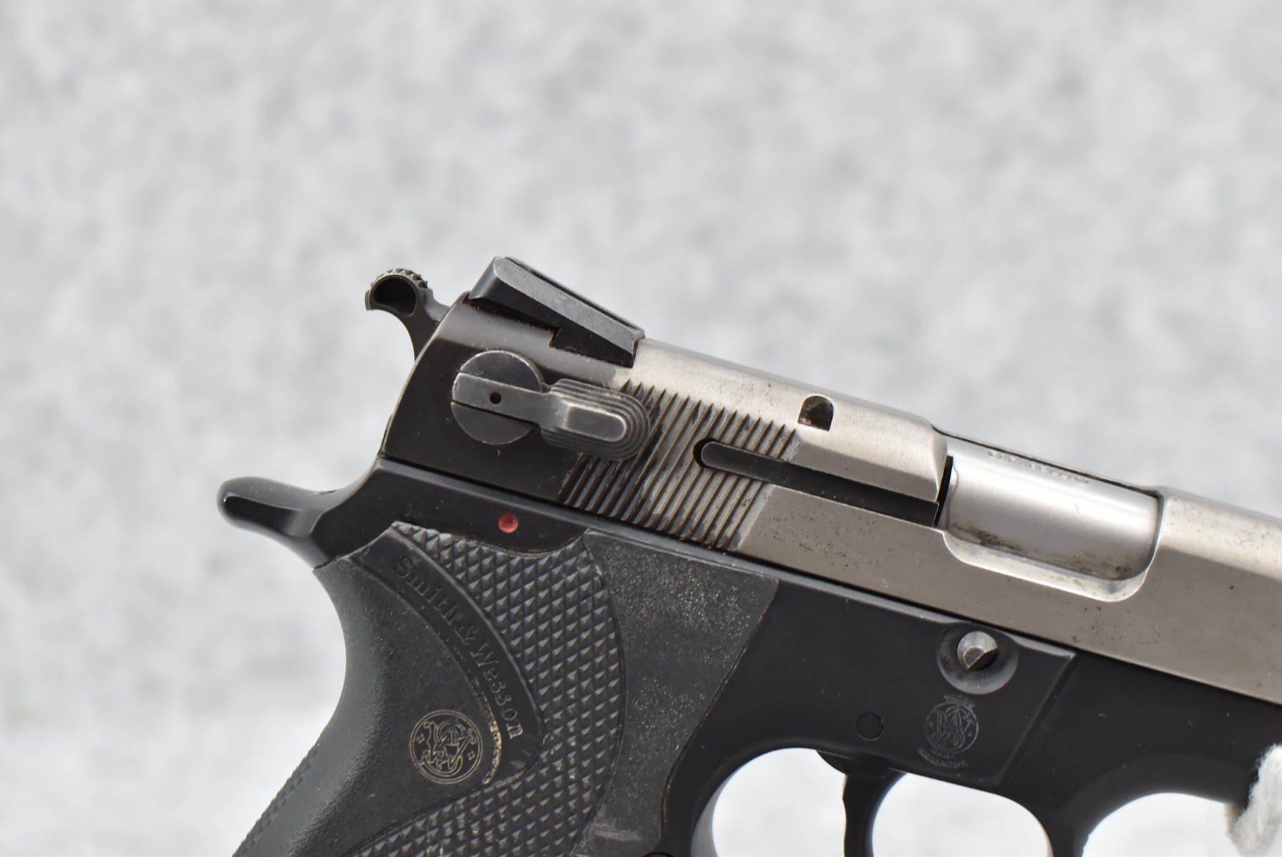 633R. Smith & Wesson – Mod. 5904 – 9mm Para Cal. Semi-Auto Pistol – w/4” Barrel w/3-Dot Blade Front & Adj. Rear Notch Sights – Blued/Stainless Finish – w/S&W Checkered Wraparound Black Plastic Grips – w/Detachable Magazine