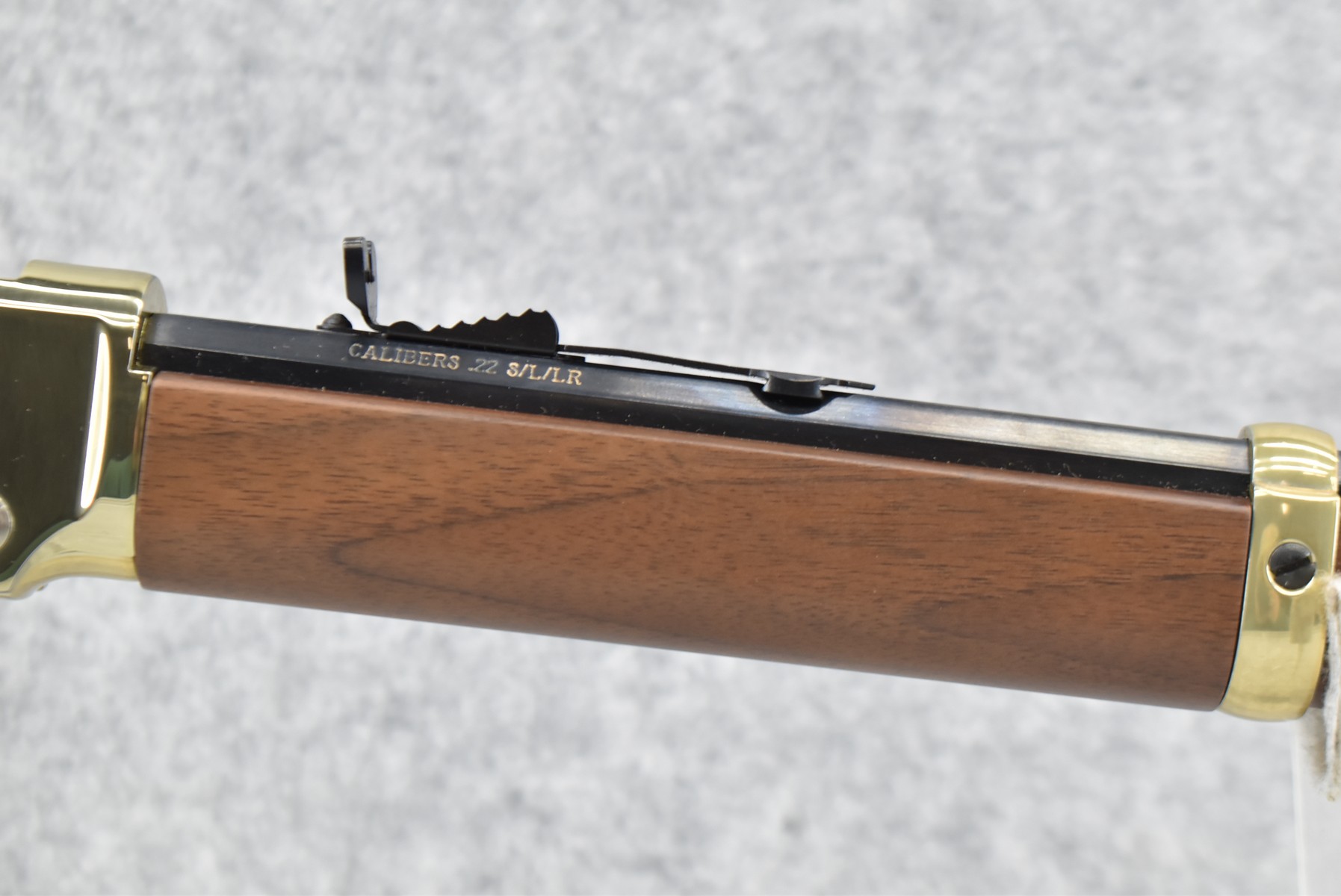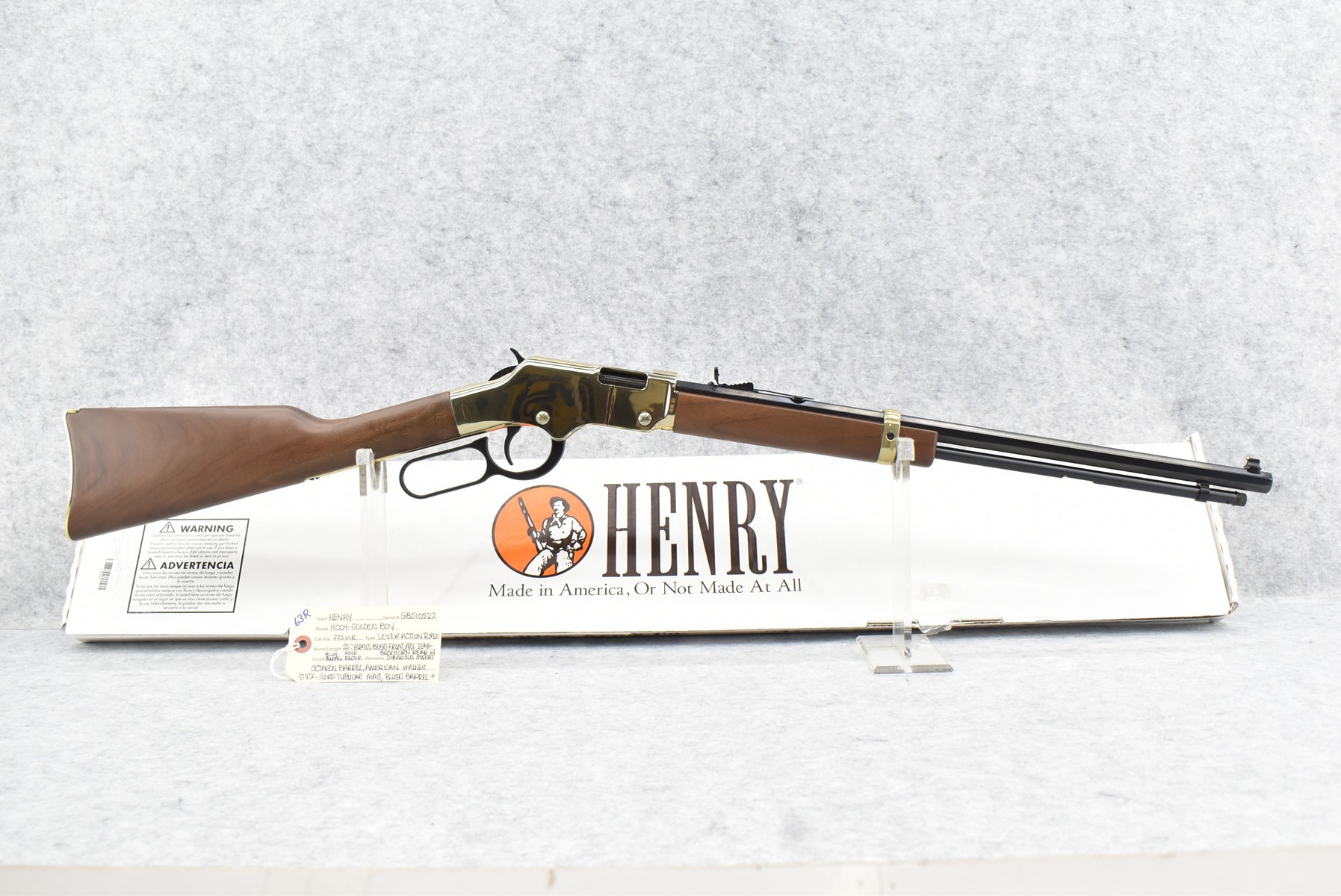 63R. Henry – Mod. H004 Golden Boy – 22 Cal. Lever Action Rifle – w/20” Octagon Blued Finish Barrel w/Brass Bead Front Sight & Adj. Semi-Buckhorn Rear Sight w/Diamond Insert – Blued Finish w/Brass Receiver – w/American Walnut Stock – w/16Rd Tubular Mag. – Unfired w/Factory Box & Manual