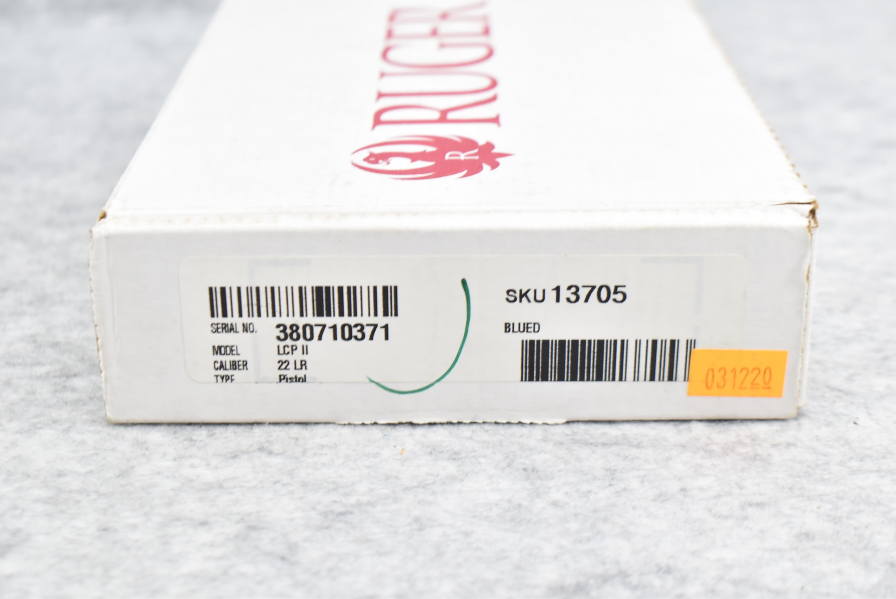 641R. Ruger – Mod. LCP II – 22LR Cal. Semi-Auto Pistol – w/2 ¾” Barrel w/Factory Sights – Matte Blued Finish – w/Black Polymer Frame & Textured Grips – w/Detachable Magazine – New w/Factory Box & Accessories