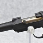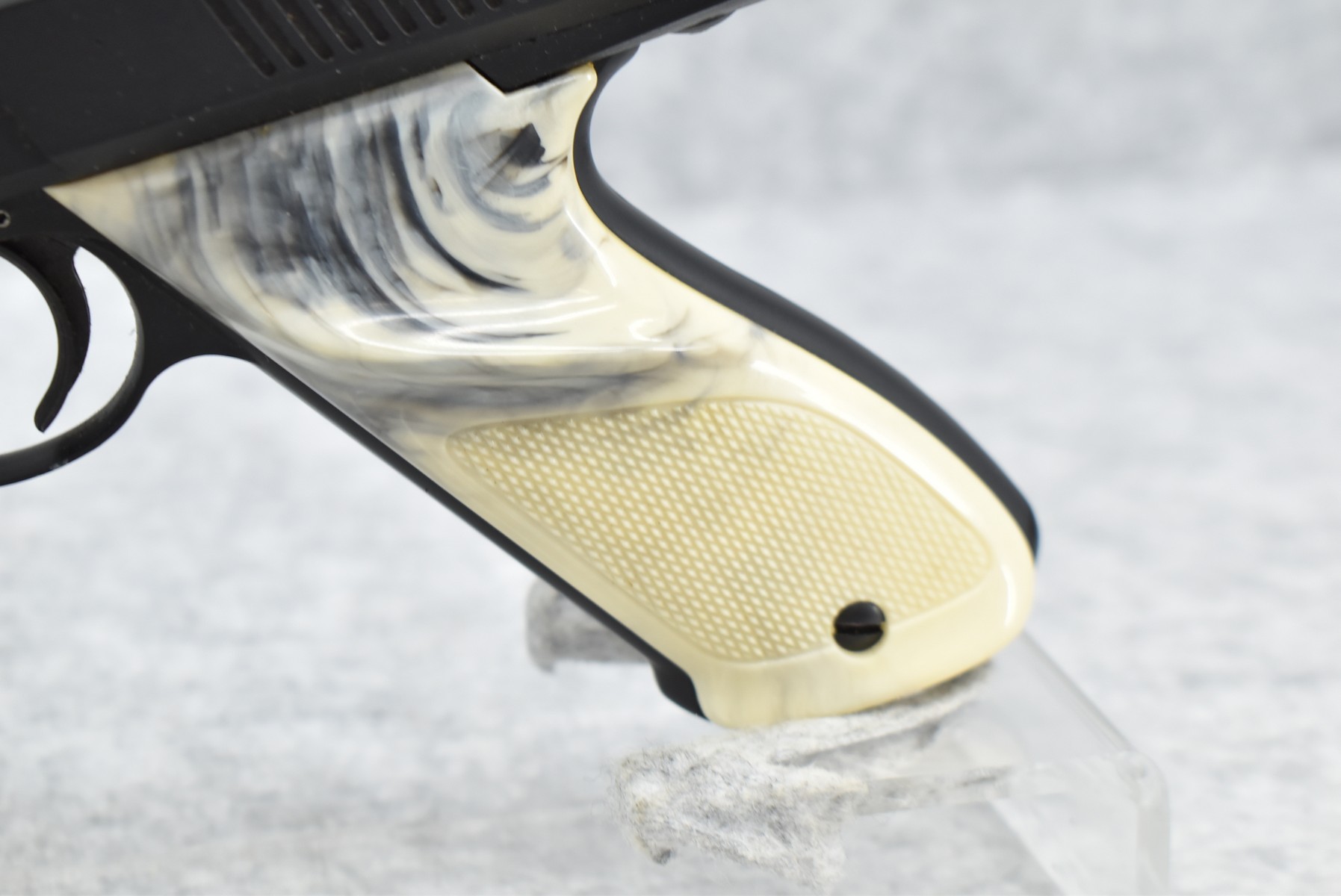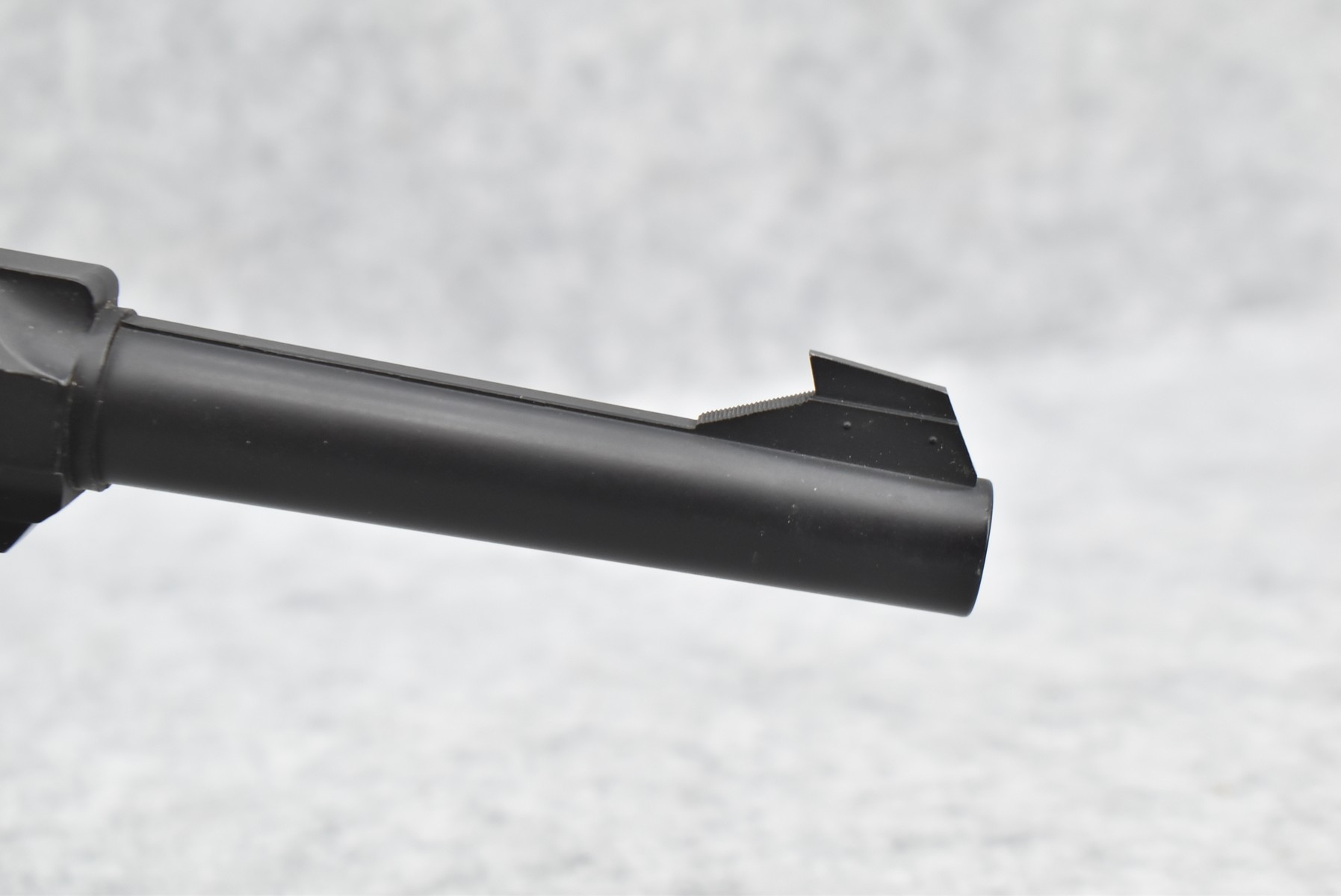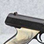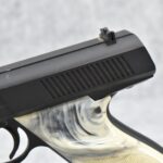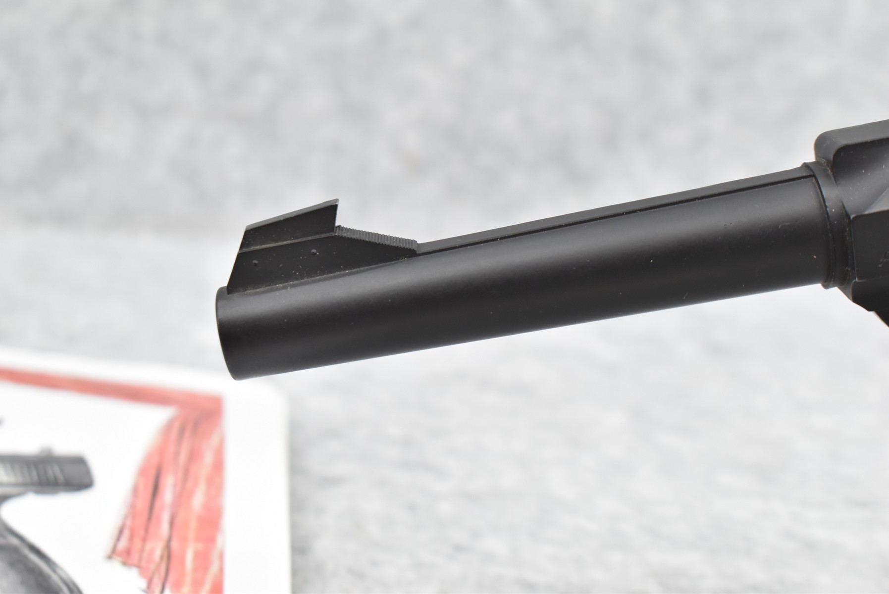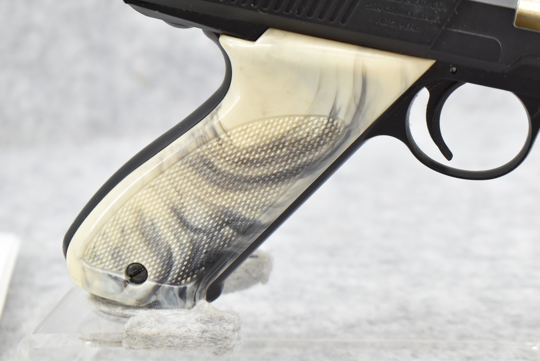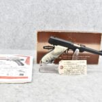 645R. Wamo – Mod. Powermaster – 22 Cal. Single Shot Pistol – w/6” Barrel w/Blade Front Sight & Adj. Rear Sights – Matte Black Finish – w/Plastic Molded Ivory Colored Grips – w/Auto Ejection – w/Factory Box & Papers
