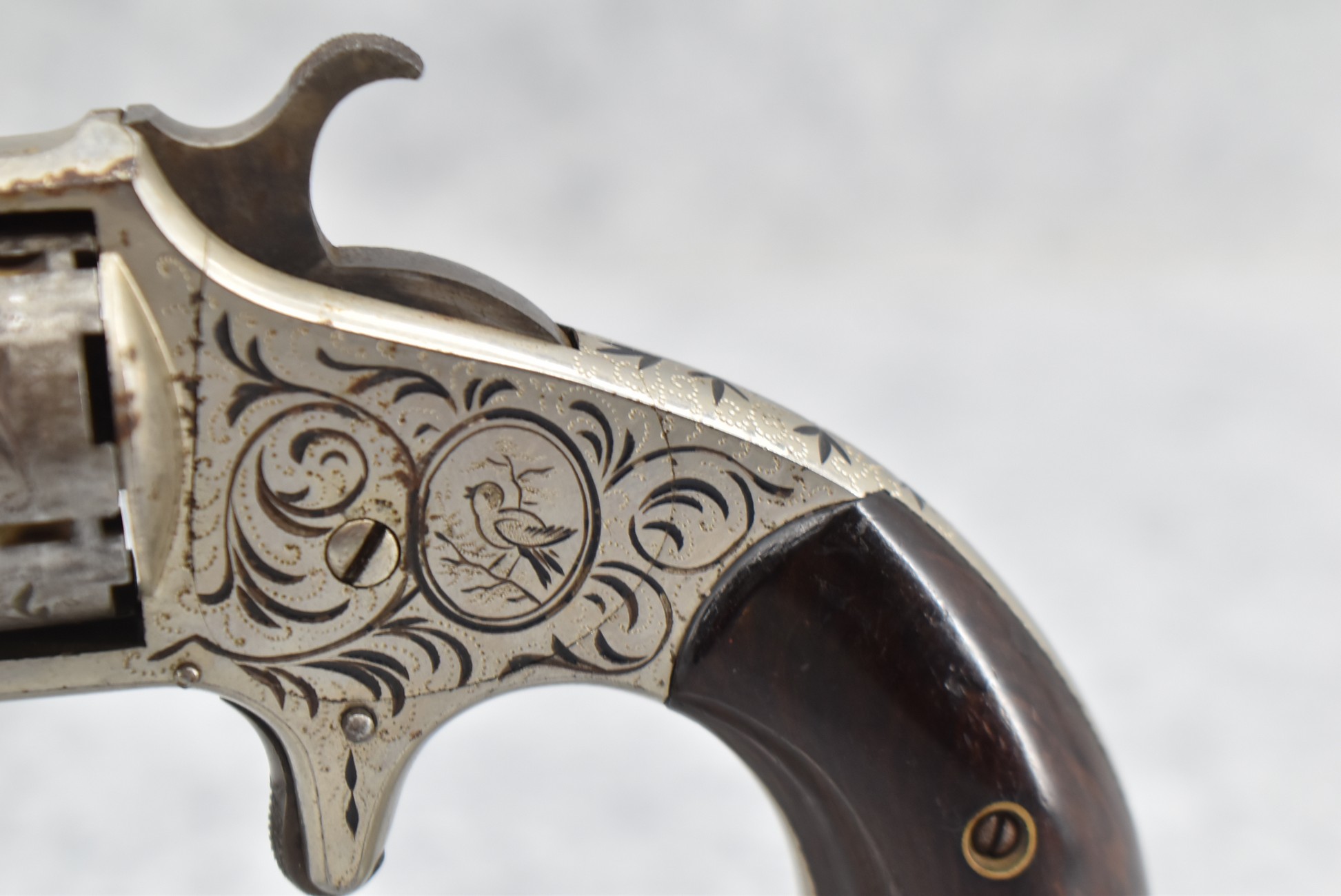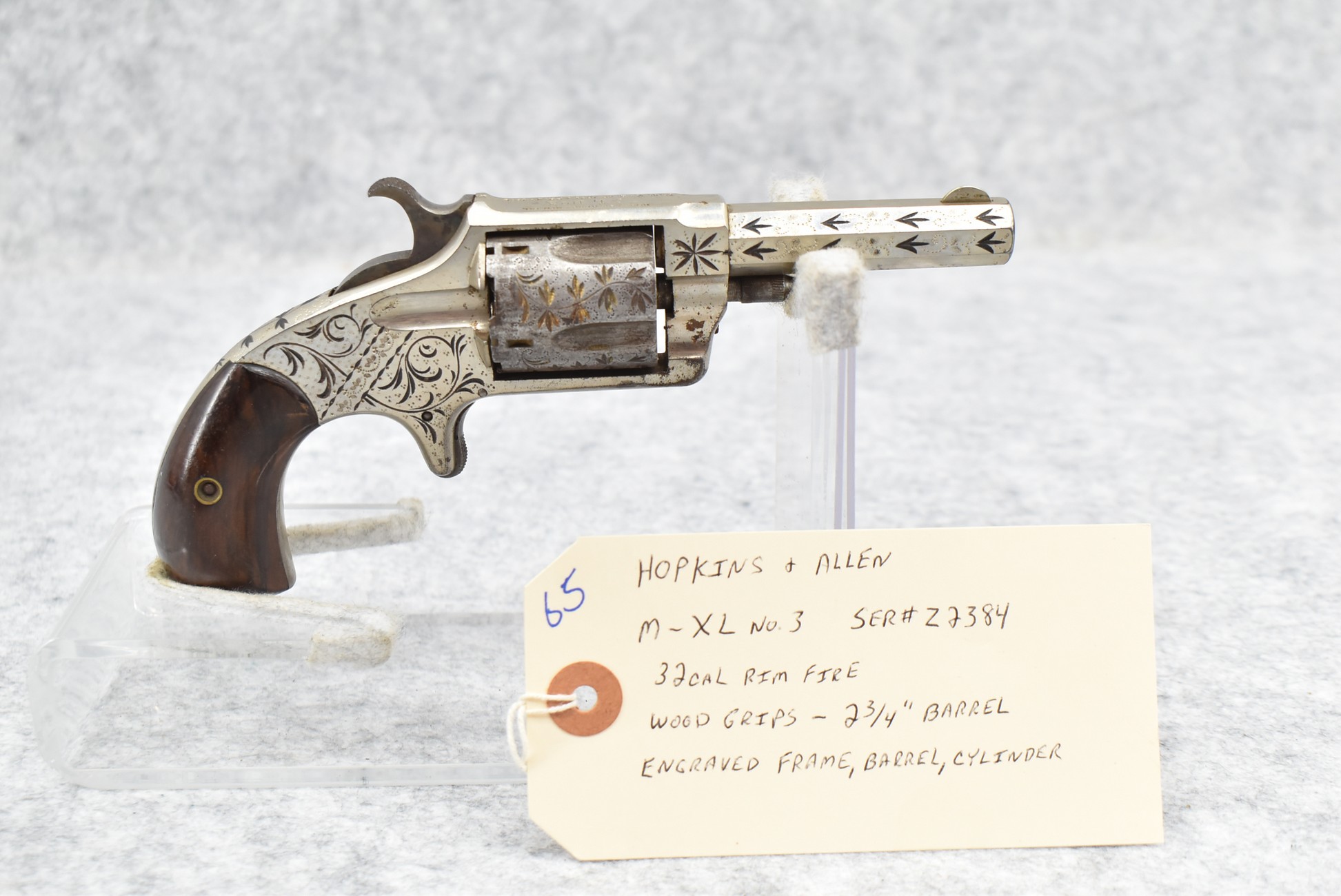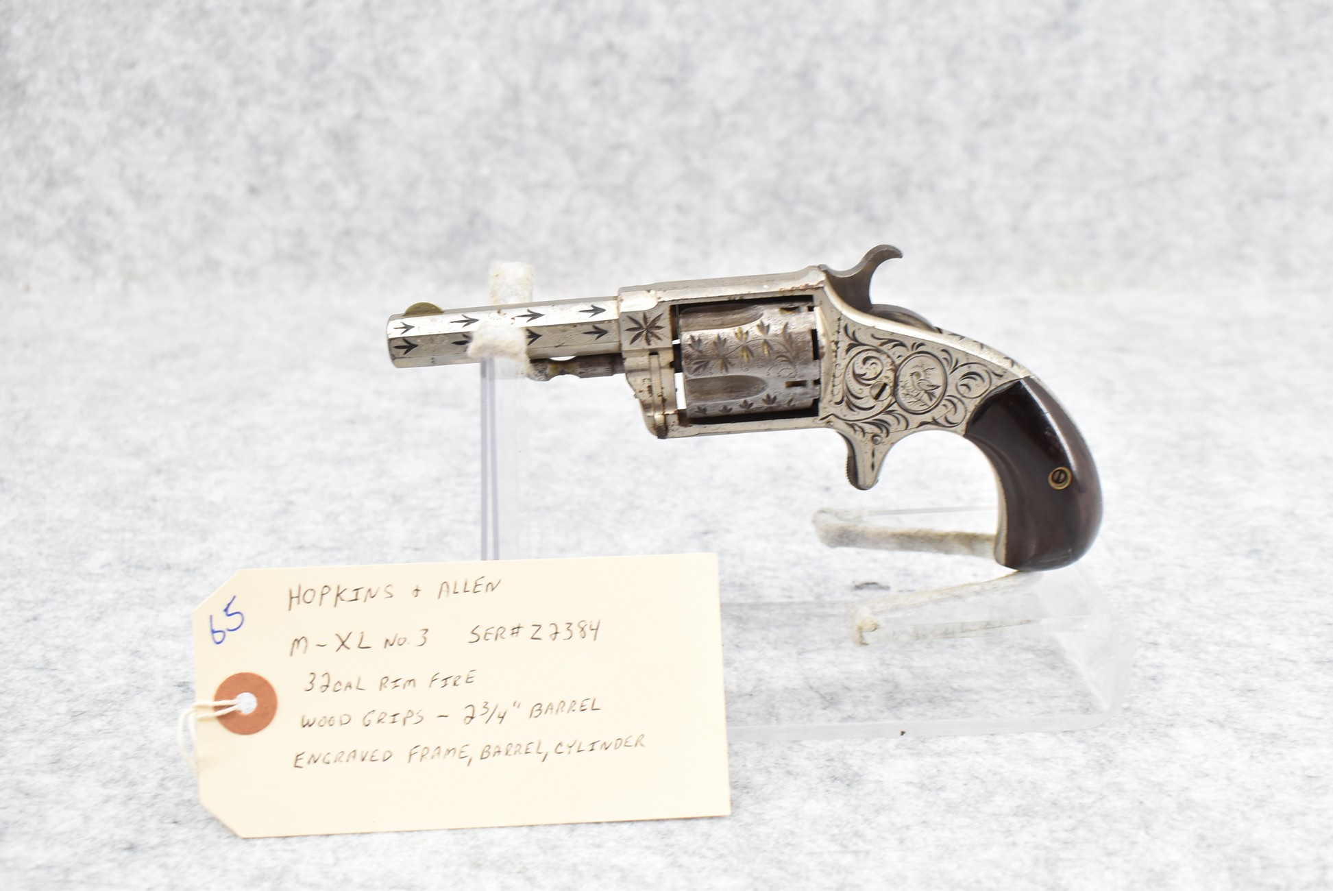 65. Hopkins & Allen – Mod. XL No. 3 – 32 Cal. RF Revolver – w/2 ¾” Barrel – w/Engraved Frame, Barrel & Cylinder – w/Wood Grips