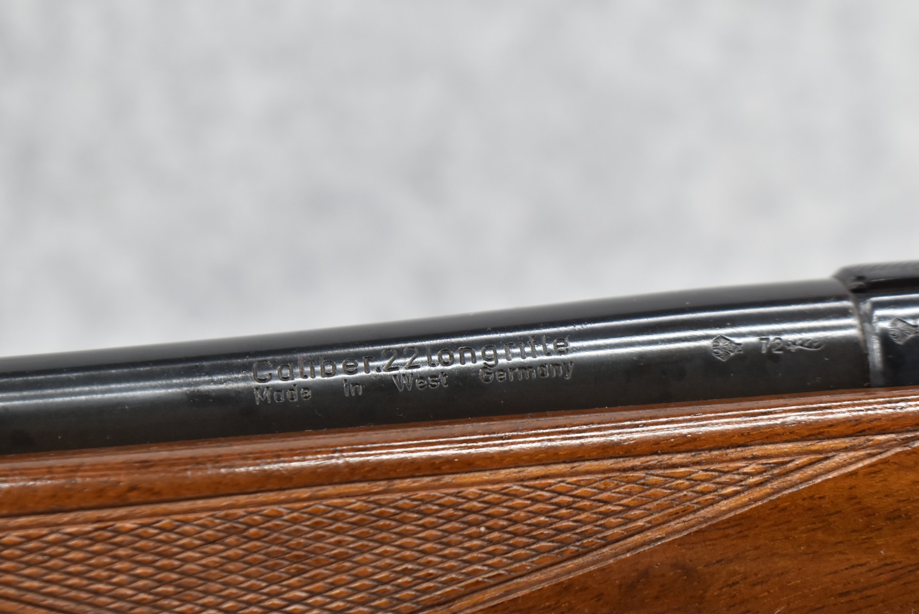 65R. Anschutz – Mod. 164 Sporter – 22LR Cal. Bolt Action Rifle – w/24” Barrel w/Hooded Blade Front & Flip Up Adj. Rear Notch Sights – Blued Finish – w/Deluxe Checkered Pistol Grip Wood Stock w/Raised Cheek Piece w/Factory Butt Plate – w/Factory Detachable Magazine