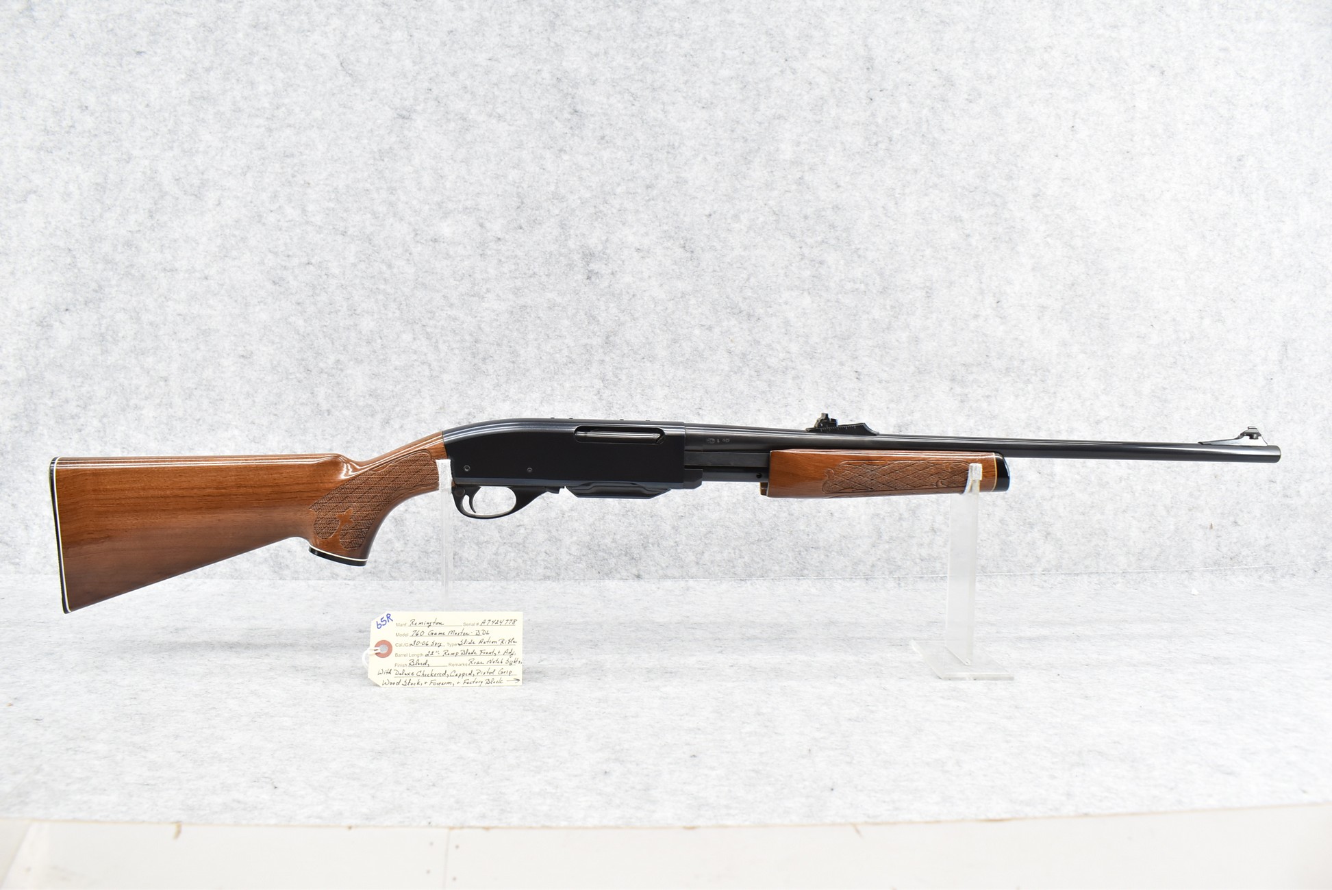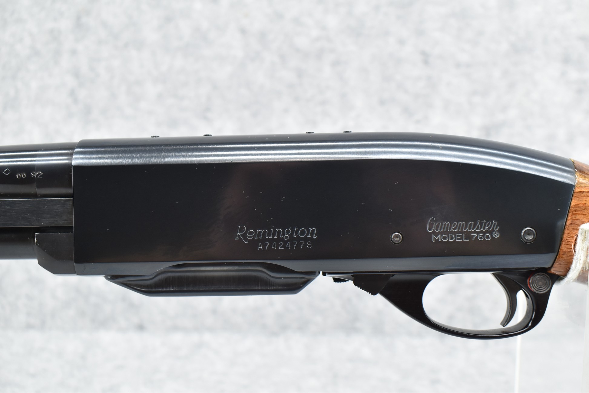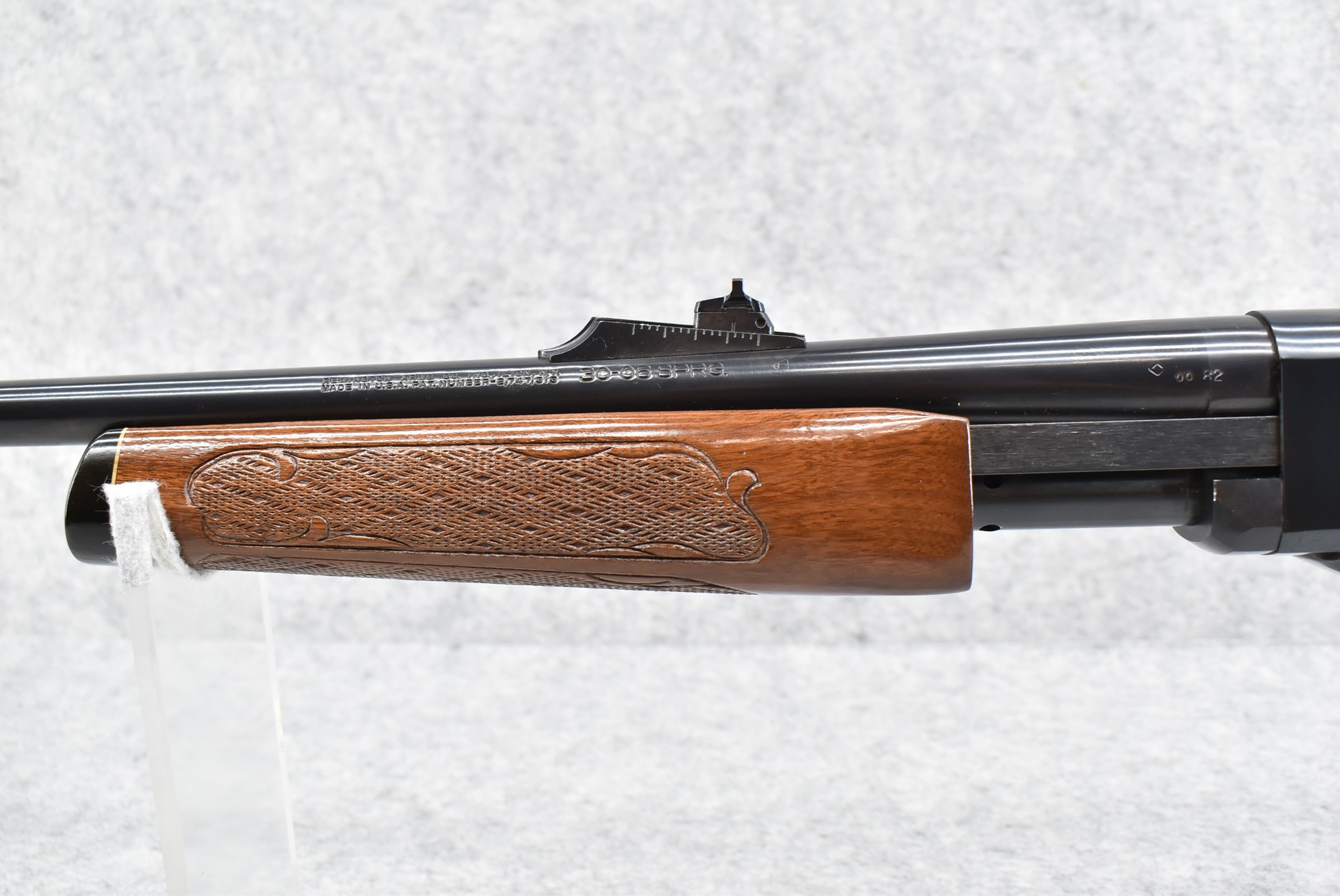 65R. Remington – Mod. 760 Gamemaster – 30-06 Sprg. Cal. Pump Action Rifle – w/22” Barrel w/Ramp Blade Front & Adj. Rear Notch Sights – Blued Finish – w/Deluxe Pressed Checkered Capped Pistol Grip Wood Stocks w/Factory Butt Plate – w/Detachable Magazine – As New!