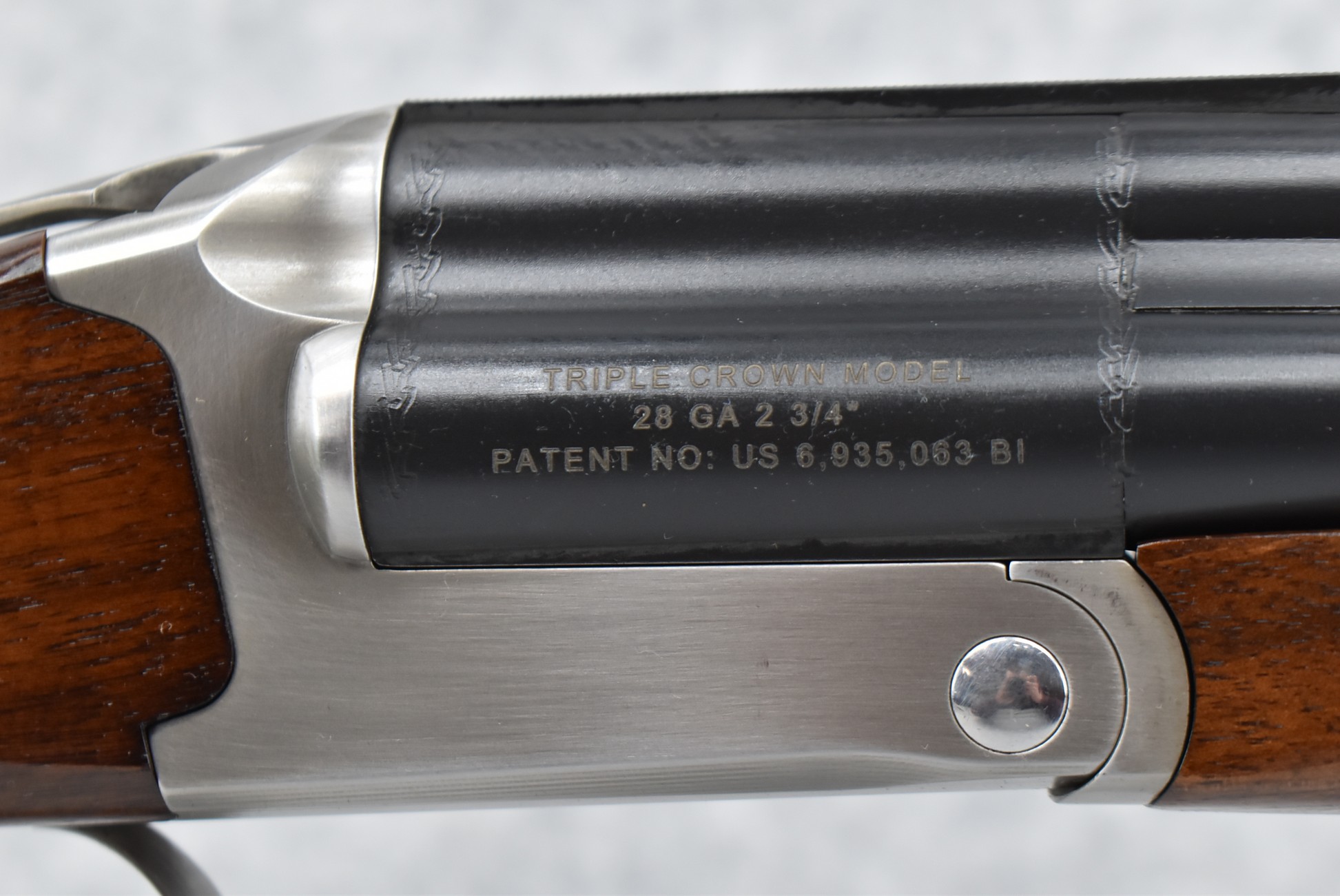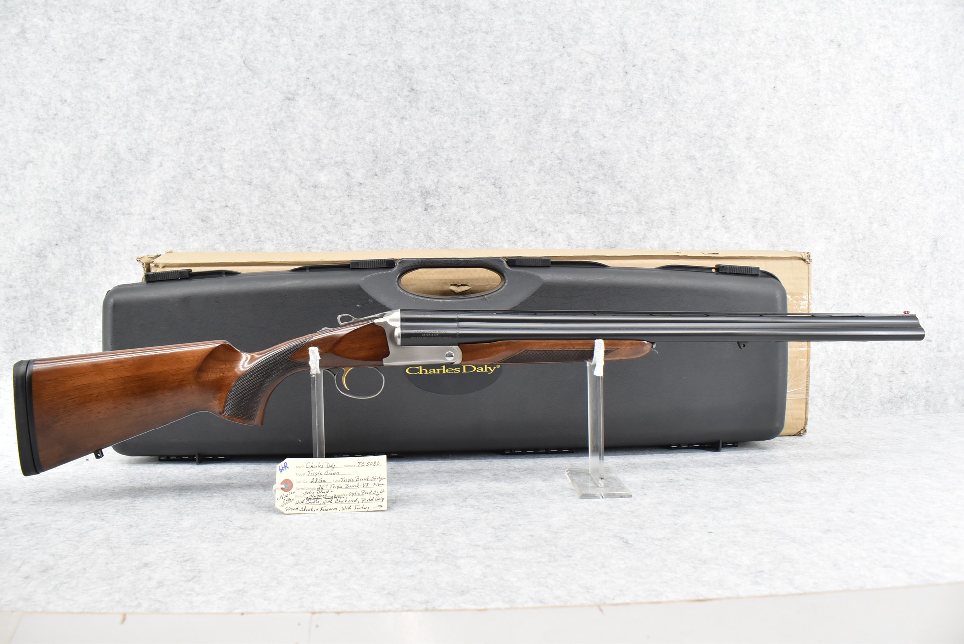 66R. Charles Daly – Mod. Triple Crown – 28ga. Triple Barrel Shotgun – w/26” Vent-Rib Barrels w/Fiber Optic Bead Sight & Remington Thread Pattern Chokes – Satin Blued/Stainless Finish – w/Checkered Pistol Grip Wood Stocks w/Factory Butt Pad – New w/Factory Box, Hard Case, 2 Extra Chokes, Choke Wrench & Manual