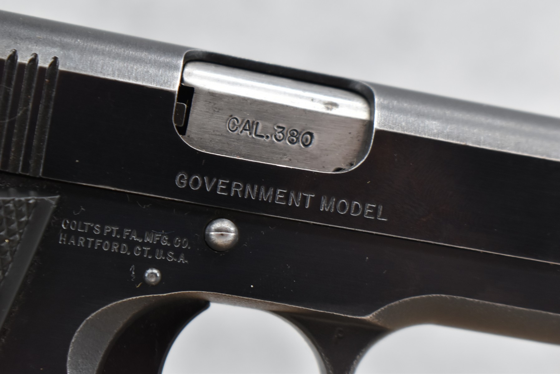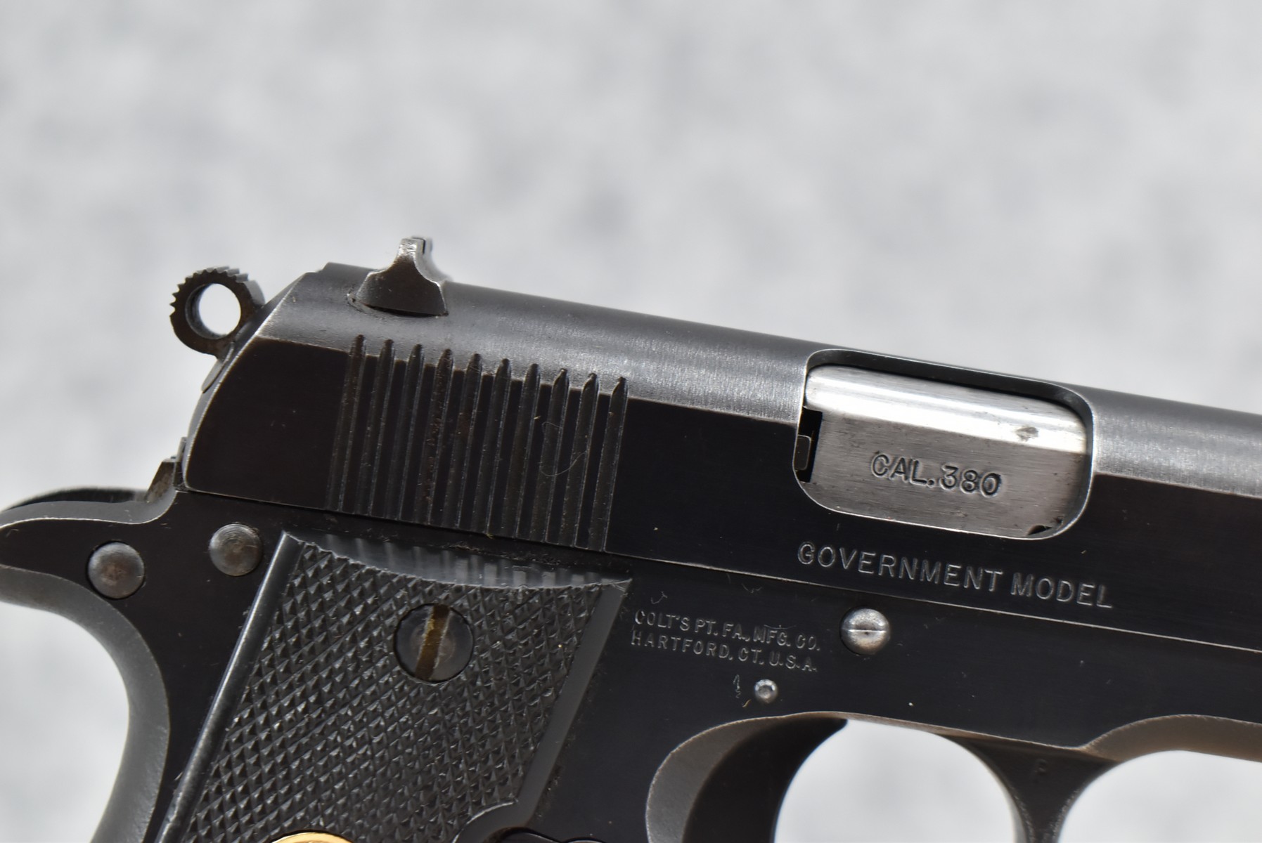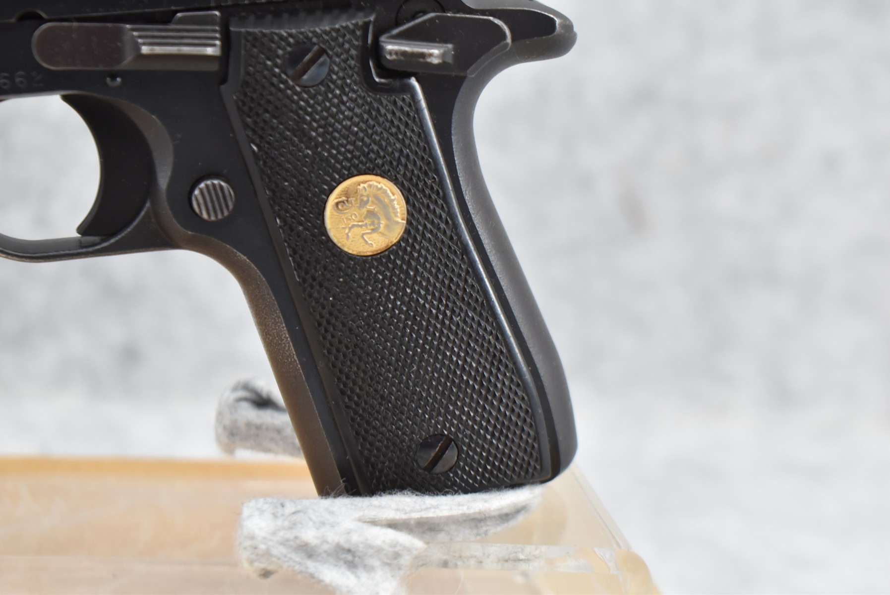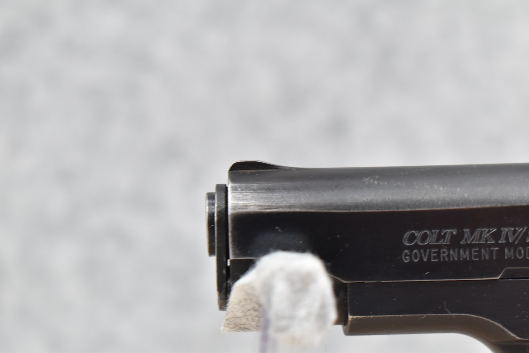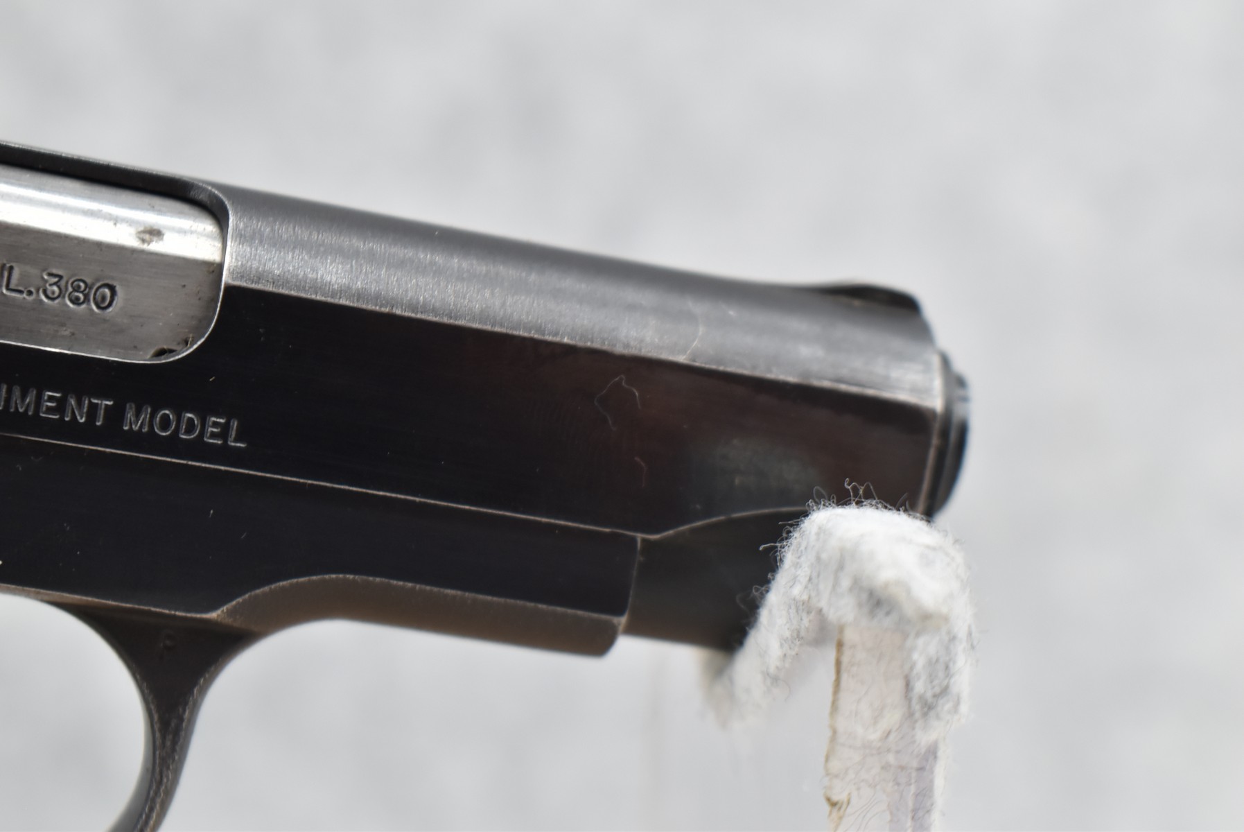66R. Colt – Mod. MK VI -Series 80 Gov. Model – 380 Auto Cal. Semi-Auto Pistol – w/3 ¼” Barrel w/Blade Front & Adj. Rear Notch Sights – Blued Finish – w/Checkered Black Plastic Grips – w/Colt Detachable Magazine – w/UPS Shipping Box & Paperwork