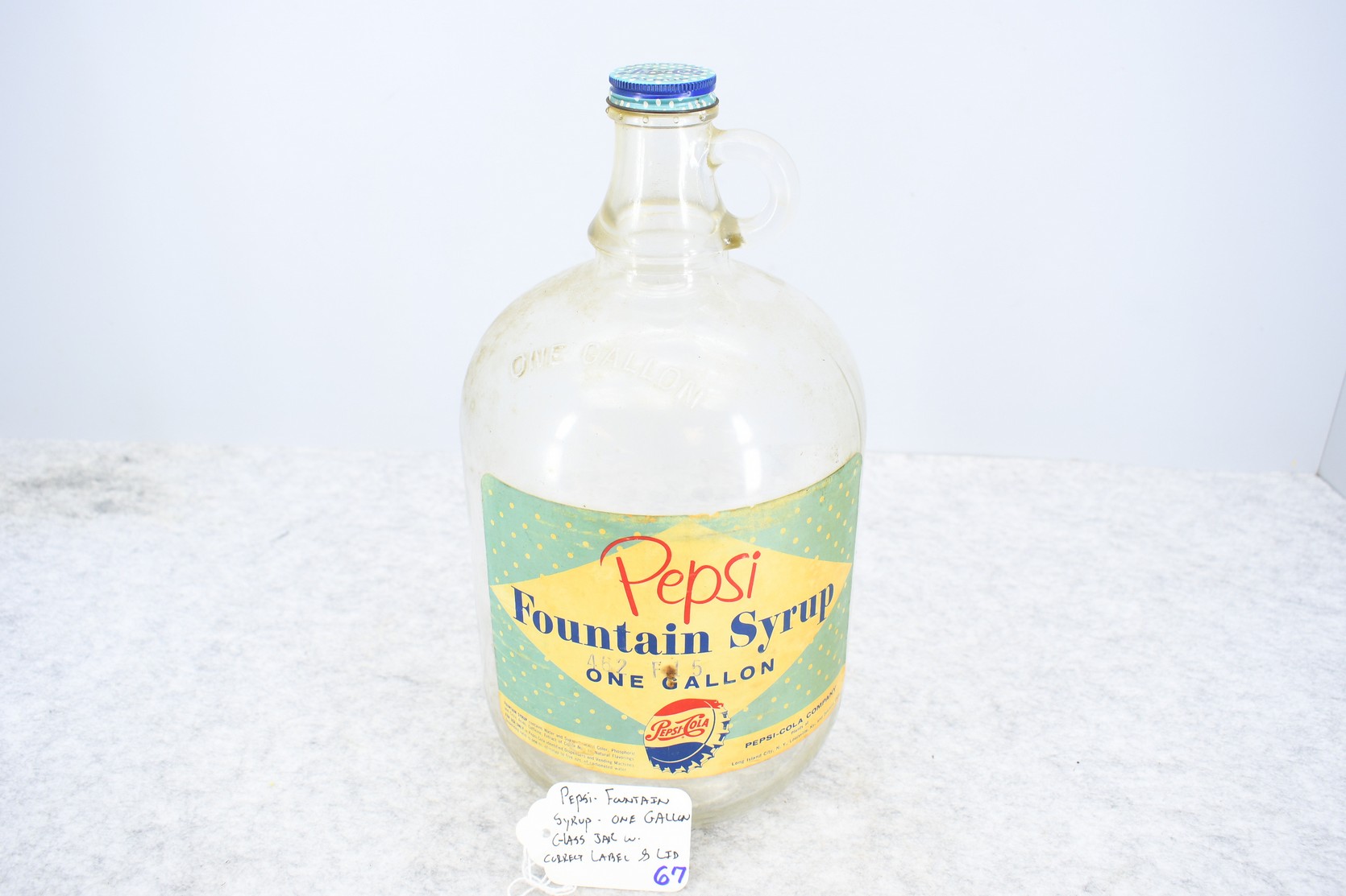 67. Pepsi Fountain Syrup 1-Gallon Jar w/Correct Paper Label and Correct Lid